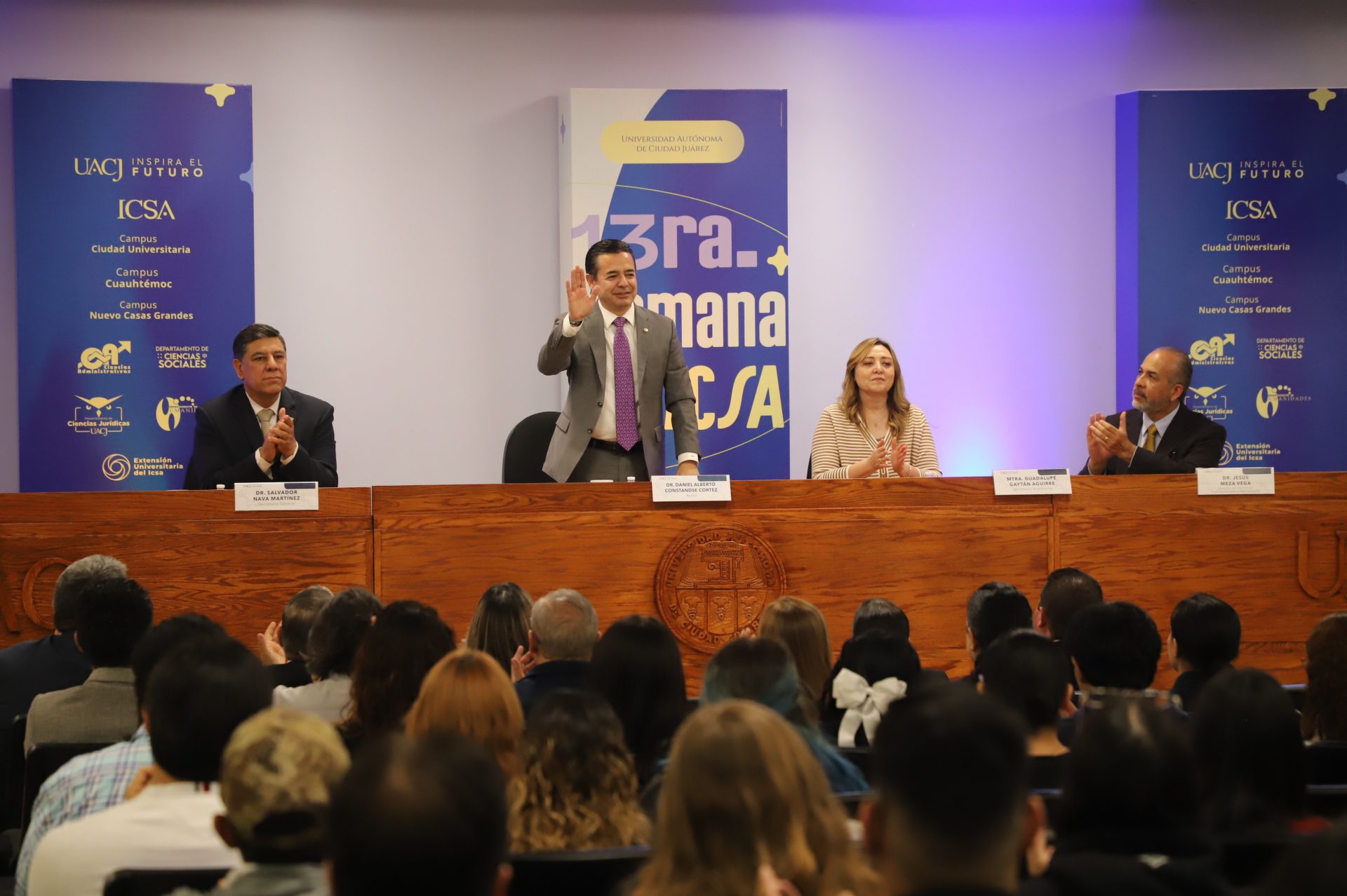 Además del rector de la UACJ, y el director del ICSA, también encabezaron la inauguración de esta Semana del ICSA el doctor Salvador David Nava Martínez, secretario General; y la maestra Guadalupe Gaytán Aguirre, secretaria Académica.
