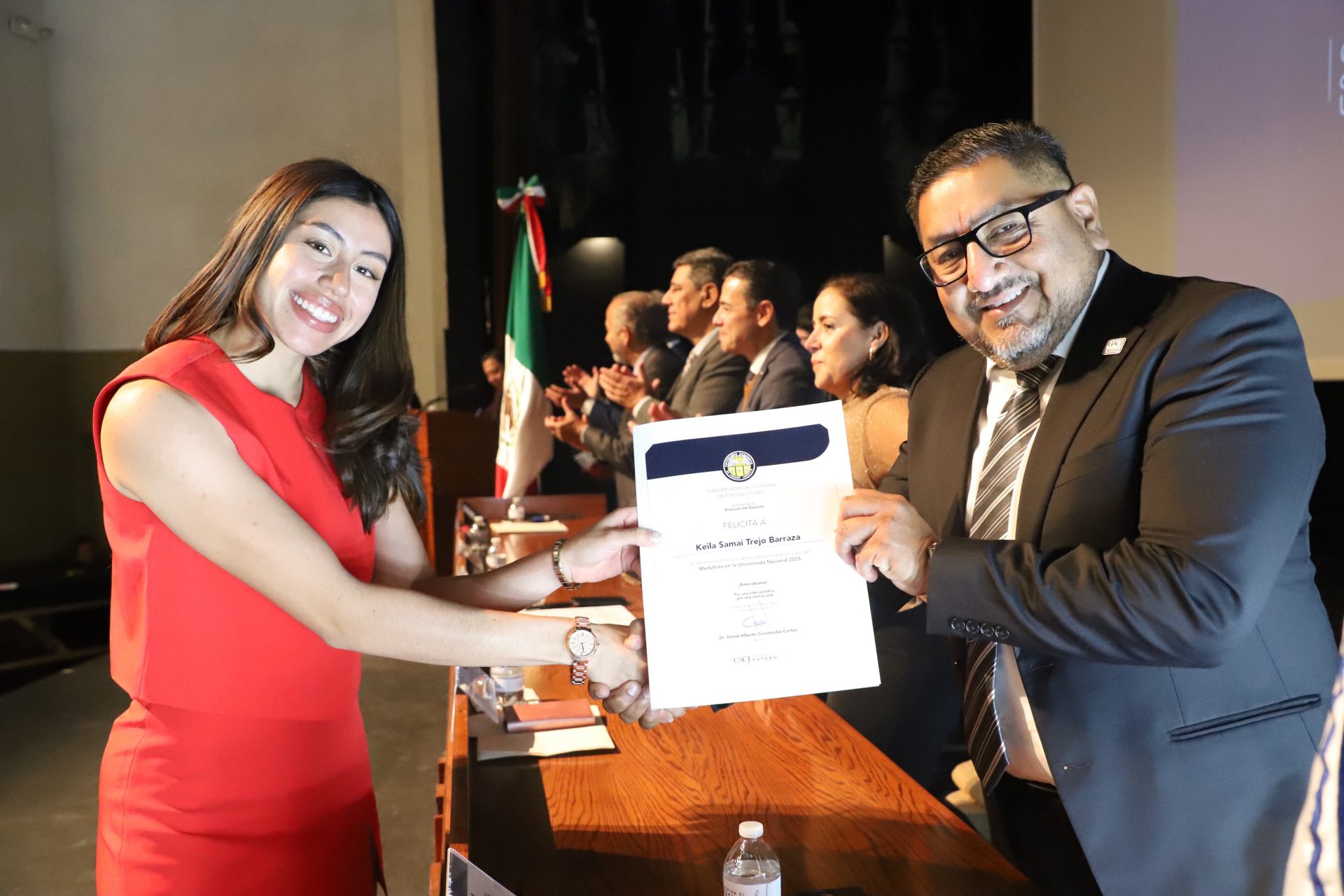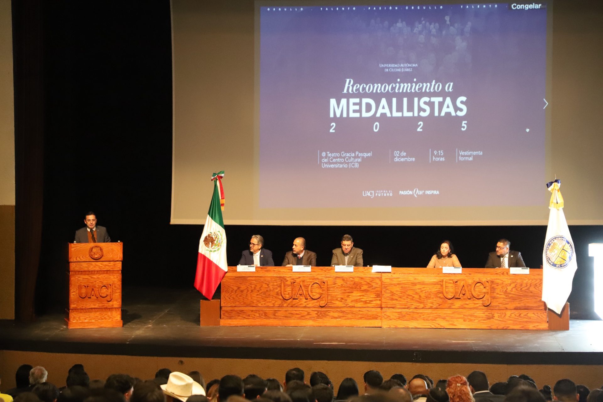 El evento, titulado «Entrega de reconocimientos a medallistas 2025«, se llevó a cabo este 2 de diciembre en el Teatro Gracia Pasquel del Centro Cultural Universitario, ubicado en el Instituto de Ciencias Biomédicas (ICB).