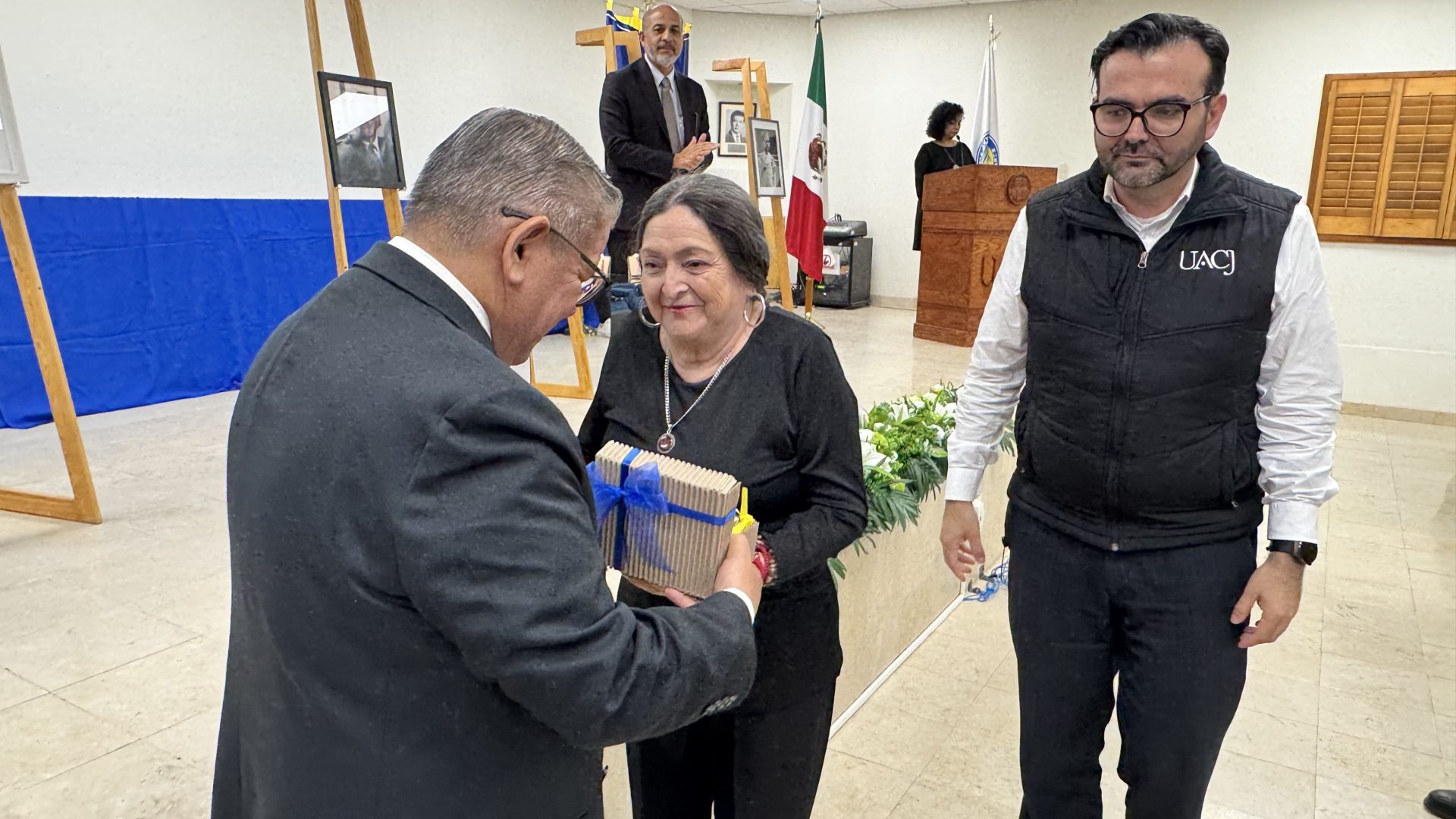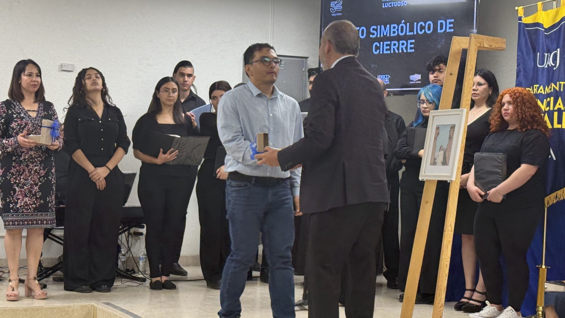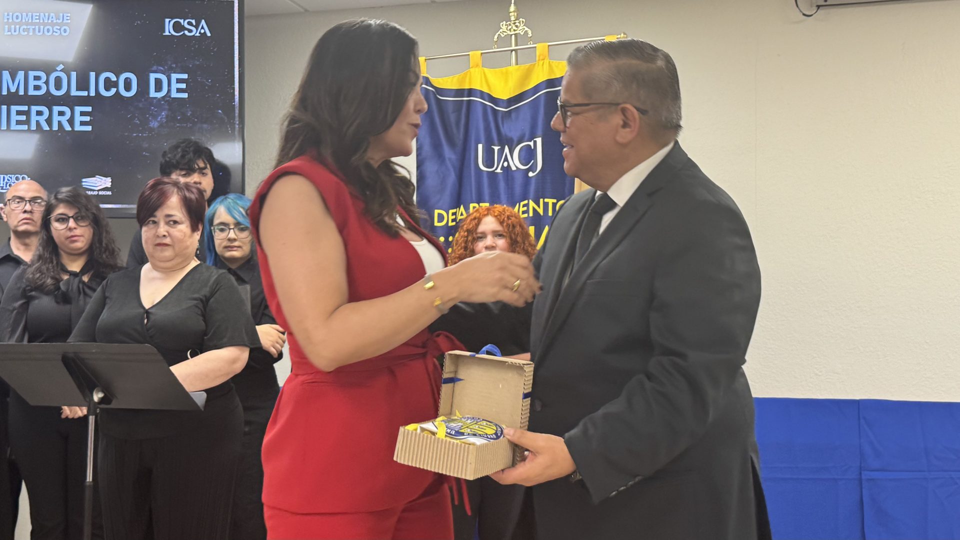 Como acto simbólico de cierre, el director del Instituto y el jefe del Departamento de Ciencias Sociales, el Dr. Servando Pineda Jaimes, entregaron a las familias un reconocimiento póstumo que consistió en la bandera de la Universidad Autónoma de Ciudad Juárez, un gesto que dice, sin palabras, que la labor docente no termina en el aula. Permanece en la memoria colectiva, en la identidad institucional, en cada generación que avanza.