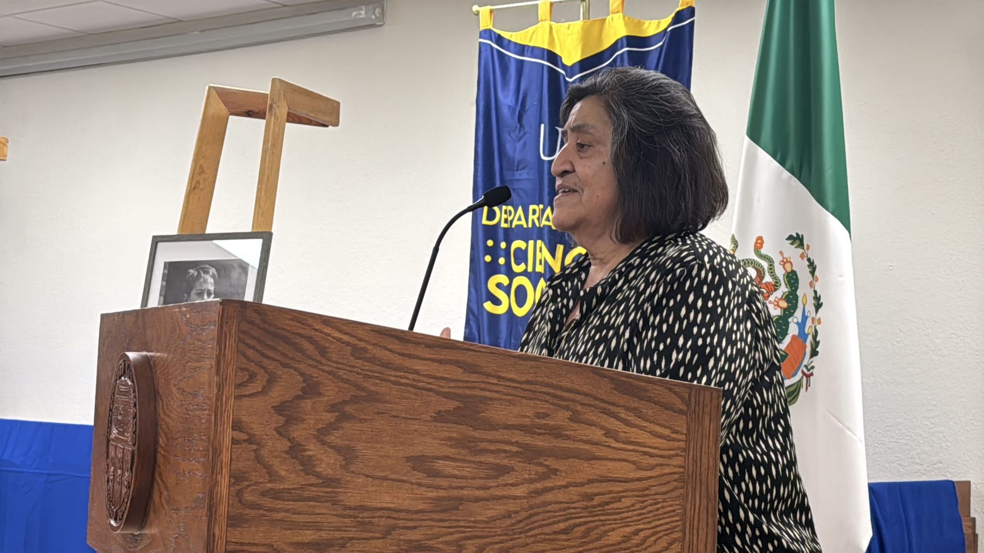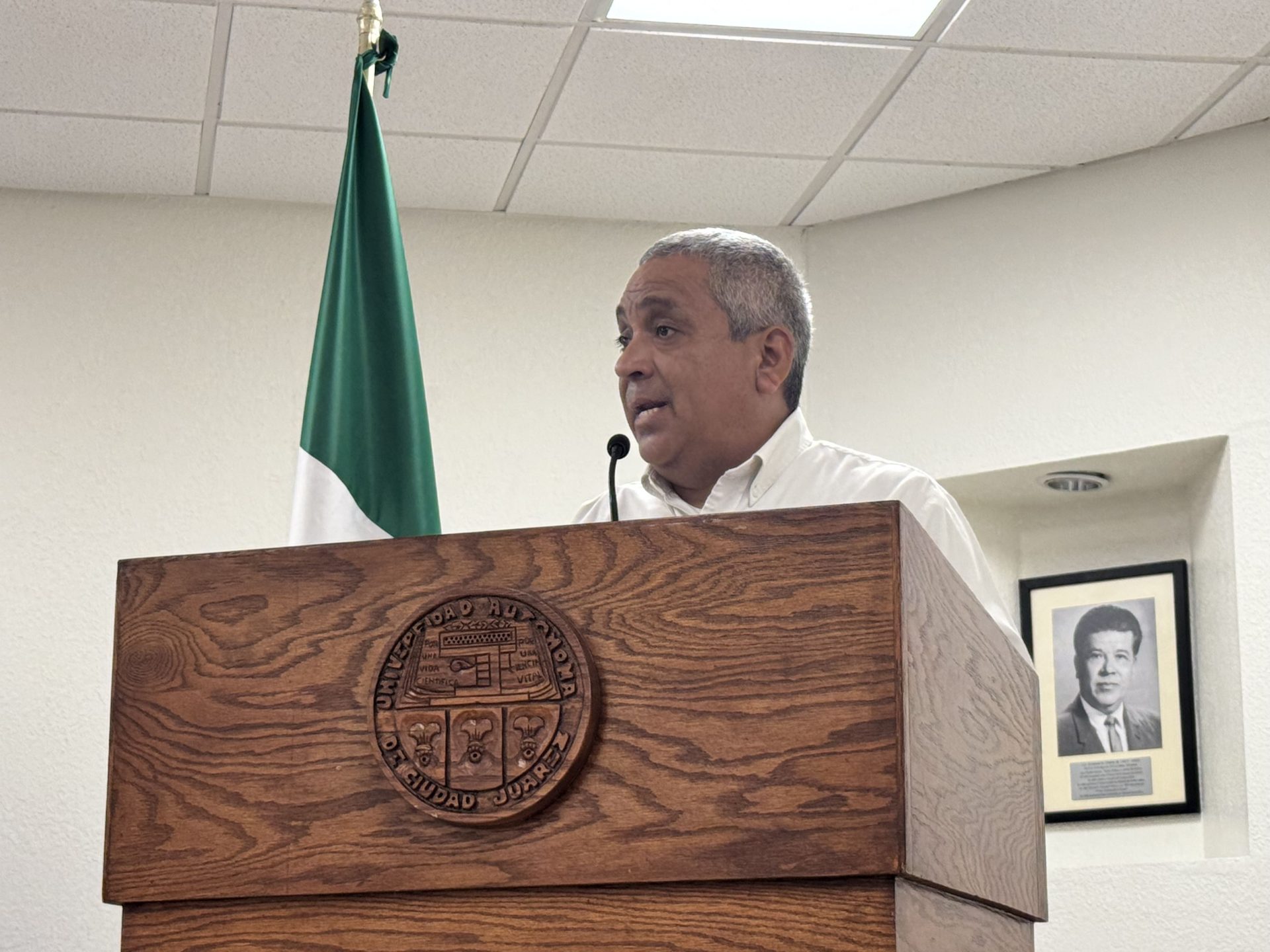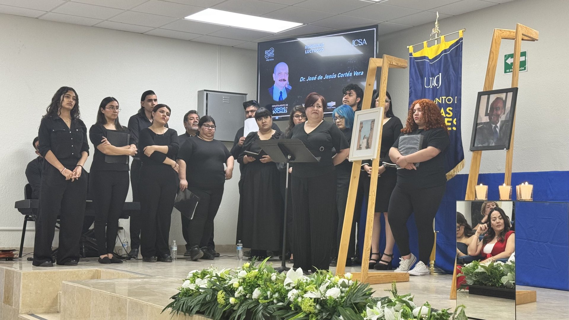 Como acto simbólico de cierre, el director del Instituto y el jefe del Departamento de Ciencias Sociales, el Dr. Servando Pineda Jaimes, entregaron a las familias un reconocimiento póstumo que consistió en la bandera de la Universidad Autónoma de Ciudad Juárez, un gesto que dice, sin palabras, que la labor docente no termina en el aula. Permanece en la memoria colectiva, en la identidad institucional, en cada generación que avanza.