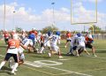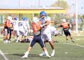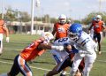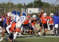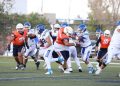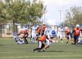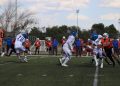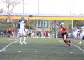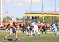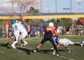 Todavía, en el mismo primer periodo, los Indios tenían el ovoide en su propia yarda 14 y el mariscal de campo Leonel García Cruz (#8) conectó un pase con el receptor abierto Kevin Alejandro López del Hoyo (#88), quien llevó el ovoide hasta la zona roja antes de que culminara el primer cuarto.