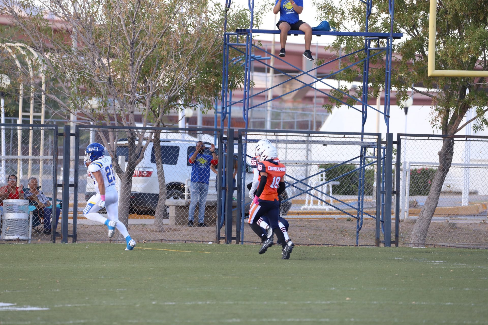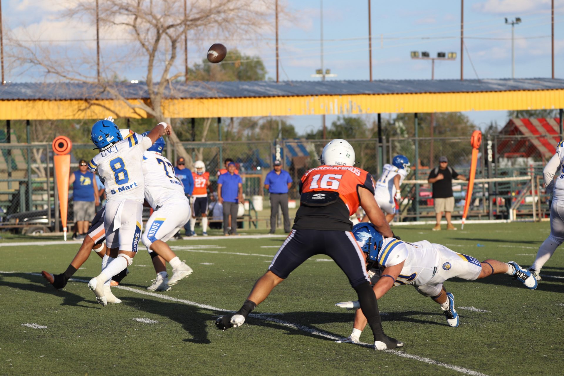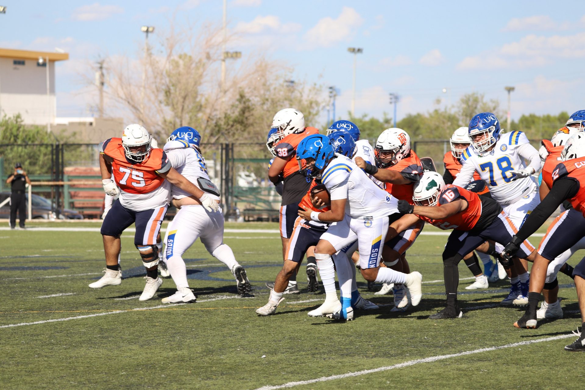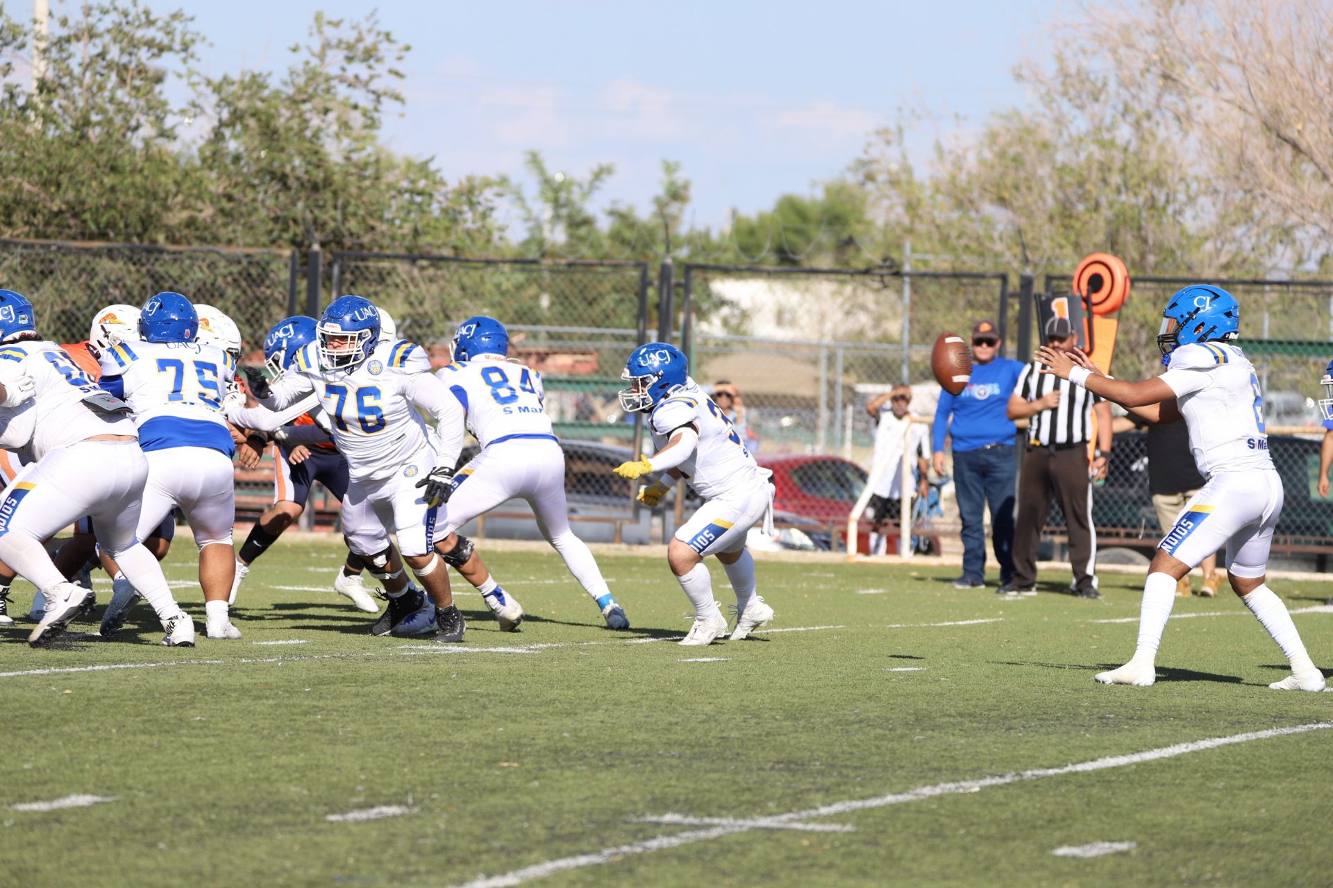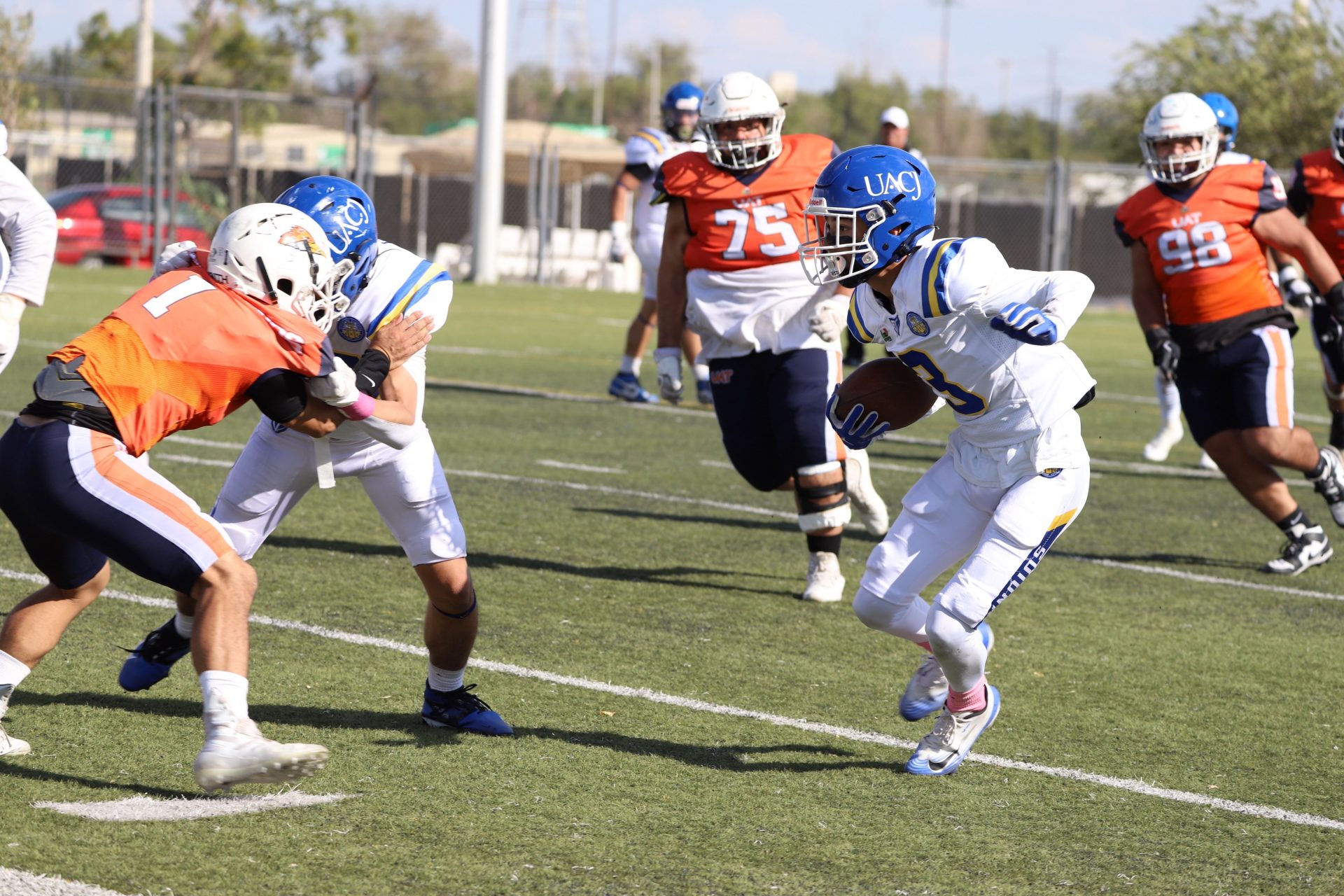 Sin embargo, después del último tropiezo de la UACJ, separando 4:53 del segundo cuarto, la ofensiva visitante continuaba mostrando firmeza: el mariscal (#10) efectuó un pase de 24 yardas al corredor (#8), desarticulando las aspiraciones locales, manteniendo a raya el marcador 7-6.