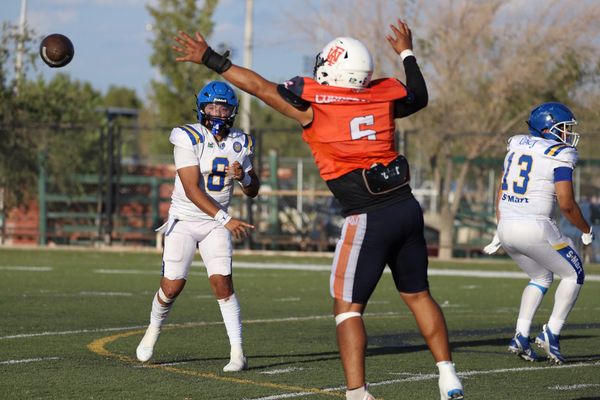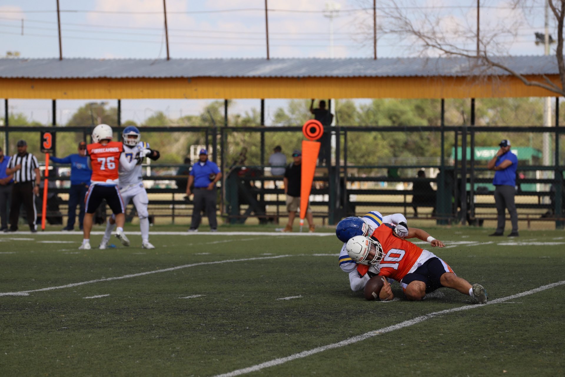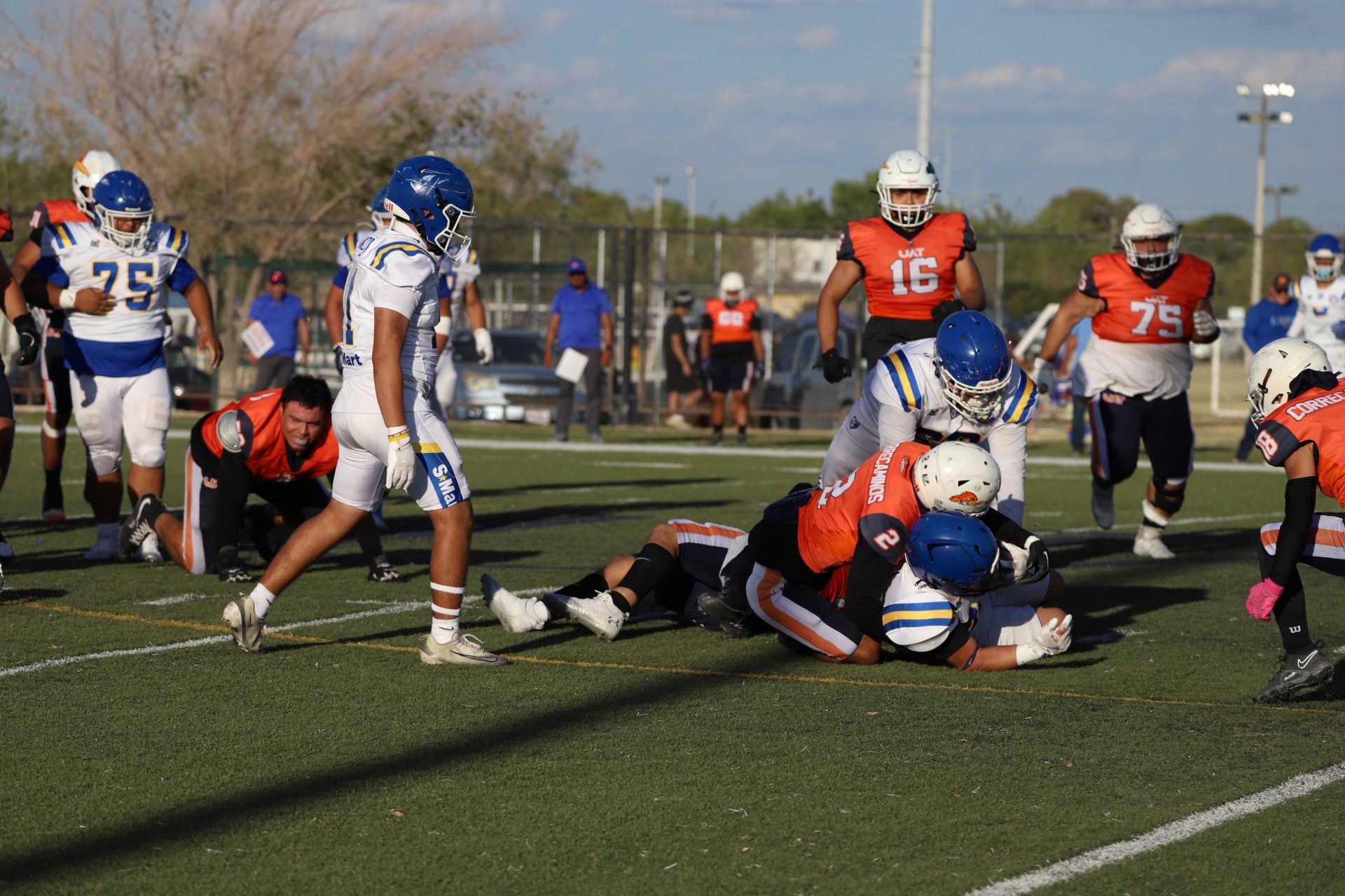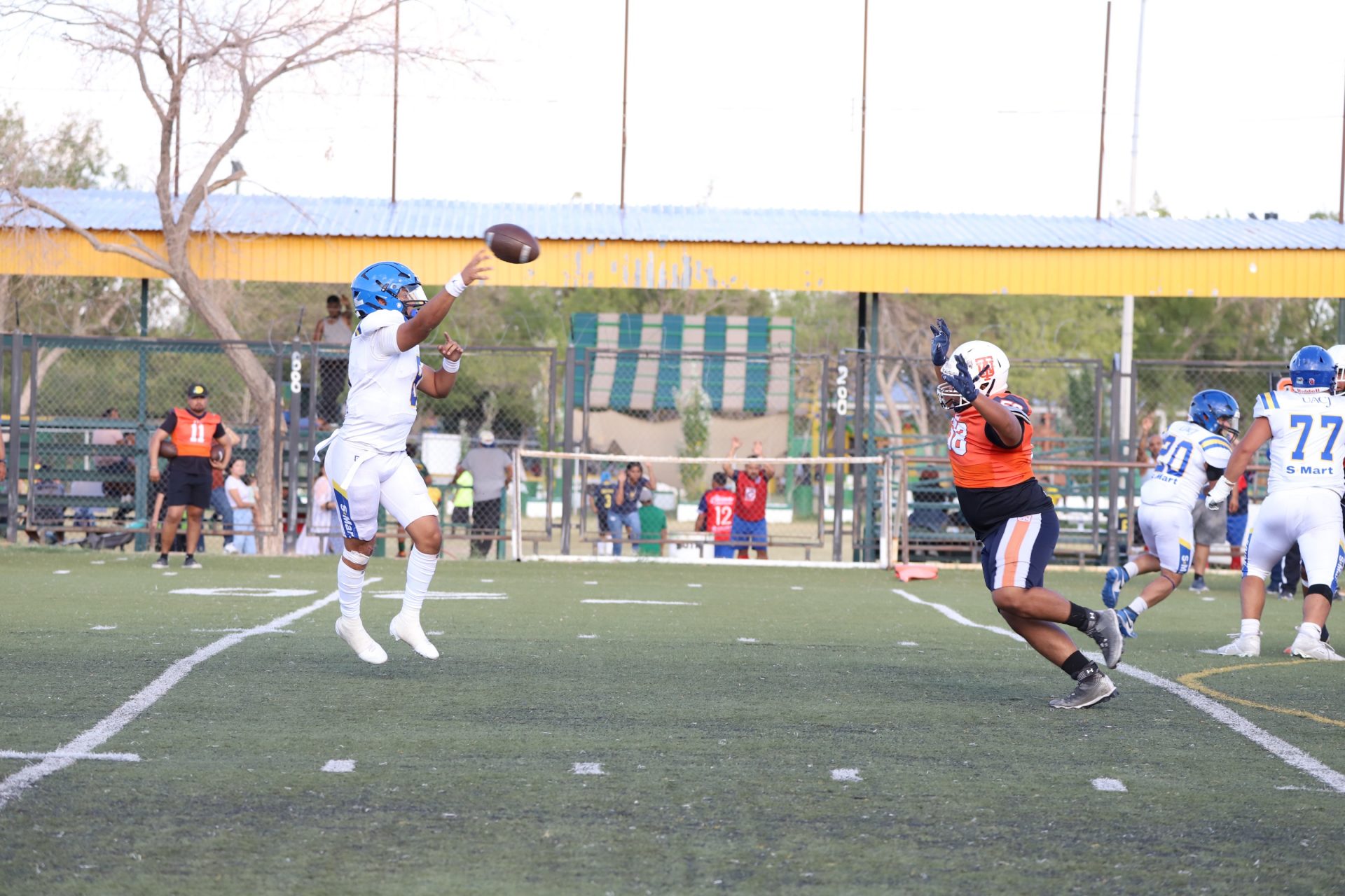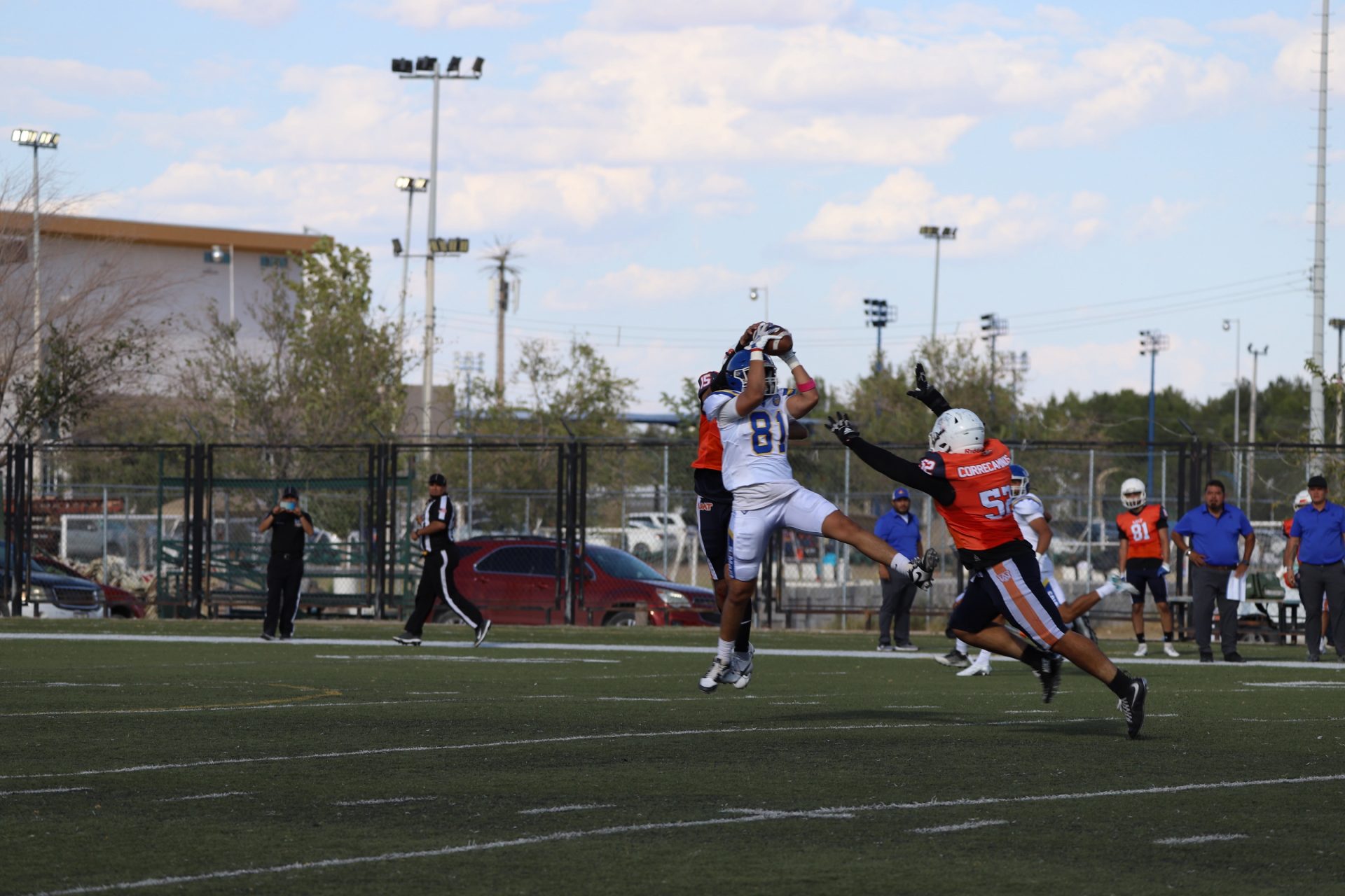 Sin embargo, después del último tropiezo de la UACJ, separando 4:53 del segundo cuarto, la ofensiva visitante continuaba mostrando firmeza: el mariscal (#10) efectuó un pase de 24 yardas al corredor (#8), desarticulando las aspiraciones locales, manteniendo a raya el marcador 7-6.