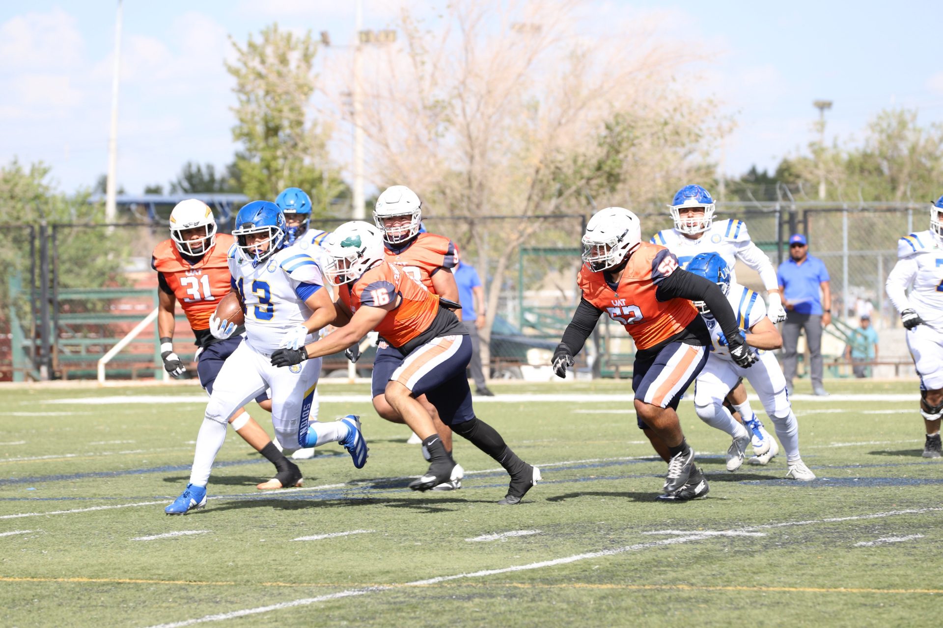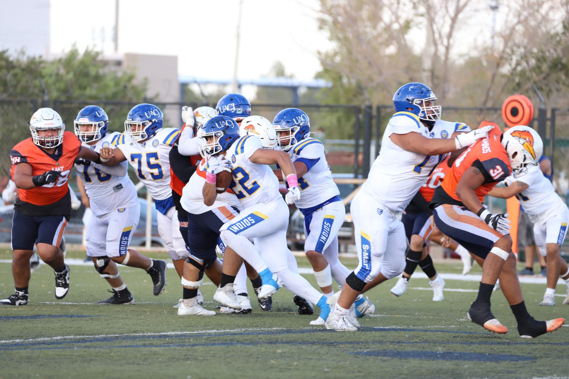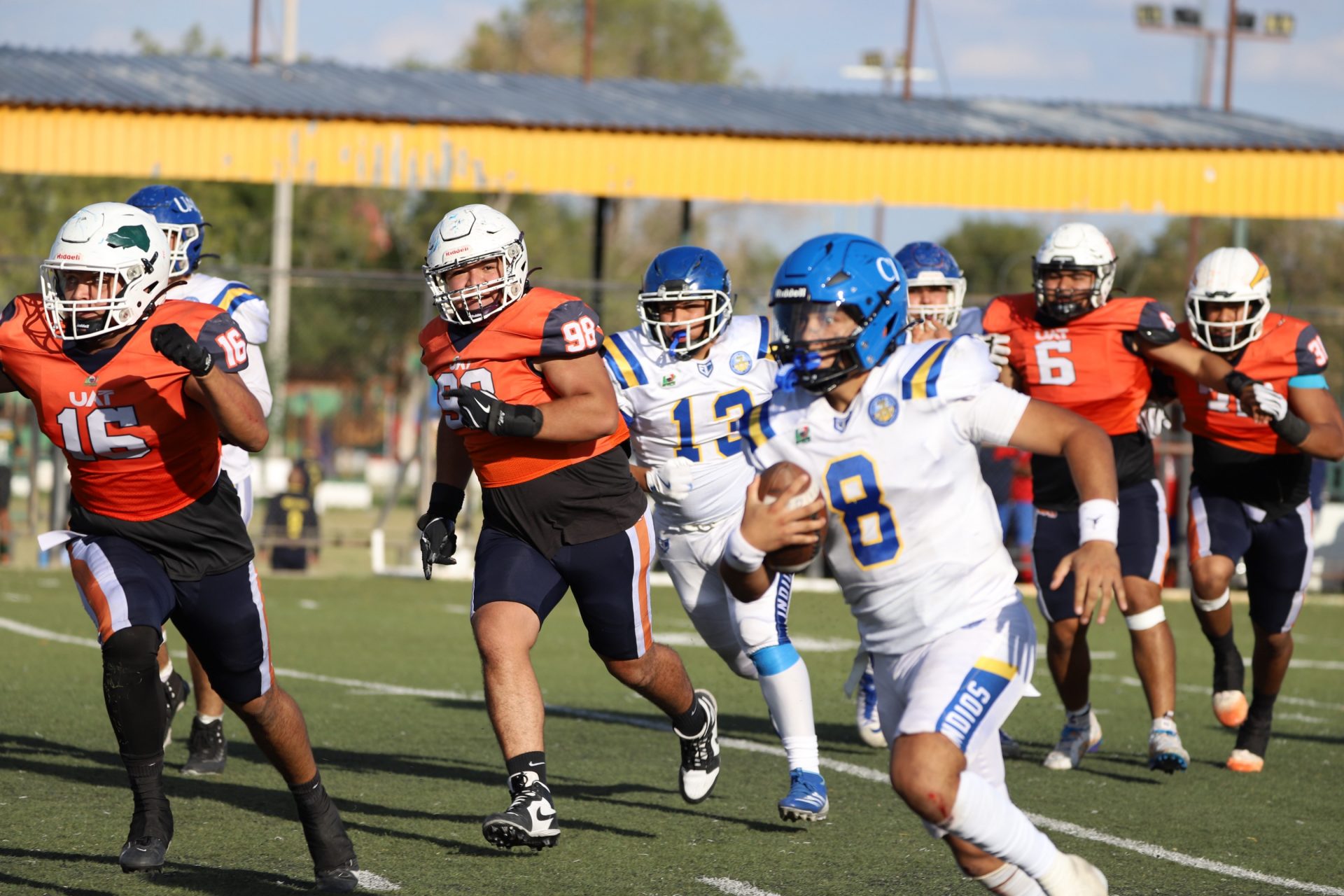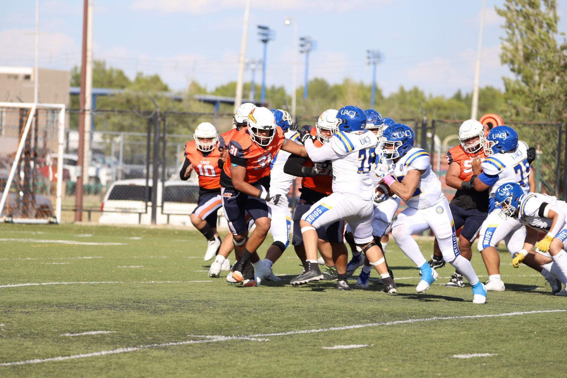 En su regreso a casa después de poco más de un mes de ausencia, cargados de la euforia universitaria, los Indios de la Universidad Autónoma de Ciudad Juárez (UACJ) defendieron con autoridad su territorio y lograron su cuarta victoria de la temporada al imponerse 31-14 a los Correcaminos de la Universidad Autónoma de Tamaulipas (UAT), en el marco del quinto juego del grupo norte de la Conferencia Nacional de la Organización Estudiantil de Futbol Americano (ONEFA).