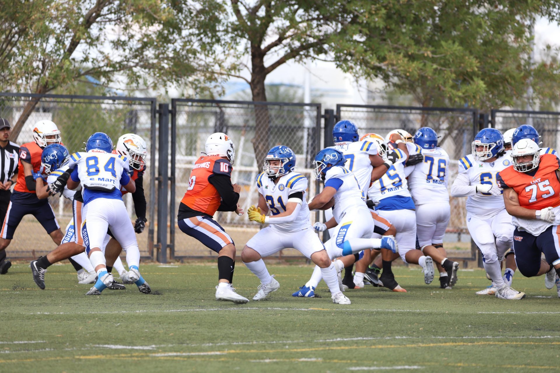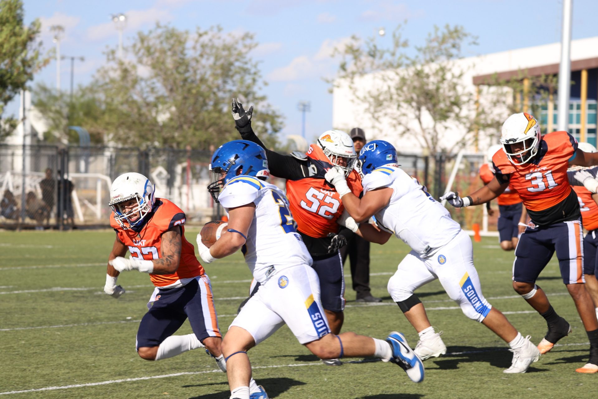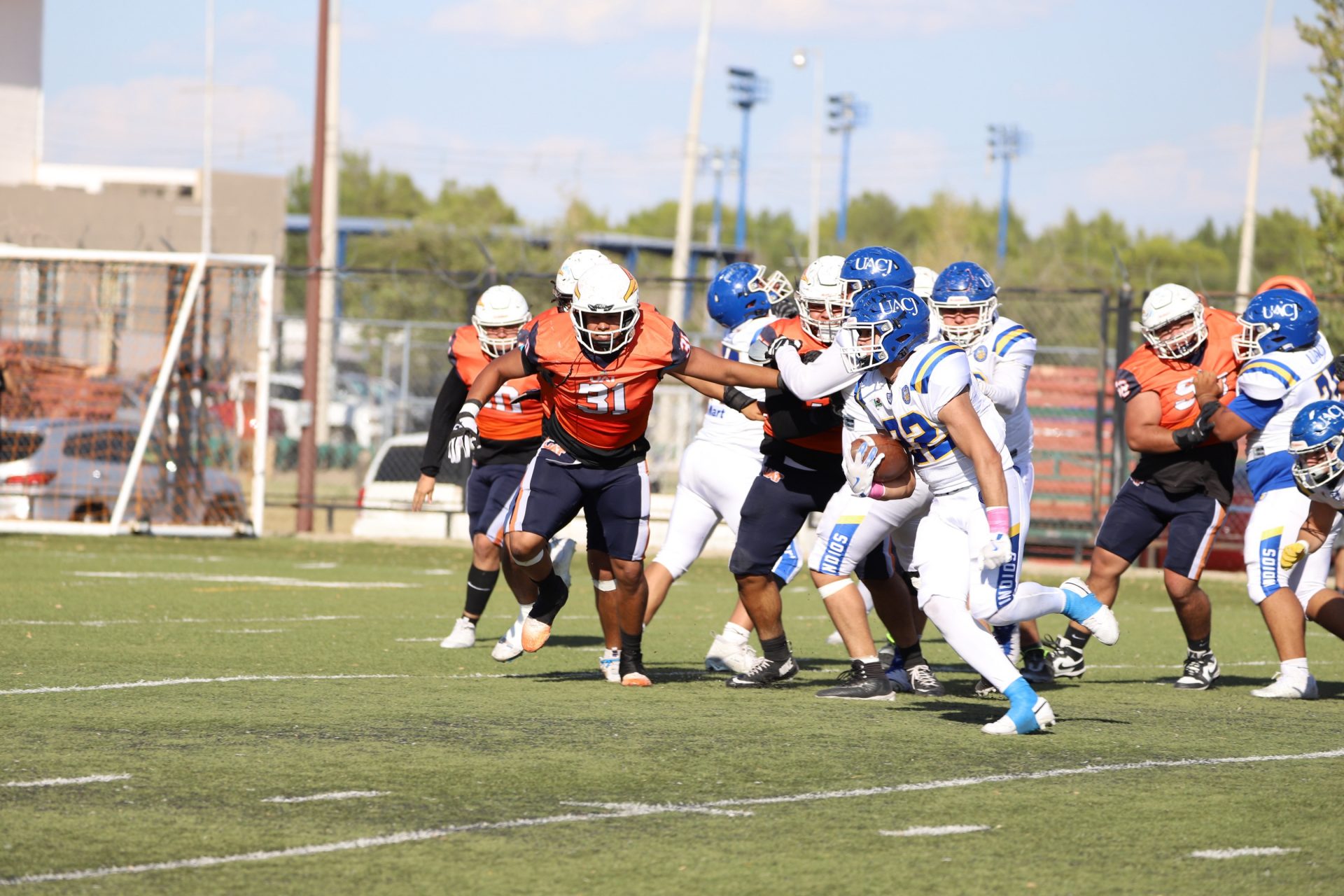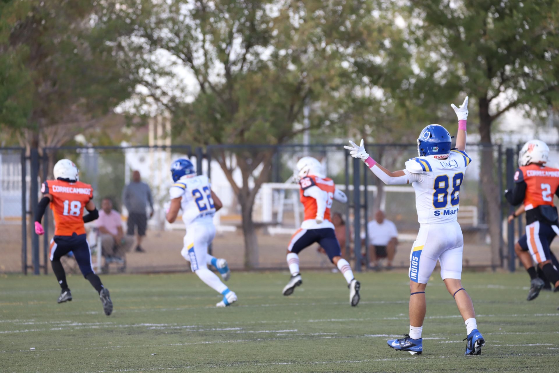 En su regreso a casa después de poco más de un mes de ausencia, cargados de la euforia universitaria, los Indios de la Universidad Autónoma de Ciudad Juárez (UACJ) defendieron con autoridad su territorio y lograron su cuarta victoria de la temporada al imponerse 31-14 a los Correcaminos de la Universidad Autónoma de Tamaulipas (UAT), en el marco del quinto juego del grupo norte de la Conferencia Nacional de la Organización Estudiantil de Futbol Americano (ONEFA).