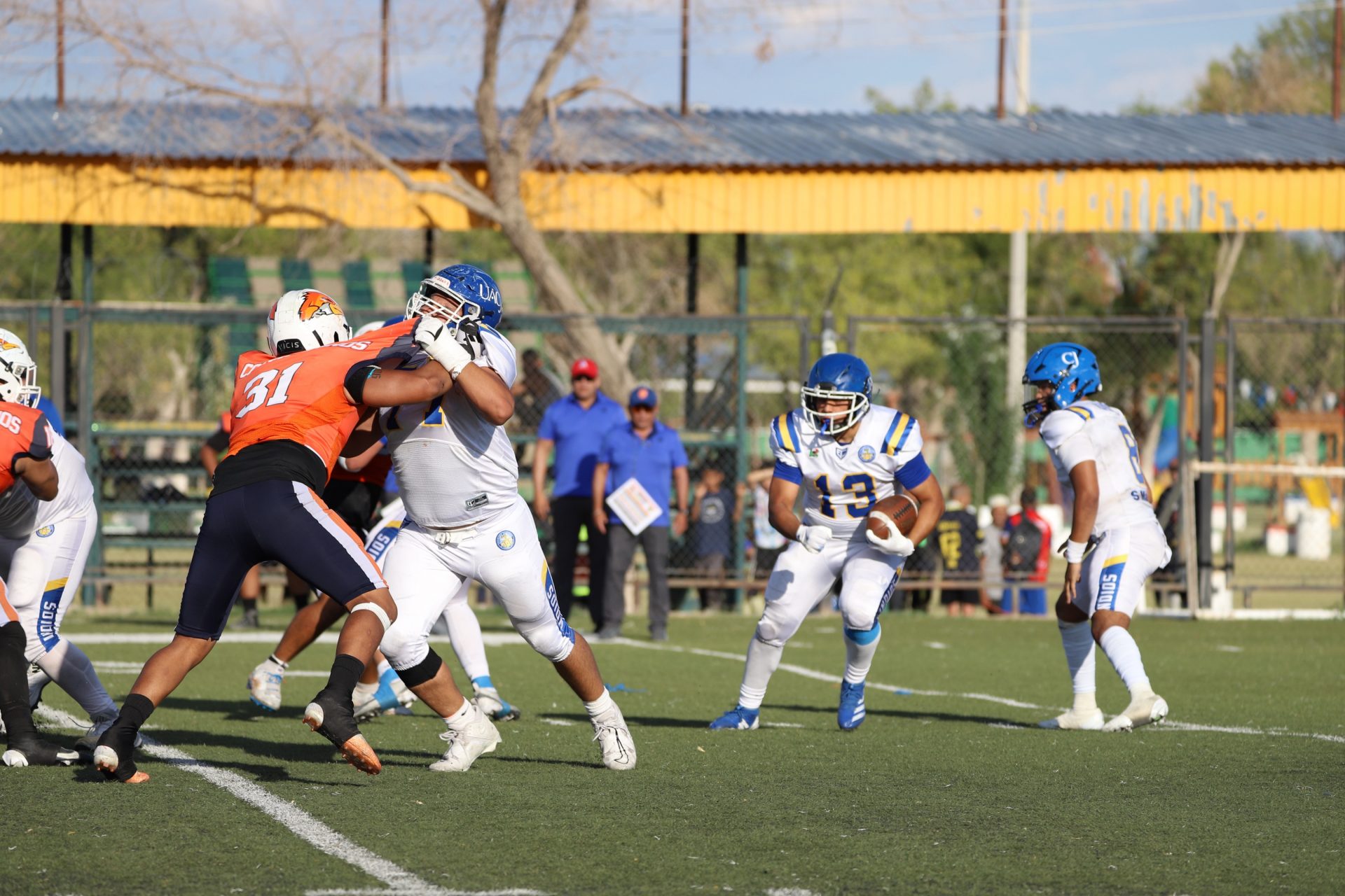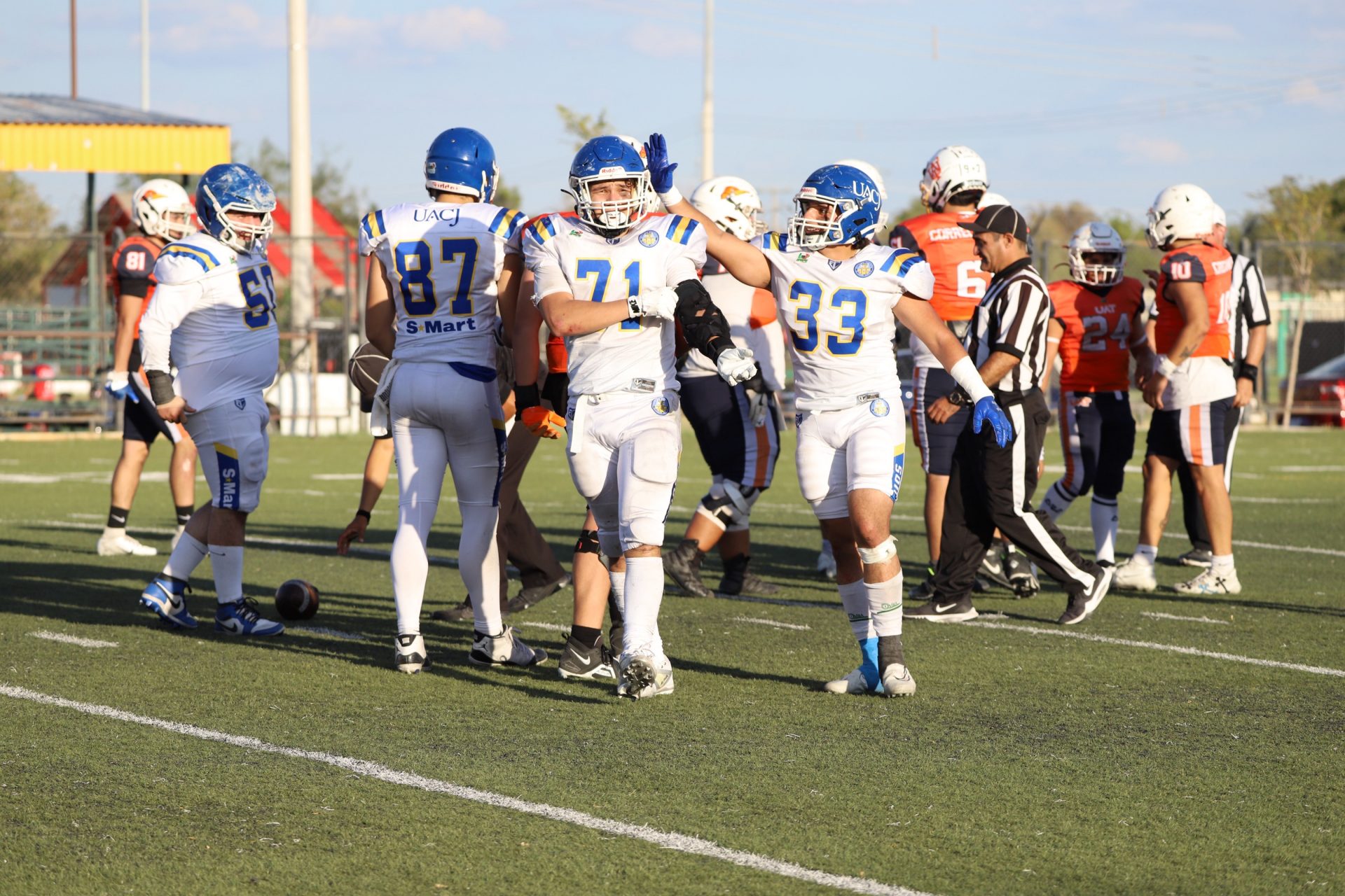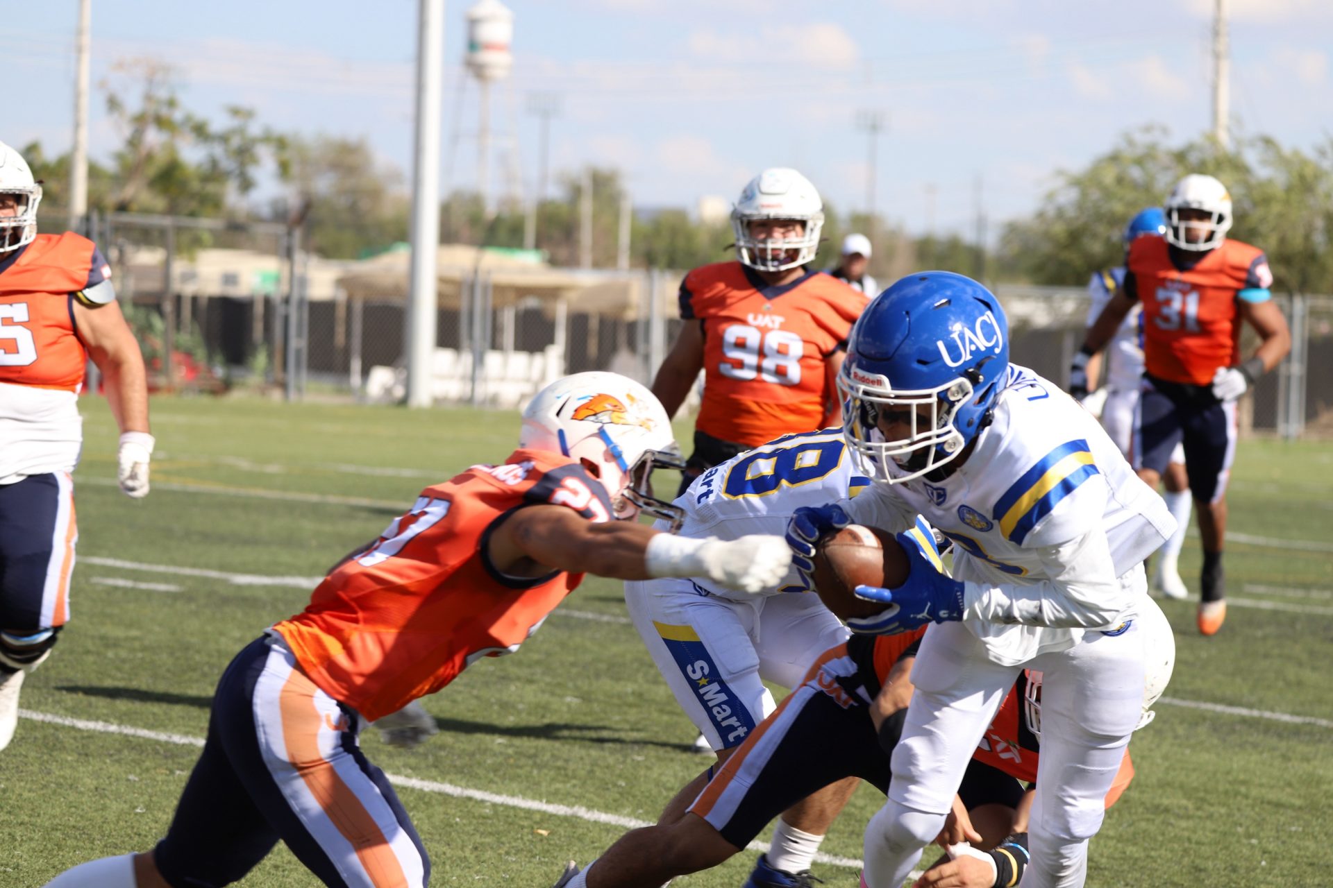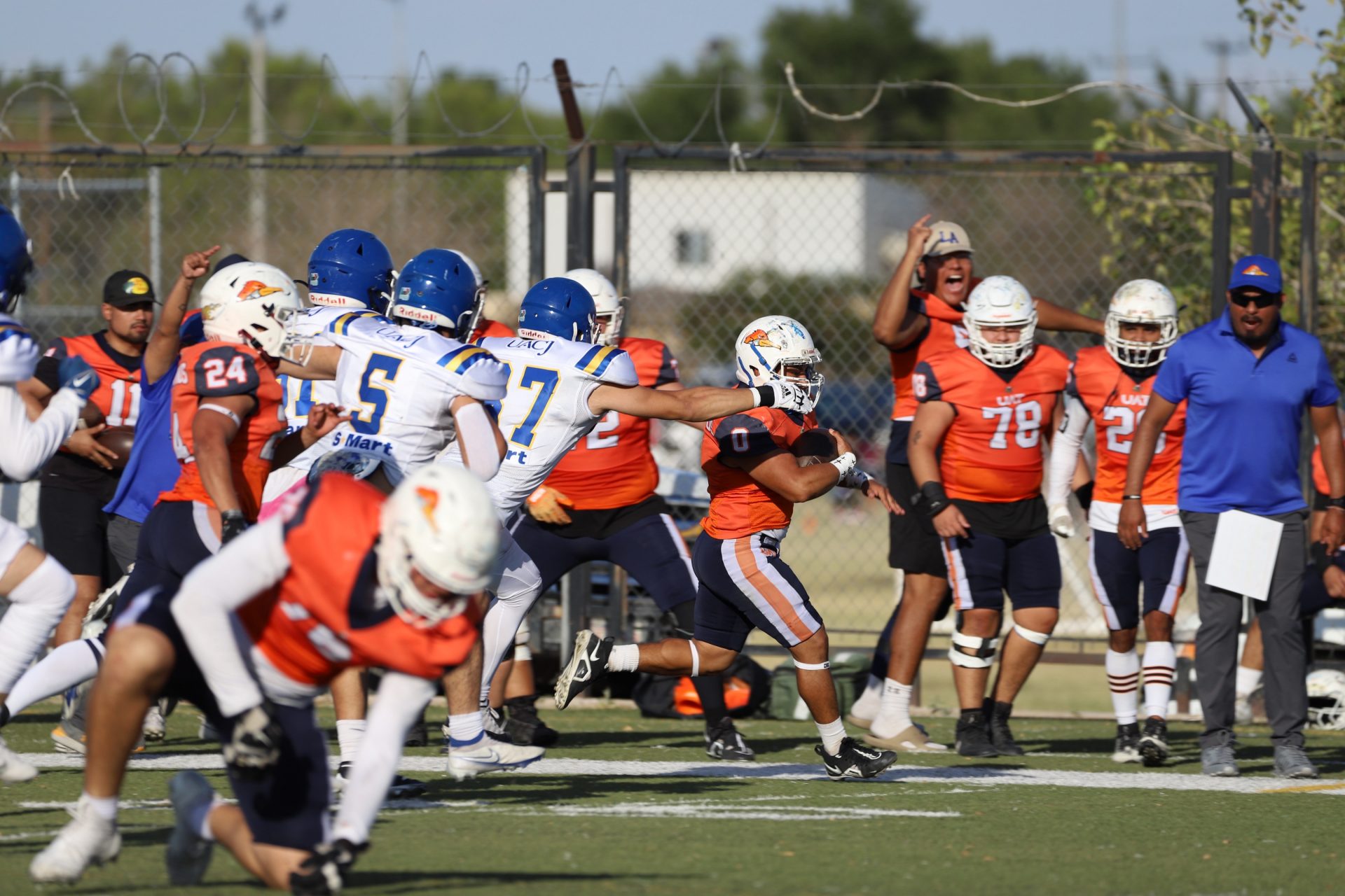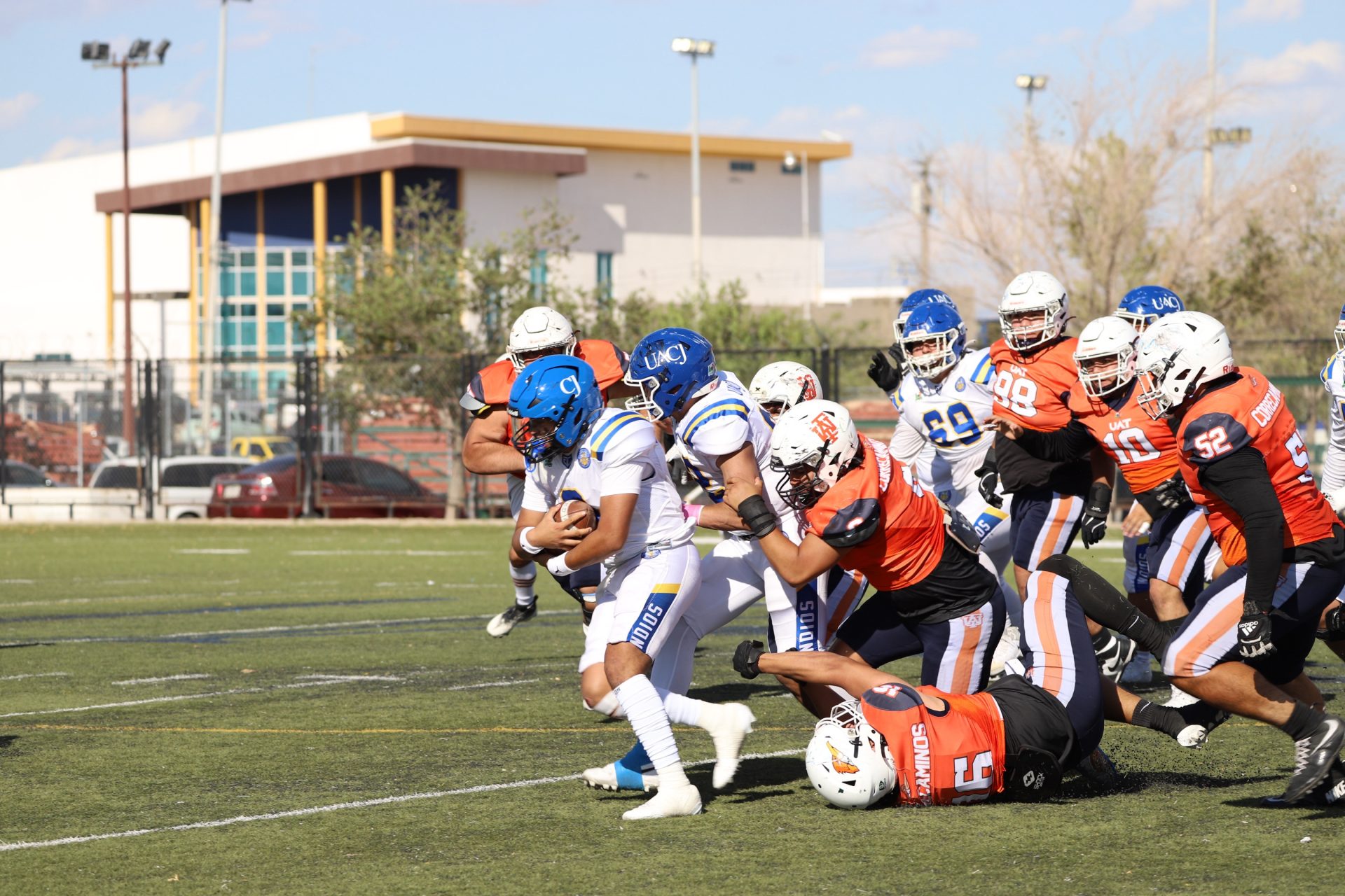 En su regreso a casa después de poco más de un mes de ausencia, cargados de la euforia universitaria, los Indios de la Universidad Autónoma de Ciudad Juárez (UACJ) defendieron con autoridad su territorio y lograron su cuarta victoria de la temporada al imponerse 31-14 a los Correcaminos de la Universidad Autónoma de Tamaulipas (UAT), en el marco del quinto juego del grupo norte de la Conferencia Nacional de la Organización Estudiantil de Futbol Americano (ONEFA).