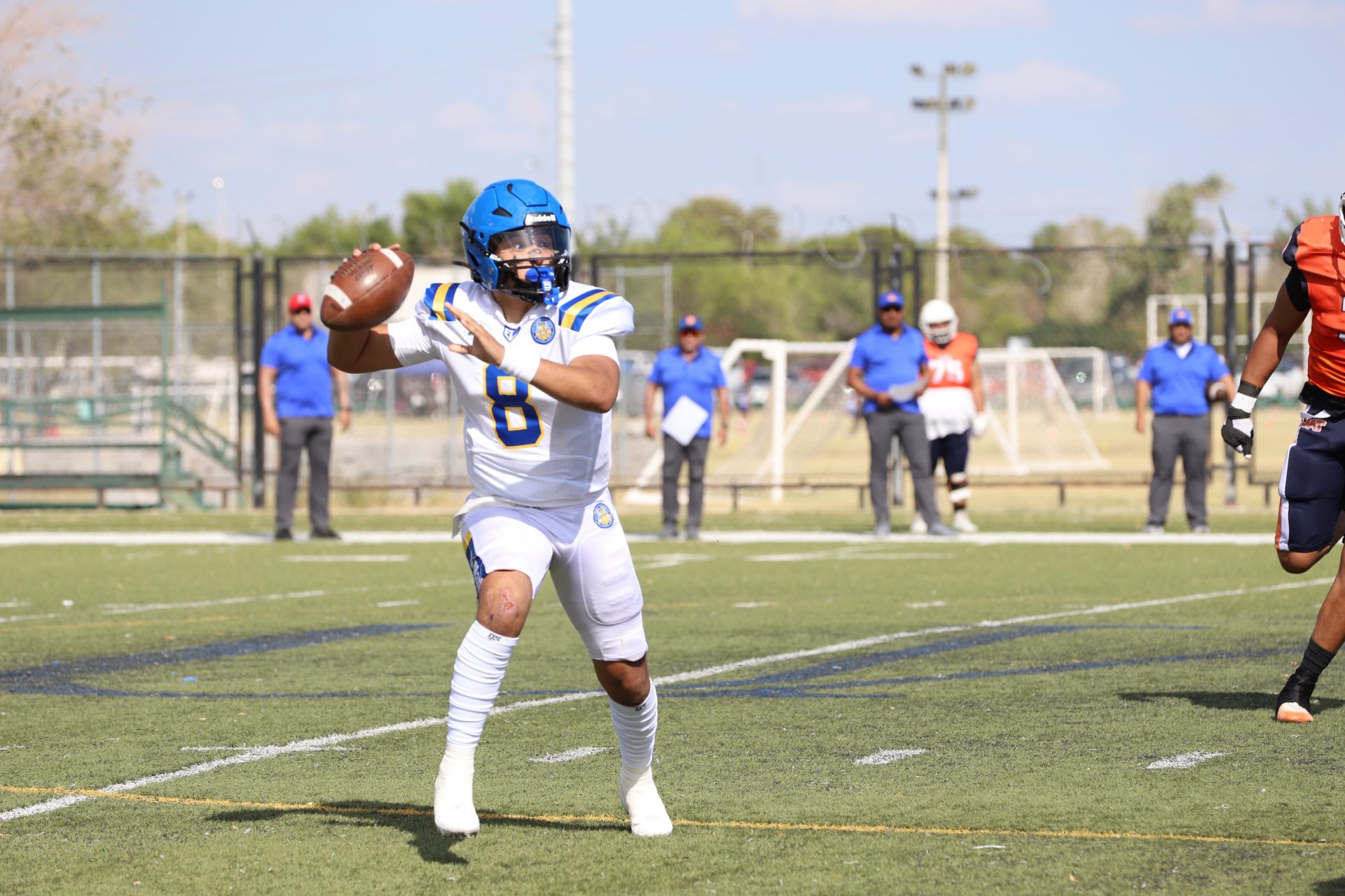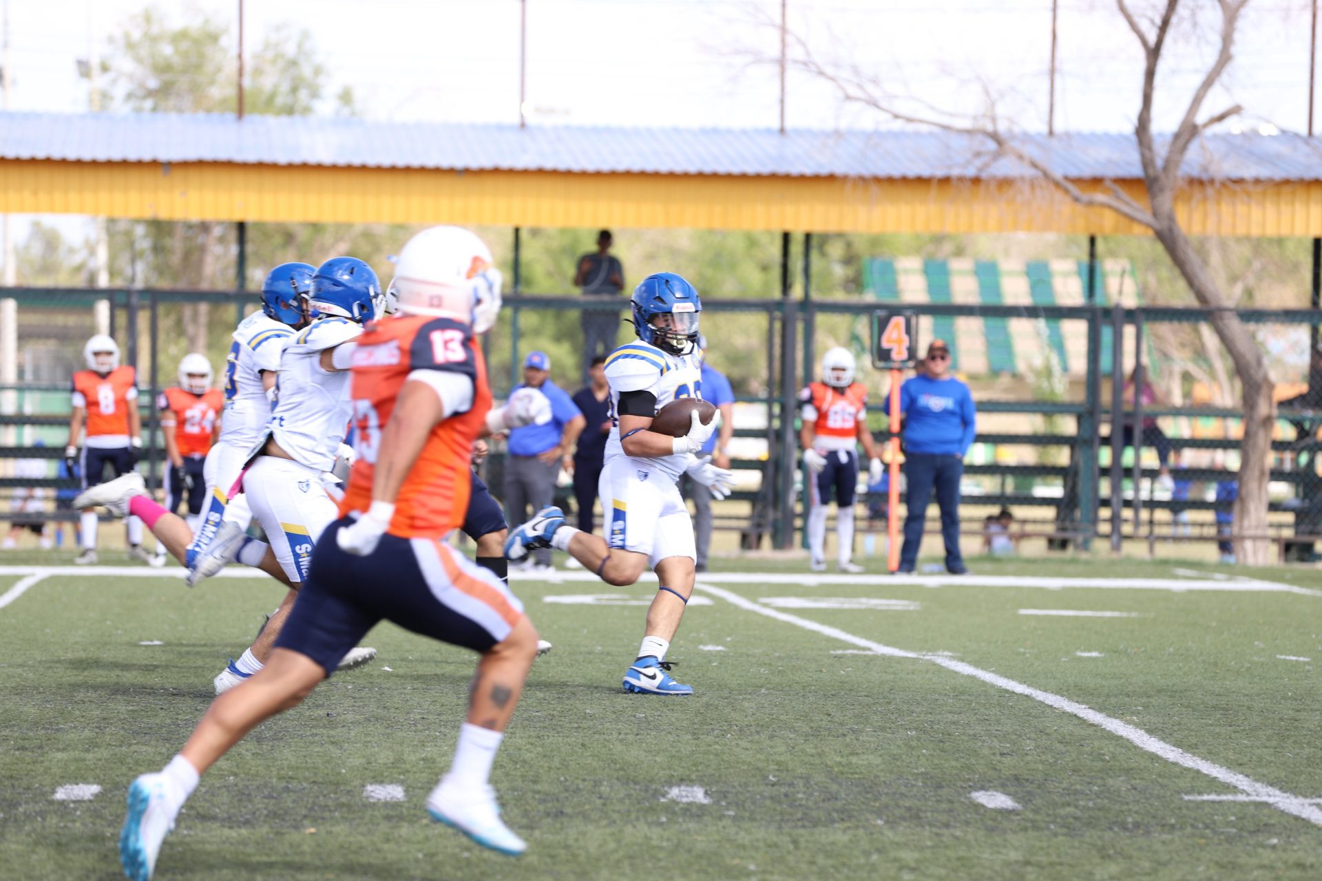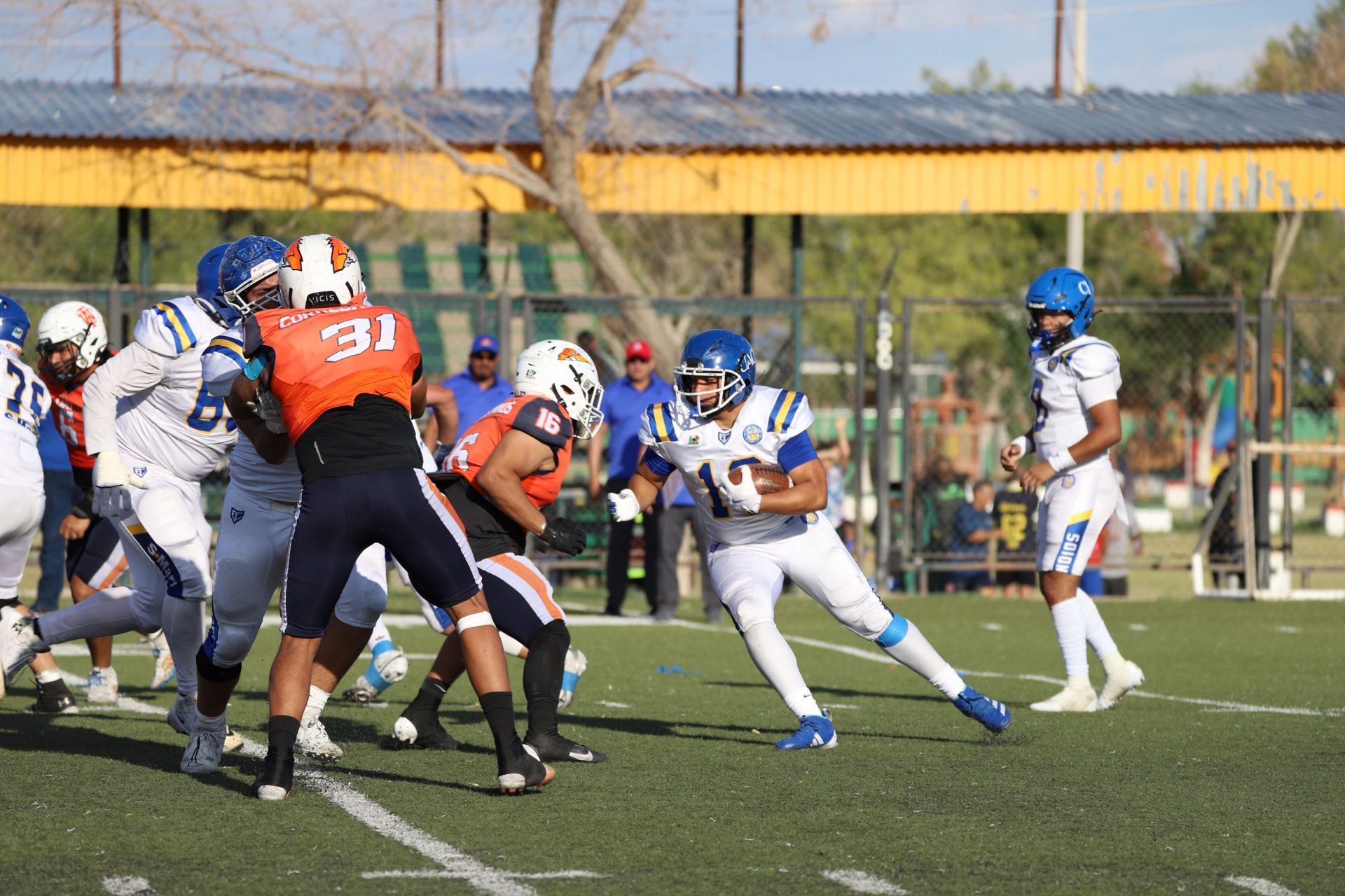 Desde el primer cuarto, los Indios marcaron el ritmo del partido con una ofensiva dinámica y bien orquestada. El mariscal de campo local Edgar Leonel García Cruz (#8) conectó pases certeros que abrieron la defensa rival, mientras que la línea ofensiva impuso condiciones en la trinchera.