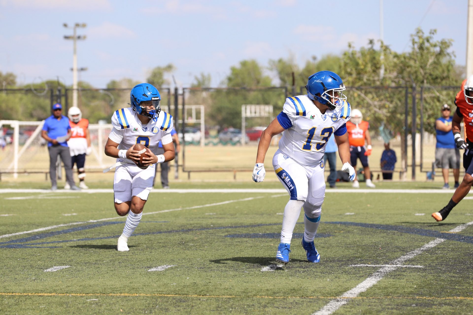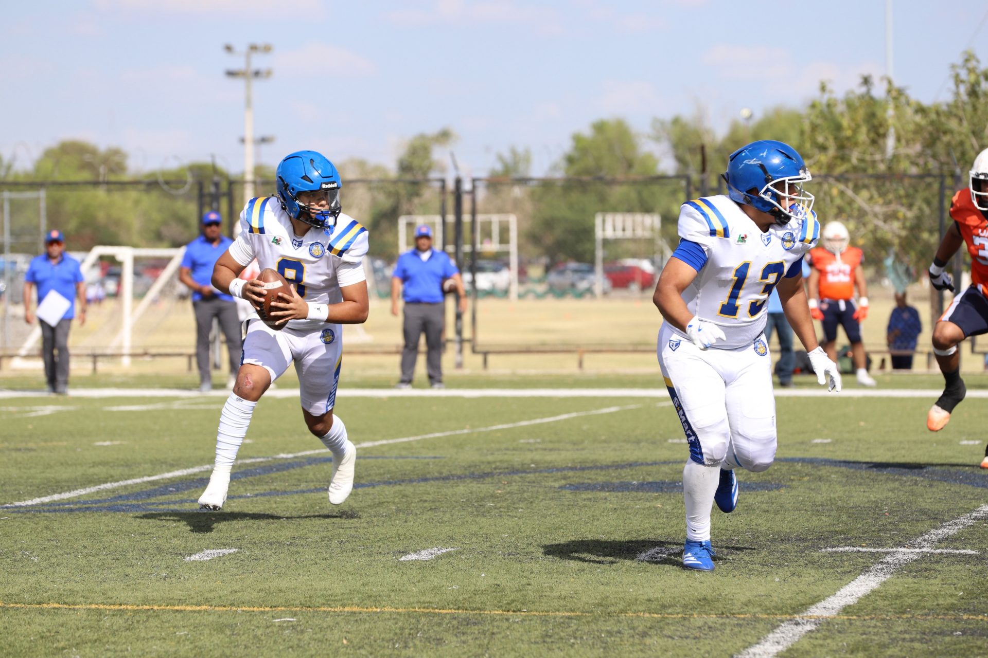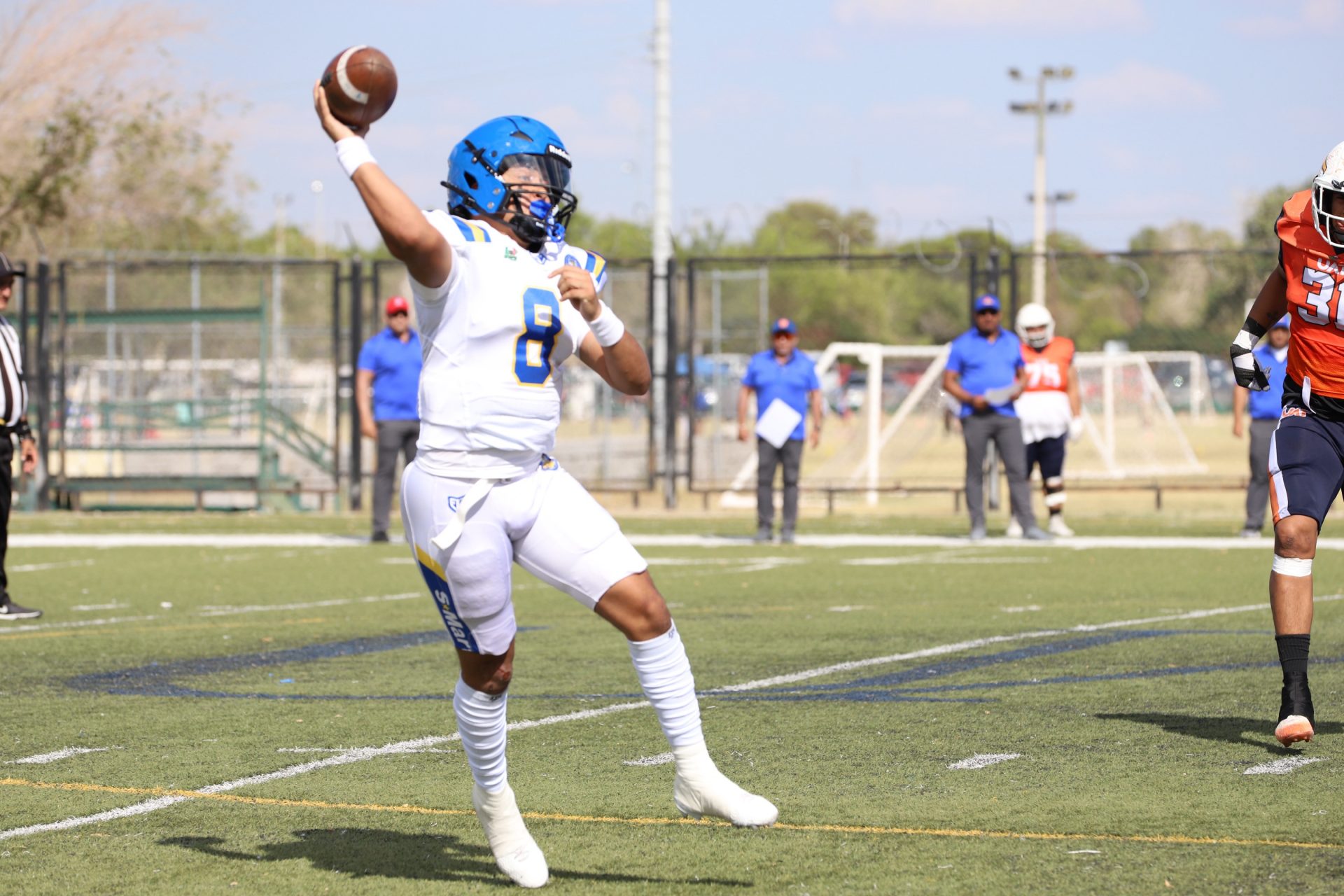 Desde el primer cuarto, los Indios marcaron el ritmo del partido con una ofensiva dinámica y bien orquestada. El mariscal de campo local Edgar Leonel García Cruz (#8) conectó pases certeros que abrieron la defensa rival, mientras que la línea ofensiva impuso condiciones en la trinchera.