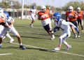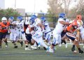 Poco después de la pausa de los 2:00 minutos de este mismo periodo, los de blanco, con azul rey y amarillo oro se fueron arriba 14-6, luego de una conversión de dos puntos favorable por parte del (#43).