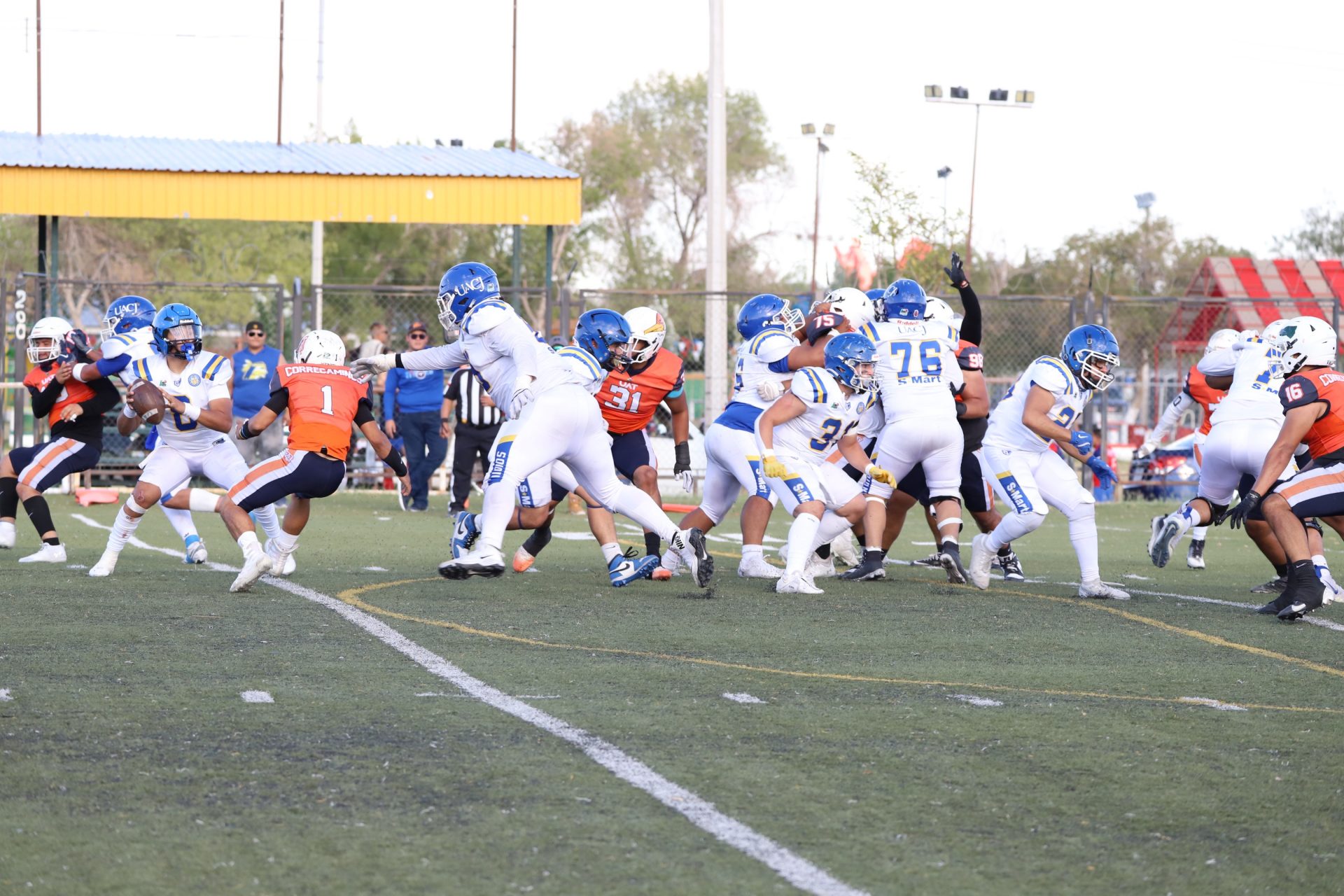 El encuentro se disputó en el emparrillado del Complejo Deportivo Universitario en punto de las 15:00 horas, donde más de un centenar de aficionados vistieron de blanco, con azul rey y amarillo oro para alentar a los juarenses, que respondieron con una actuación sólida en todas sus líneas.
