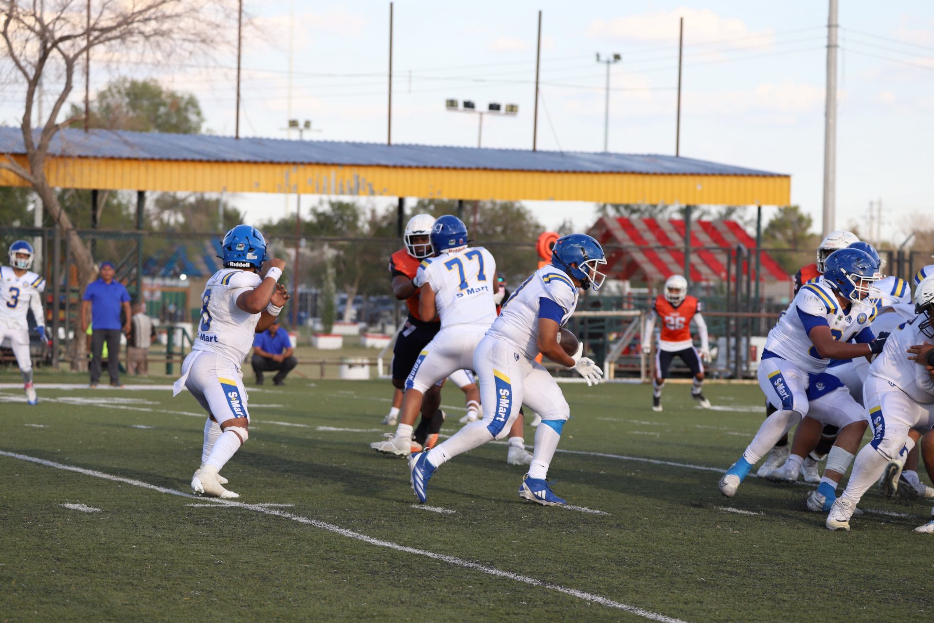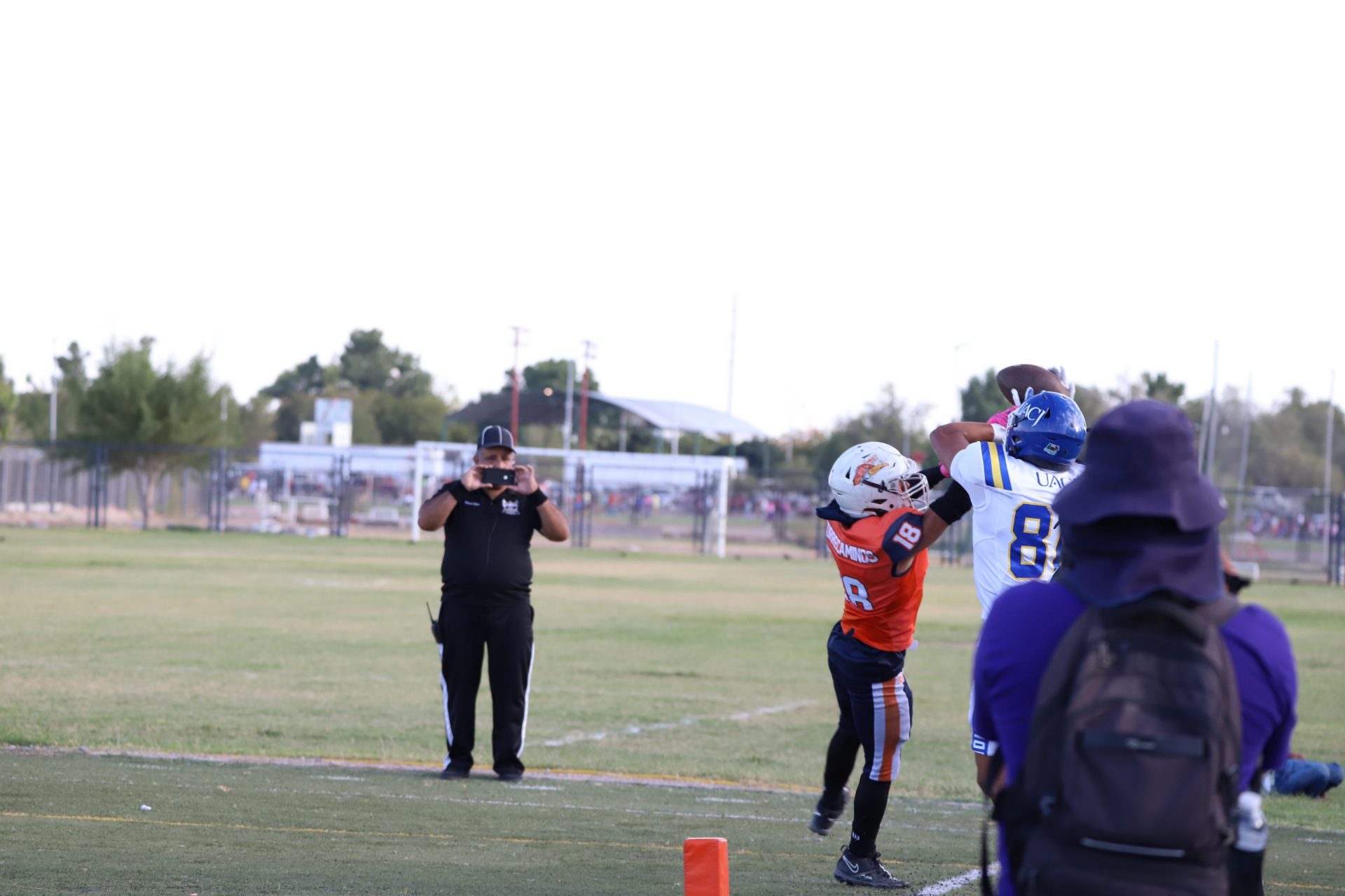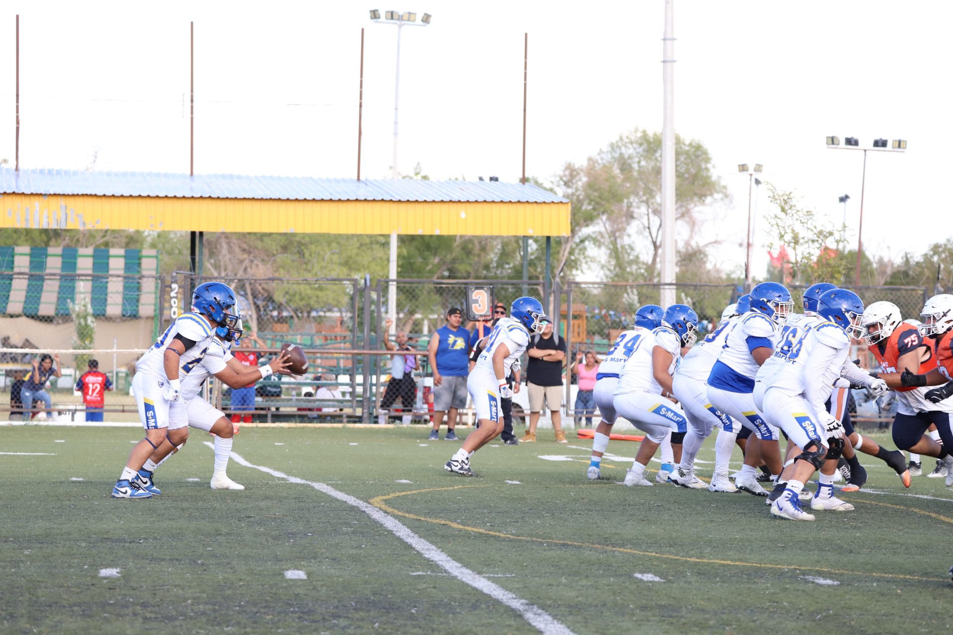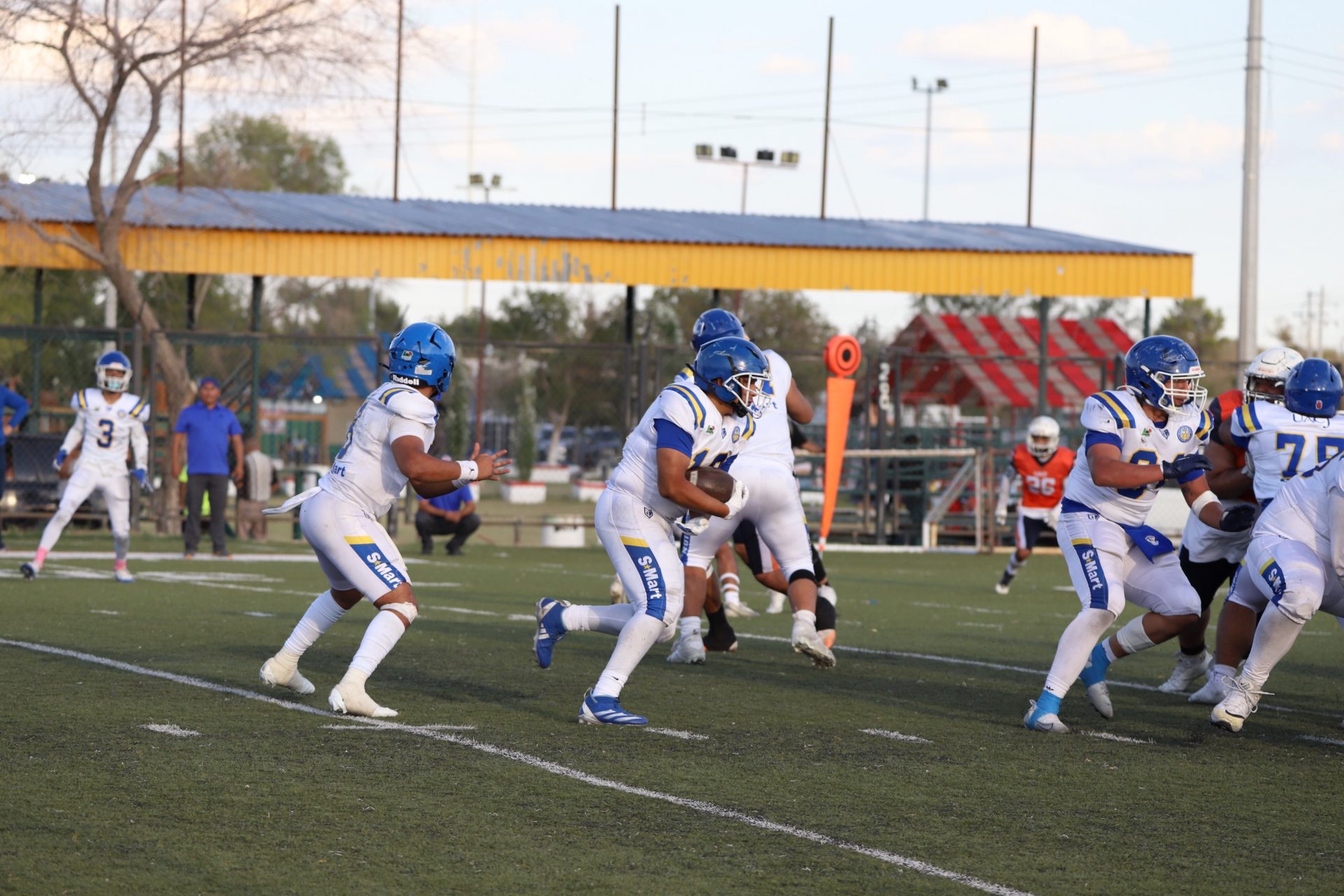 Prueba de ello fue a los 10:22 del primer periodo, cuando un fumble explosivo por parte del corredor Hugo Daniel Ovando Guerrero (#20) logró llegar a zona prometida para darle la aparente primera anotación a la escuadra local; no obstante, fue invalida por castigo de bloqueo en la espalda.