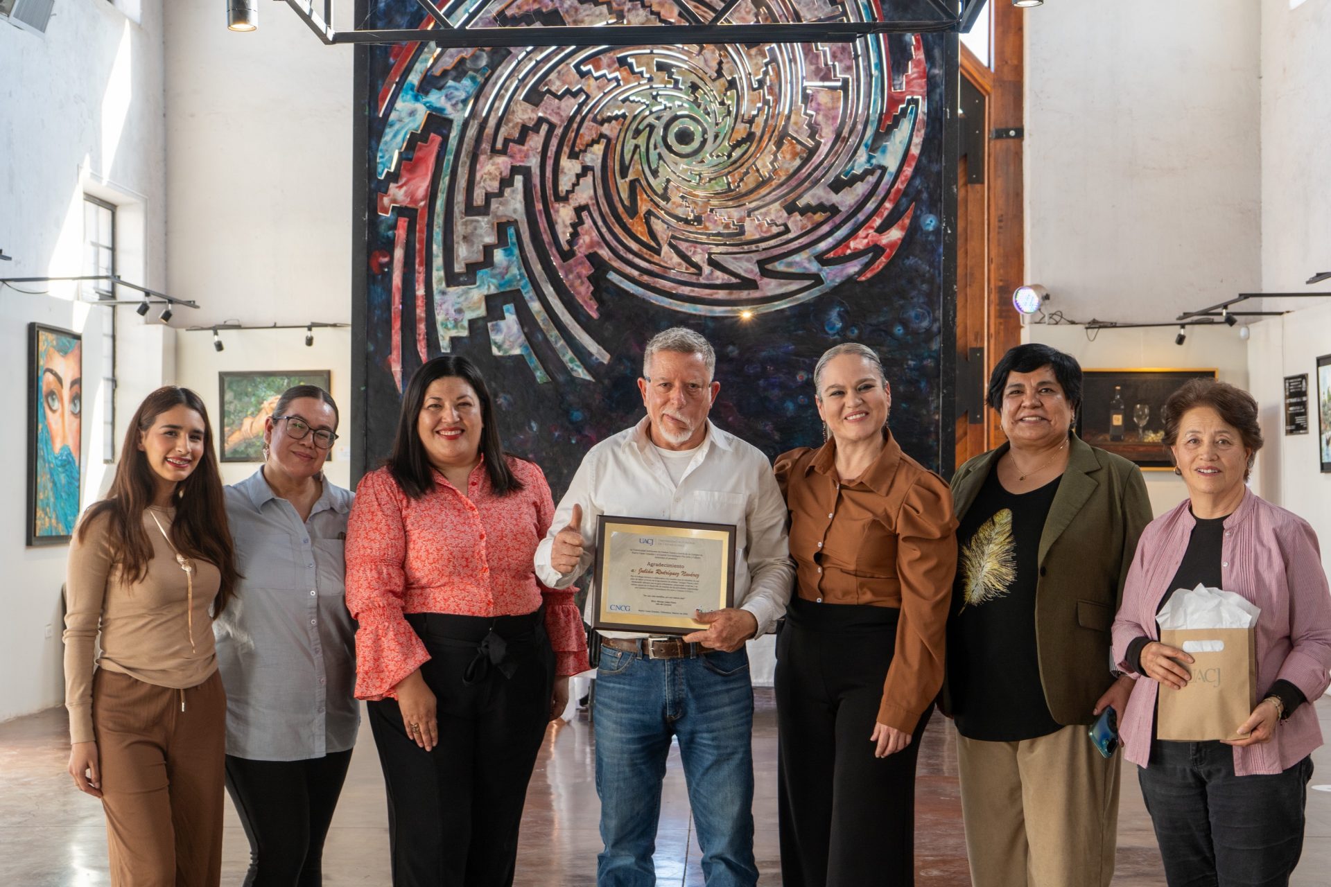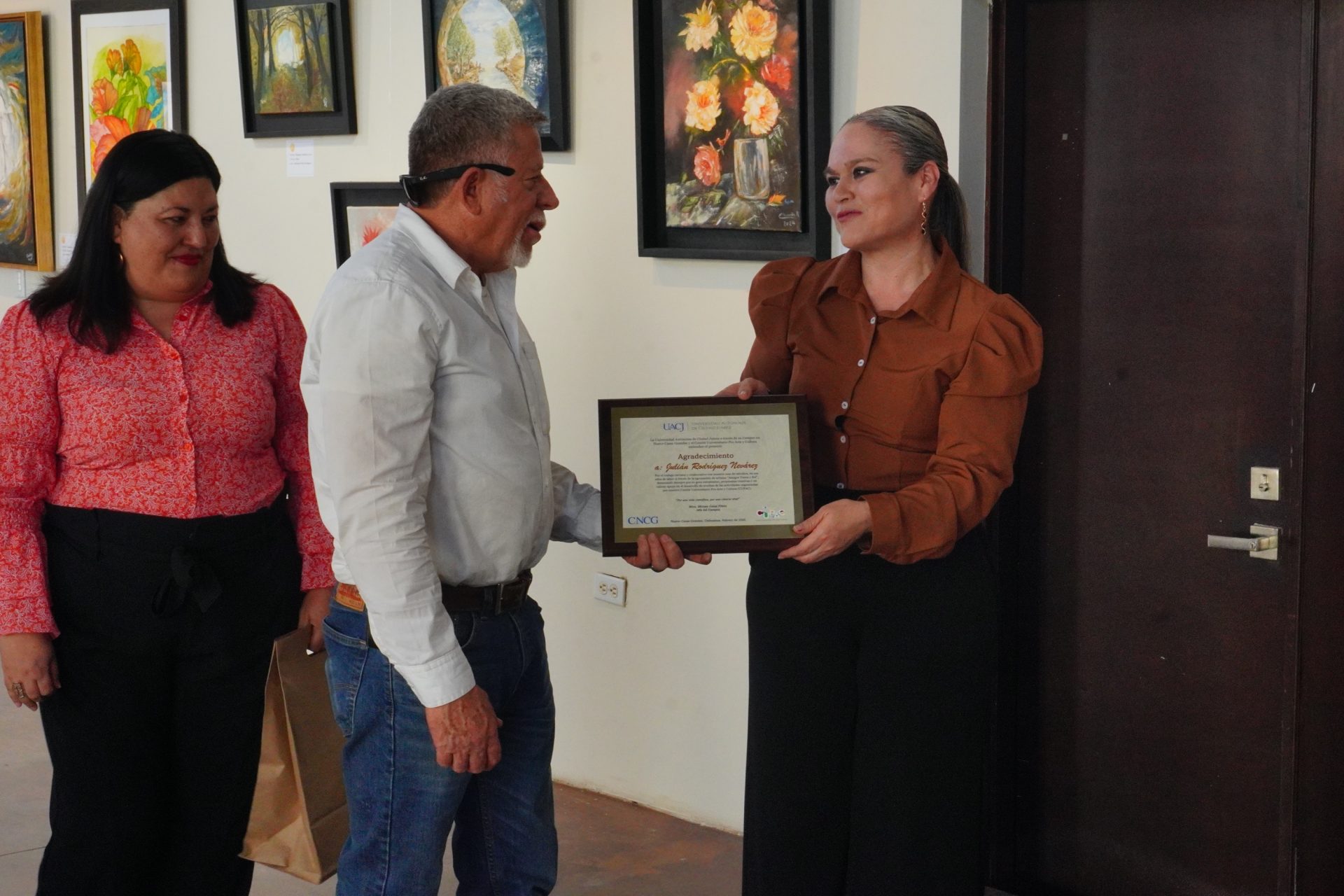 Durante las palabras que fueron dirigidas en este encuentro, la maestra Miriam Galaz Piñón, jefa del Campus Nuevo Casas Grandes, extendió un agradecimiento público al pintor Julián Rodríguez Nevárez, presidente saliente de “Amigos Tierra y Sol”, por el trabajo cercano y colaborativo con esta casa de estudios y el CUPAC, en sus años de labor al frente de la agrupación.