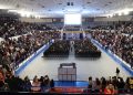 El Gimnasio Universitario de la Universidad Autónoma de Ciudad Juárez (UACJ), normalmente territorio de sudor, hazañas deportivas y espectáculos, se transformó en un templo de la academia.