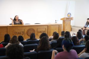 La ponente invitada fue la doctora María Magdalena Aranda, profesora del departamento de Sociología y Antropología de la Universidad Autónoma de Aguascalientes; quien cuenta con más de 20 años de trabajo en estudios socioculturales e investigación sobre el feminismo y género.