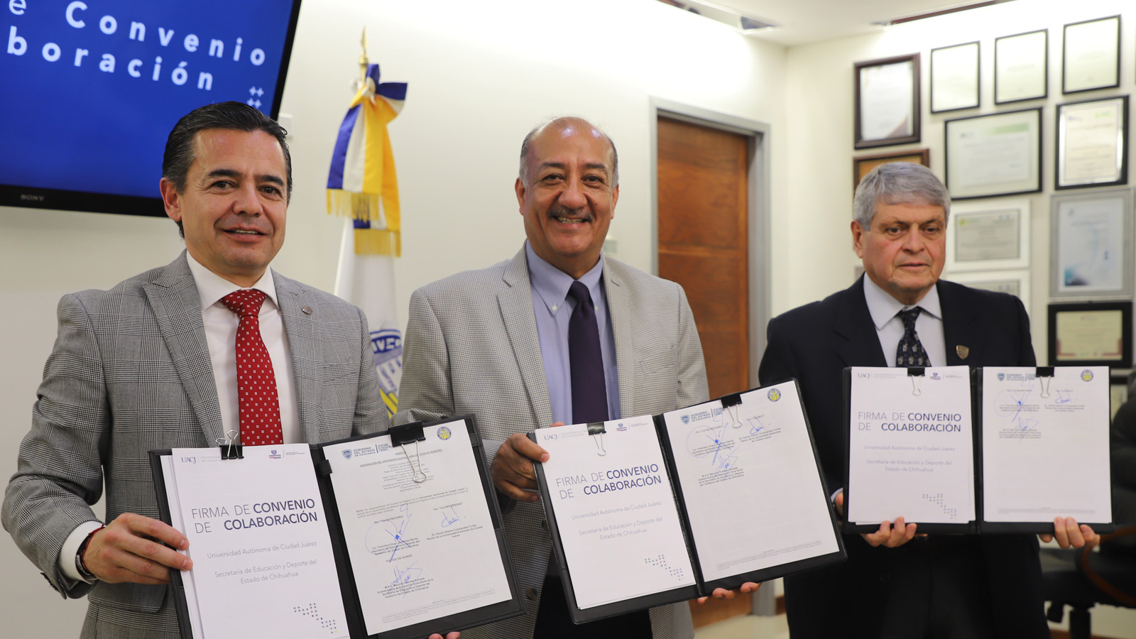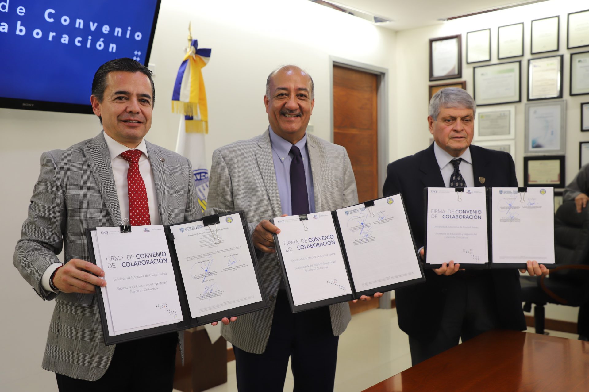La suma de voluntades, para beneficio exclusivo de la comunidad estudiantil, se hizo presente esta tarde con dos firmas de convenio, acto protagonizado por la Universidad Autónoma de Ciudad Juárez (UACJ) y la Secretaría de Educación y Deporte del Gobierno del Estado de Chihuahua.