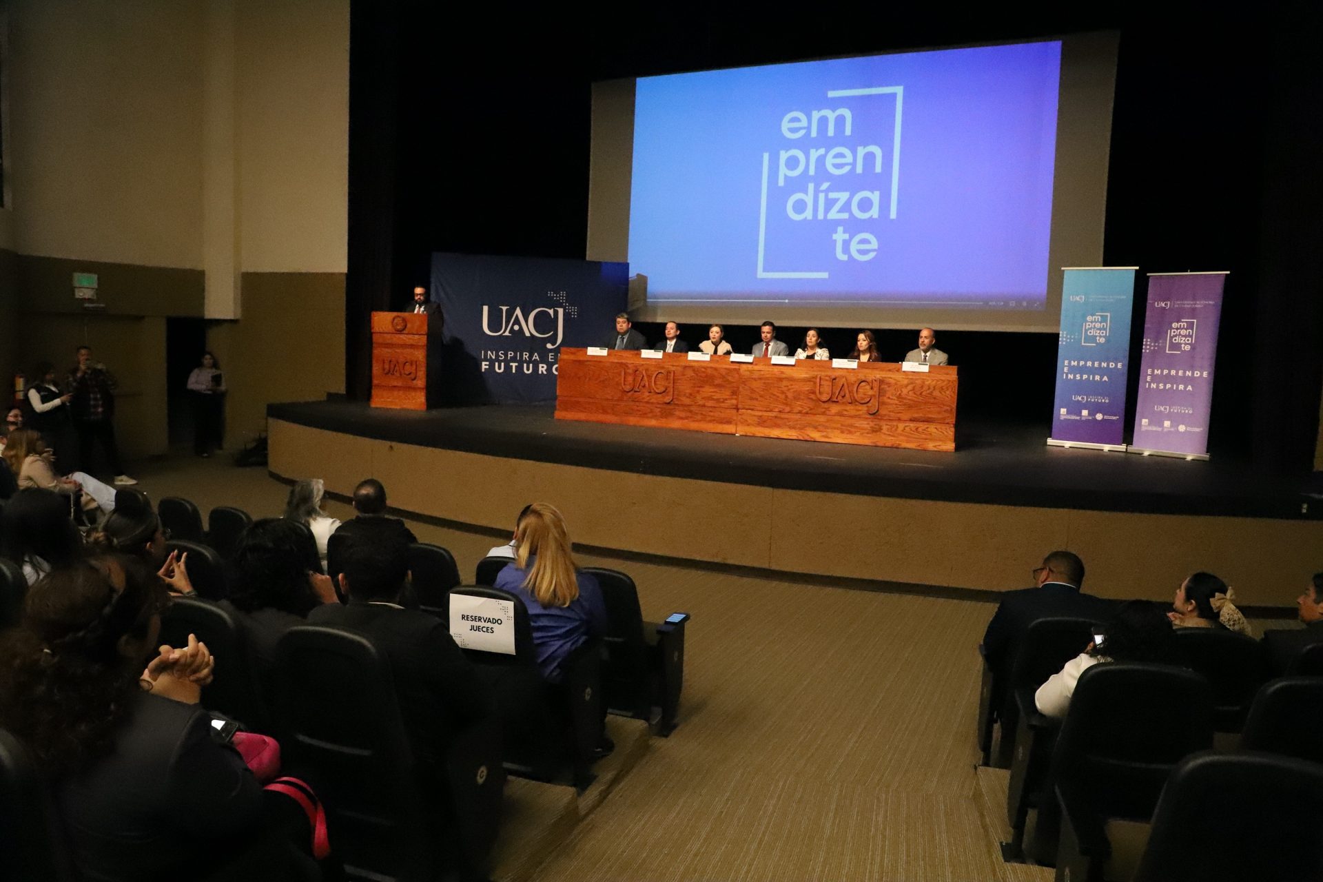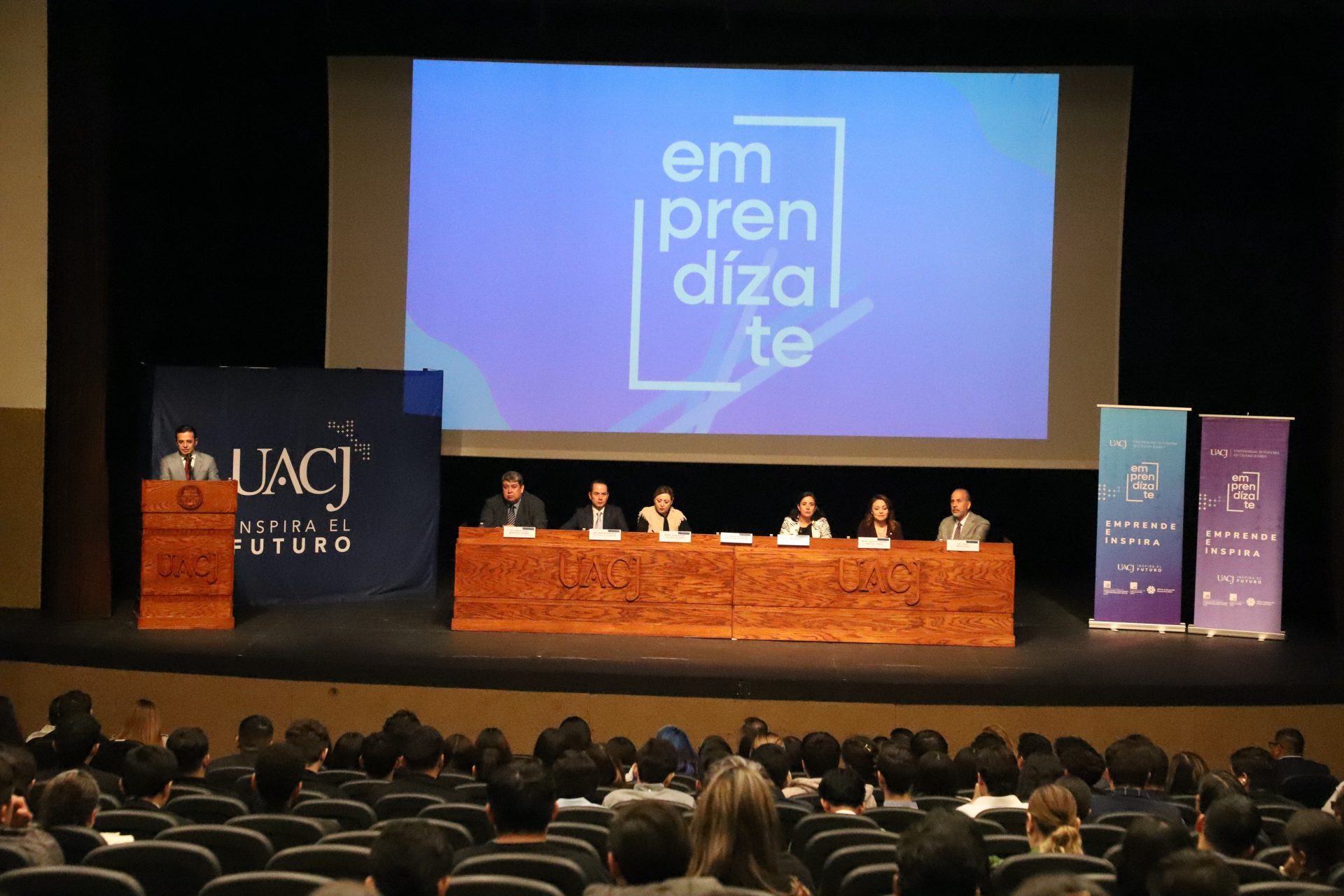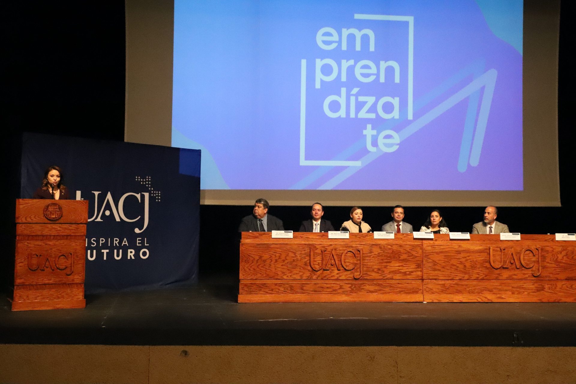 El teatro Gracia Pasquel del Centro Cultural Universitario fue el escenario el que se llevó a cabo el “Emprendízate”, organizado por la Dirección General de Vinculación, Intercambio y Responsabilidad social, la Dirección de Vinculación y la Oficina de Desarrollo Empresarial UACJ. Durante el evento la comunidad universitaria participó exponiendo proyectos de emprendimiento e intercambiando ideas.