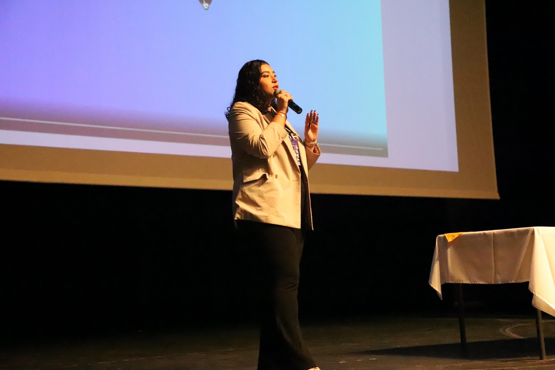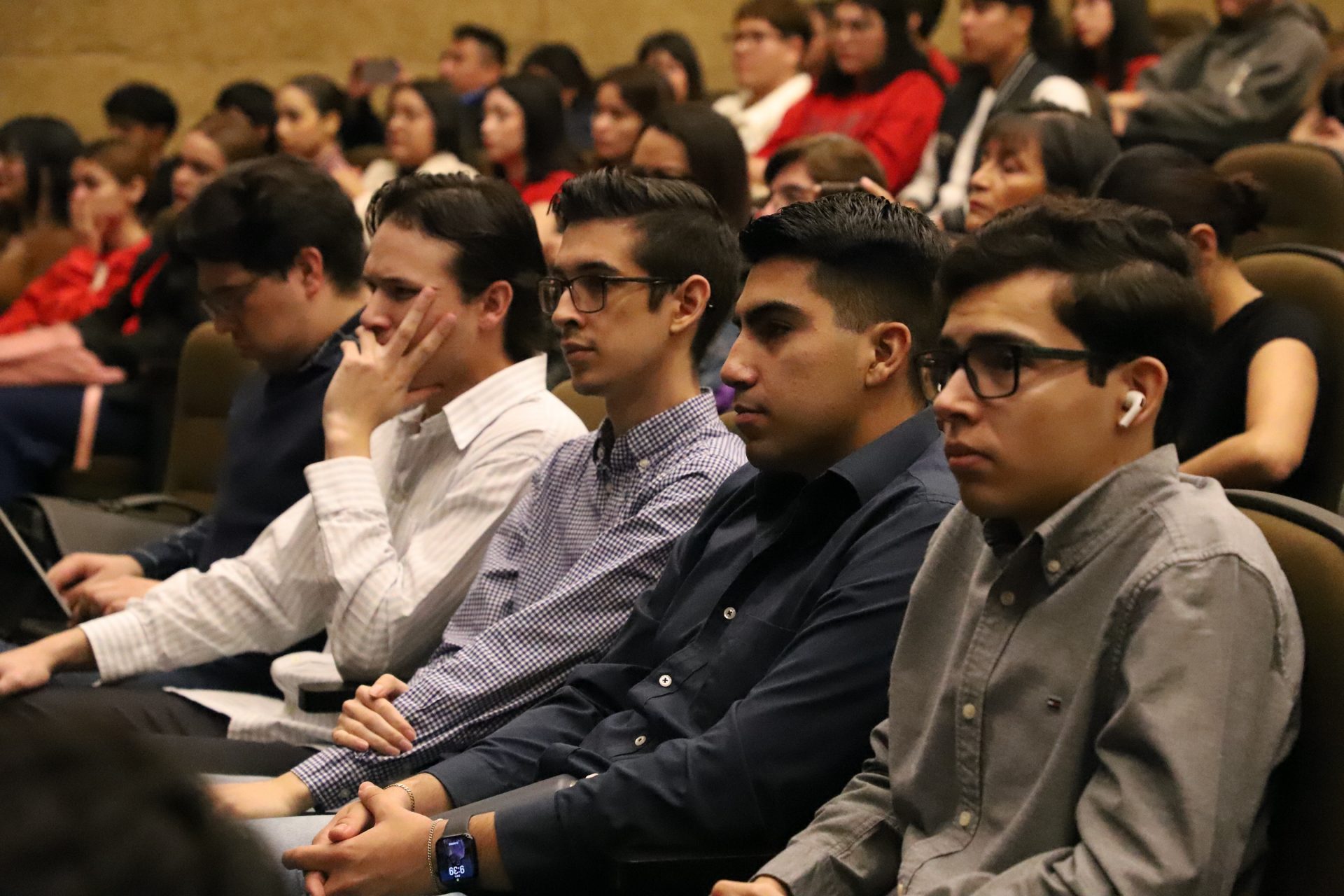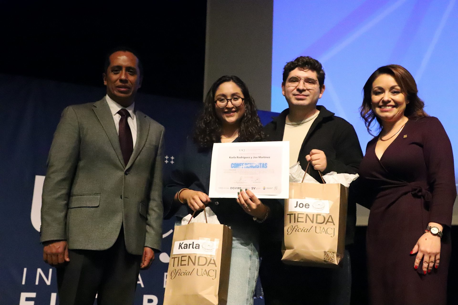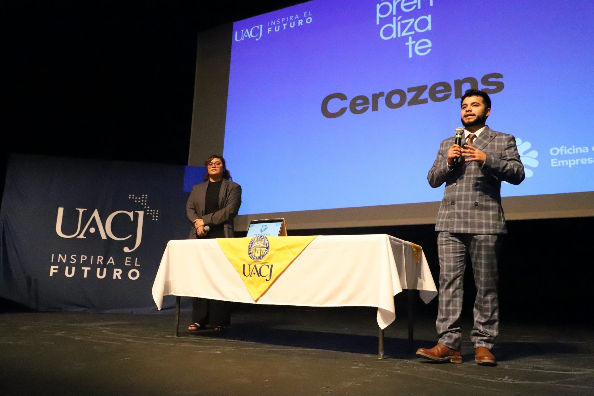 Durante la conferencia magistral de “Emprendízate”, Karla Edith Rodríguez Carreón, nutrióloga orgullosamente egresada de la Universidad Autónoma de Ciudad Juárez, y Joe Martínez González, compartieron su historia de emprendimiento con el propósito de inspirar a la comunidad universitaria