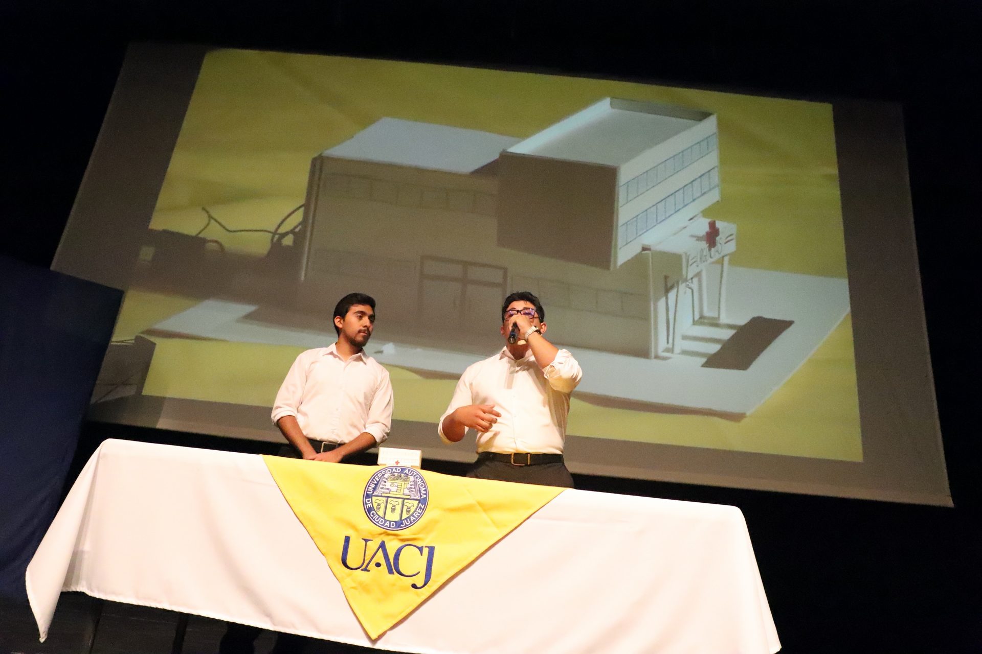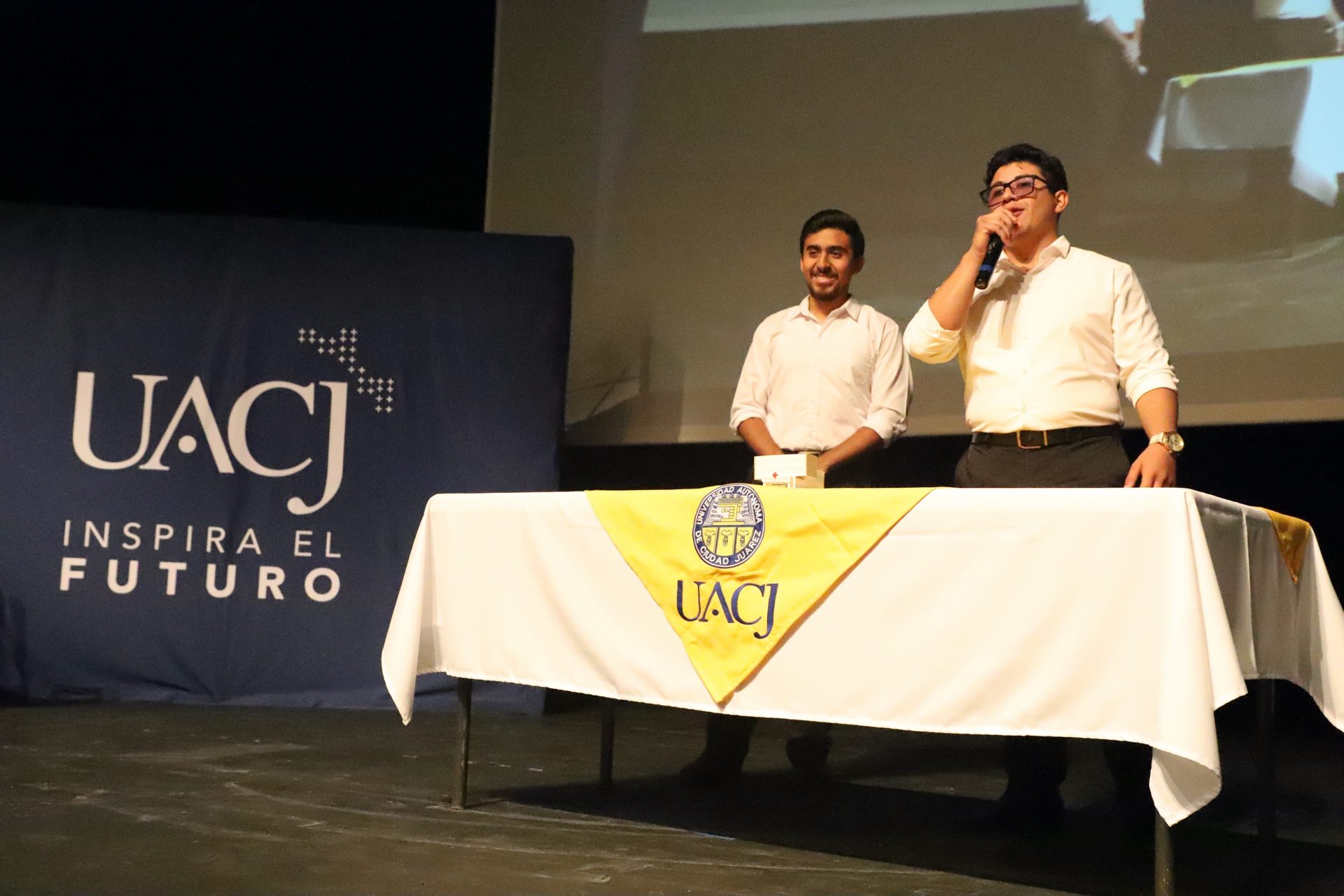 En el presídium se contó con la participación de la maestra Kathya Yazmín Sánchez Pérez, directora general de Vinculación, Intercambio y Responsabilidad Social; del doctor Fausto Enrique Aguirre Escárcega, director del Instituto de Arquitectura, Diseño y Arte.; de la maestra Tania Dolores Hernández García, directora del Instituto de Ciencias Biomédicas; del doctor Jesús Meza Vega, director del Instituto de Ciencias Sociales y Administración; del doctor Erwin Adán Martínez Gómez, director del Instituto de Ingeniería y Tecnología; de la maestra María Guadalupe Gaytán Aguirre, secretaria académica y del doctor Daniel Alberto Constandse Cortez, rector.