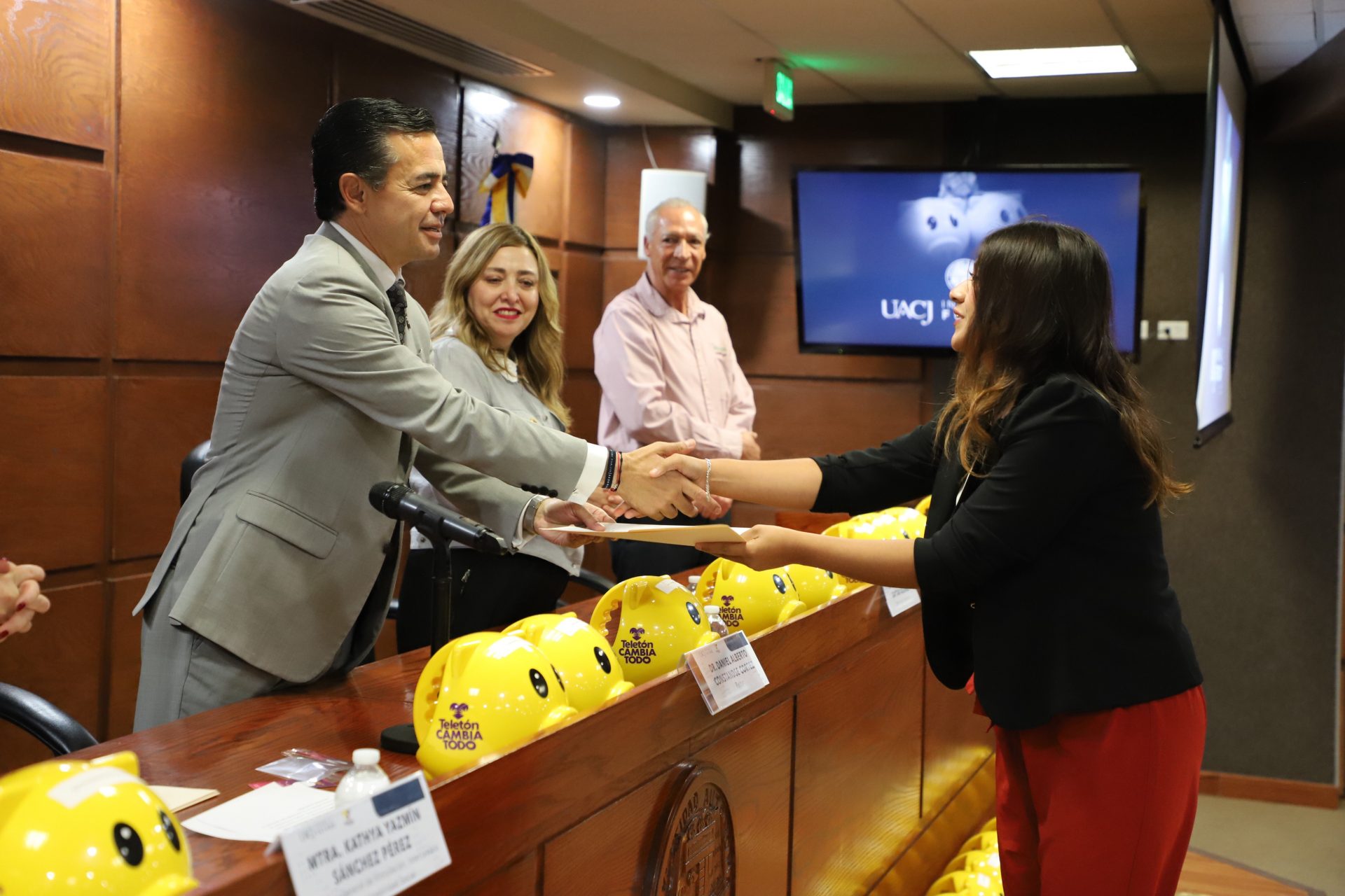En su mensaje de agradecimiento, el doctor Daniel Alberto Constandse Cortez, rector de la Universidad Autónoma de Ciudad Juárez, subrayó que fueron los estudiantes de esta casa de estudios los que hicieron posible este donativo de 100 alcancías Teletón. “Estos donativos son donativos de la comunidad universitaria. Hay que agradecer a la comunidad universitaria”.