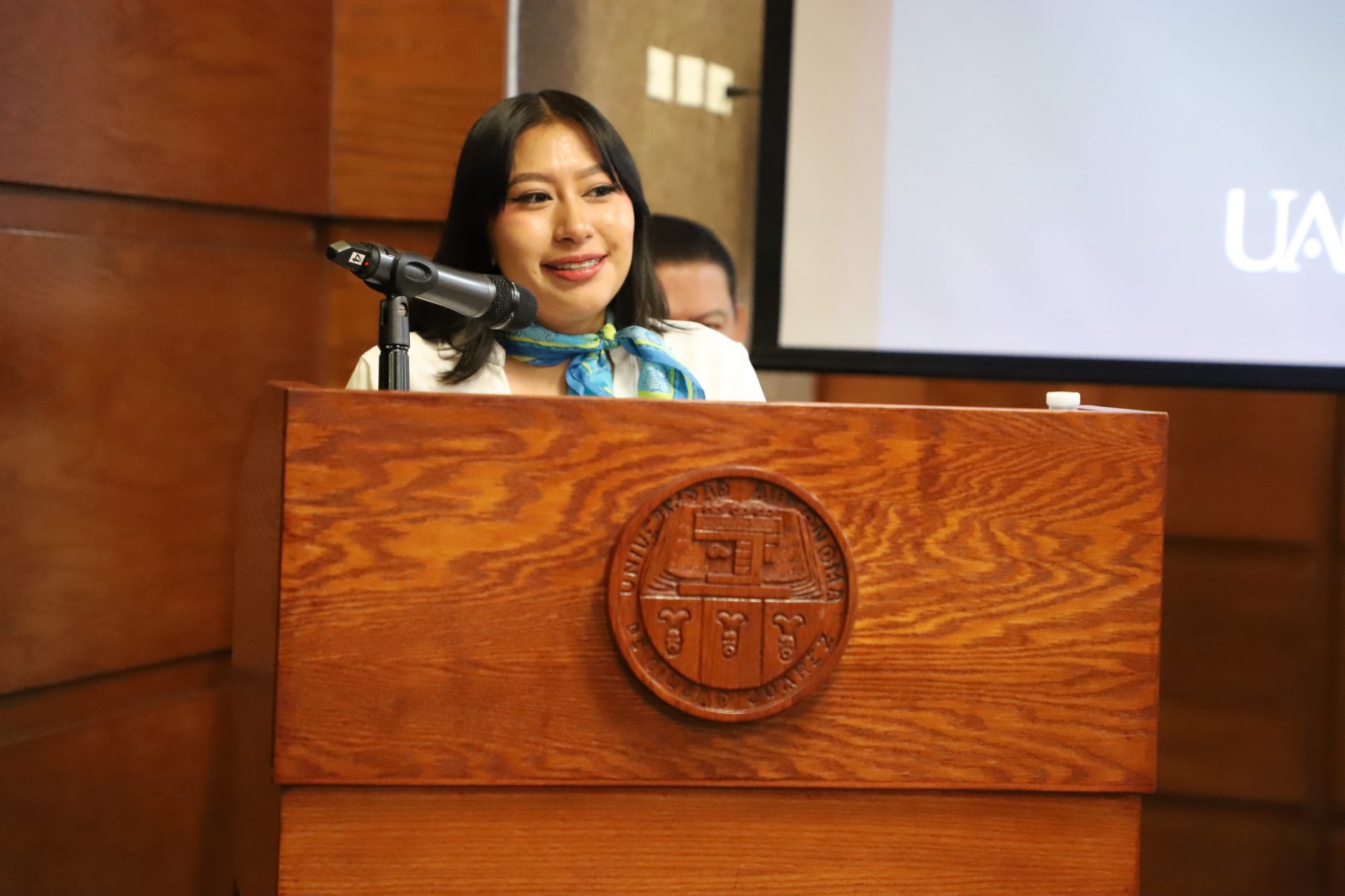 Con emoción por haber podido contribuir activamente a esta altruista causa, Griselda Manríquez, alumna de Seguridad y Políticas Públicas, dirigió un mensaje de agradecimiento en representación de los universitarios que participaron en esta campaña de recolección.