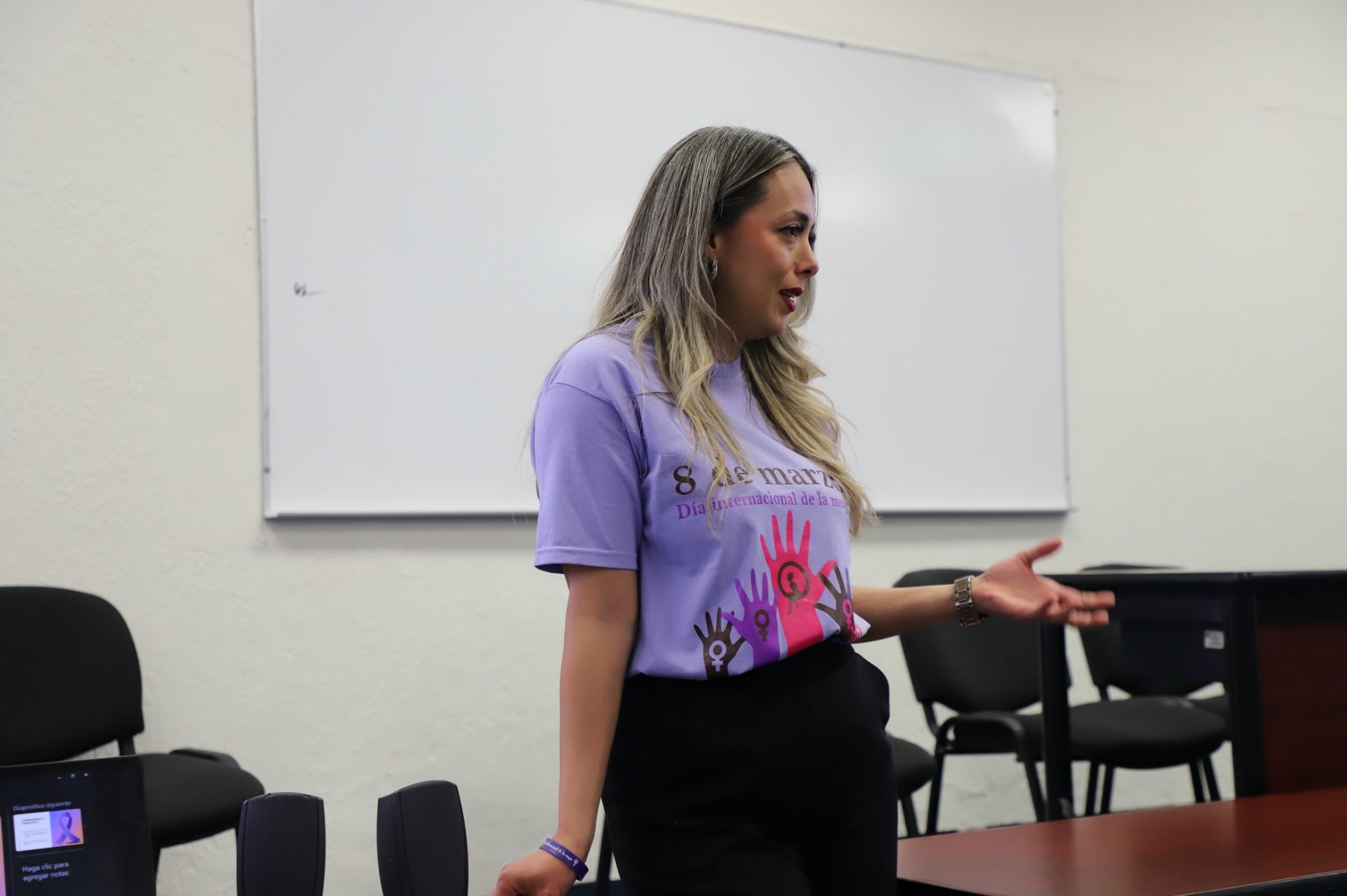 Invitó a las asistentes a aprender a autoconocerse para identificar las limitaciones y habilidades para gestionar un mejor entorno de acuerdo a las conductas y responsabilidades que cada mujer cumple en el hogar, trabajo o amigos.