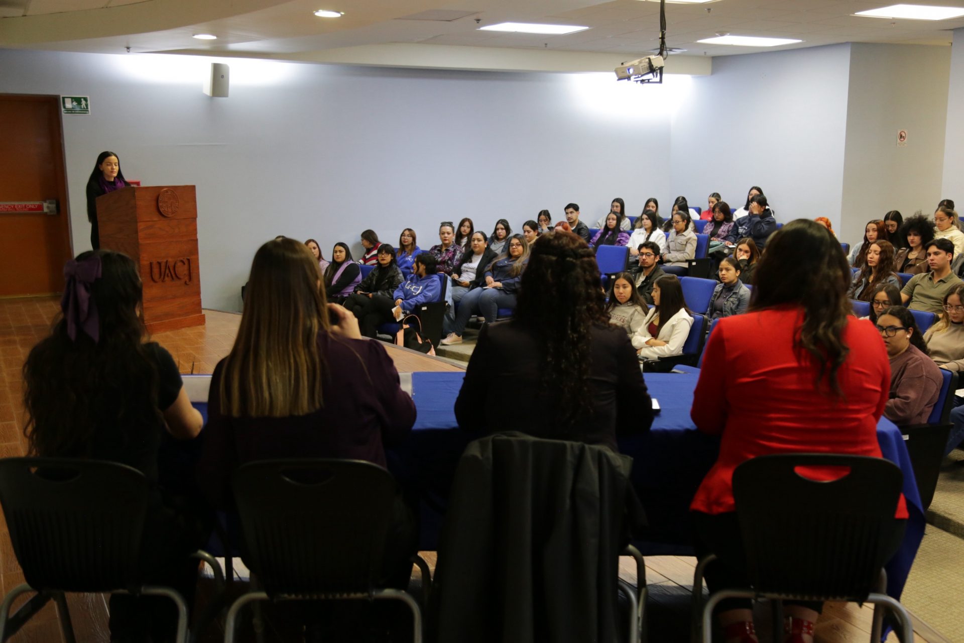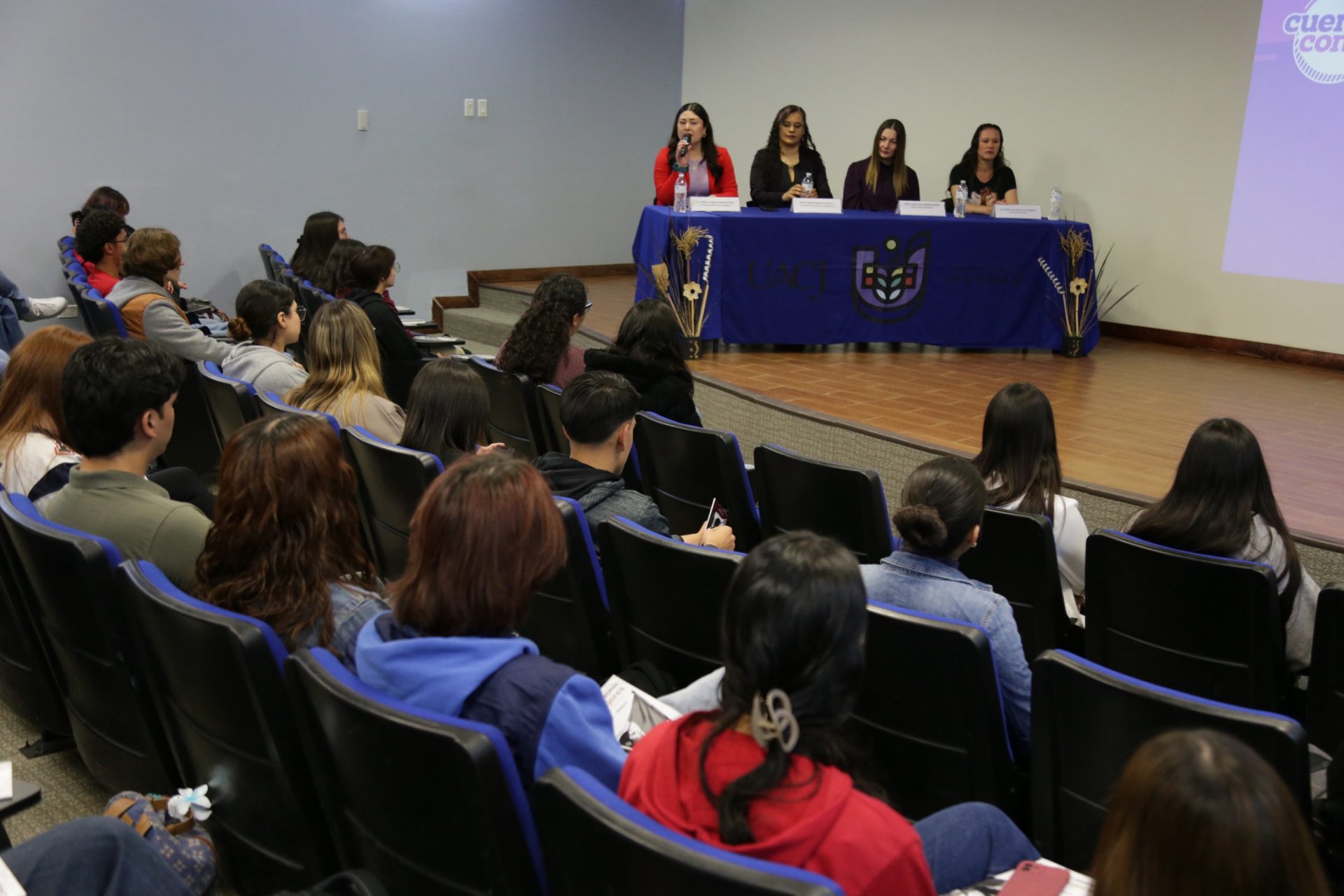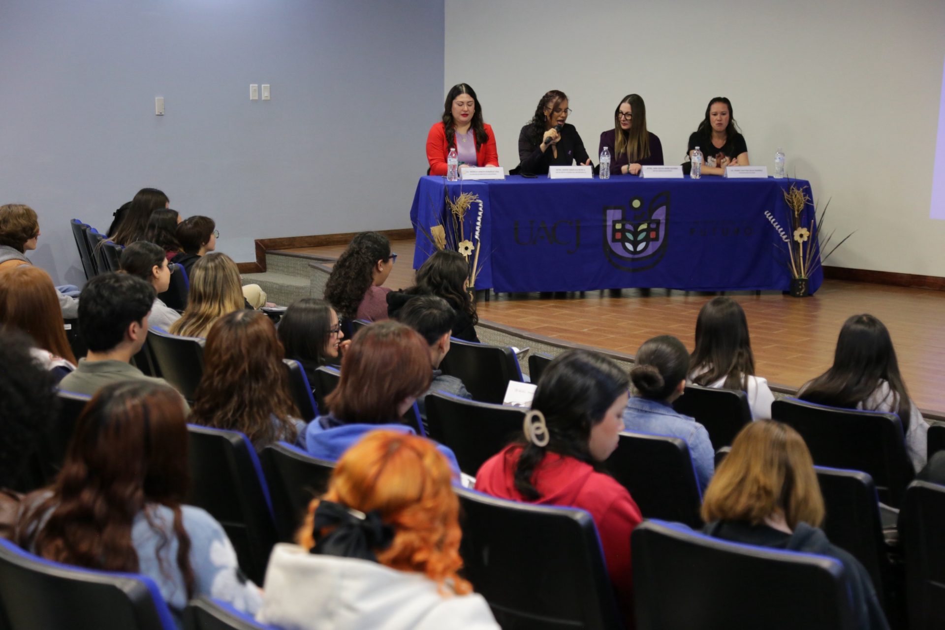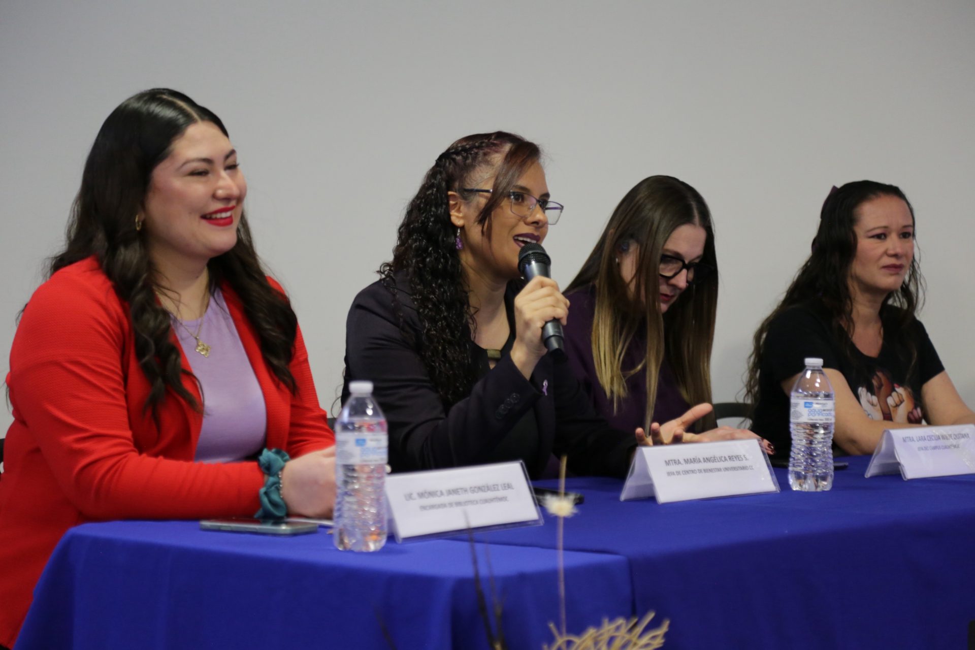 El acto inaugural contó con la participación de la maestra Lara Cecilia Wiebe Quintana, jefa del Campus Cuauhtémoc; la maestra María Angélica Reyes Sánchez, jefa del Centro de Bienestar Universitario(CBU); la licenciada Mónica Janeth González Leal; y la licenciada Vianney Cristina Salas Ramírez, coordinadora del Centro de Atención a la Violencia contra la Mujer (CAVIM) e integrante del Comité Municipal para la Prevención, Atención, Sanción y Erradicación de la Violencia.