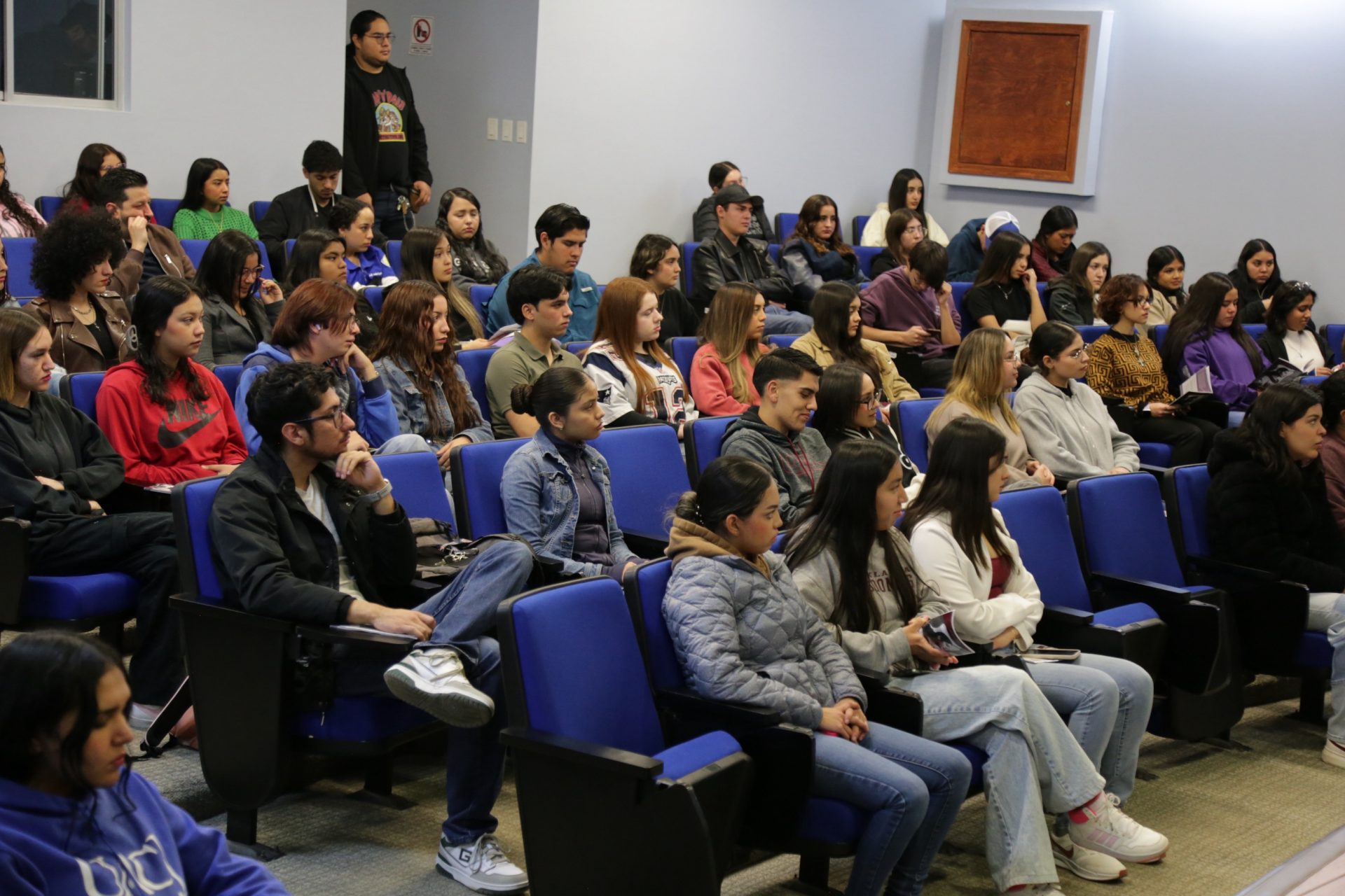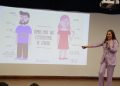 Durante su participación, invitaron a las y los asistentes a “ponerse los lentes de género”, una perspectiva que permite analizar las desigualdades, reconocer las violencias que enfrentan las mujeres y comprender la importancia de construir espacios más justos e igualitarios dentro y fuera de la universidad.