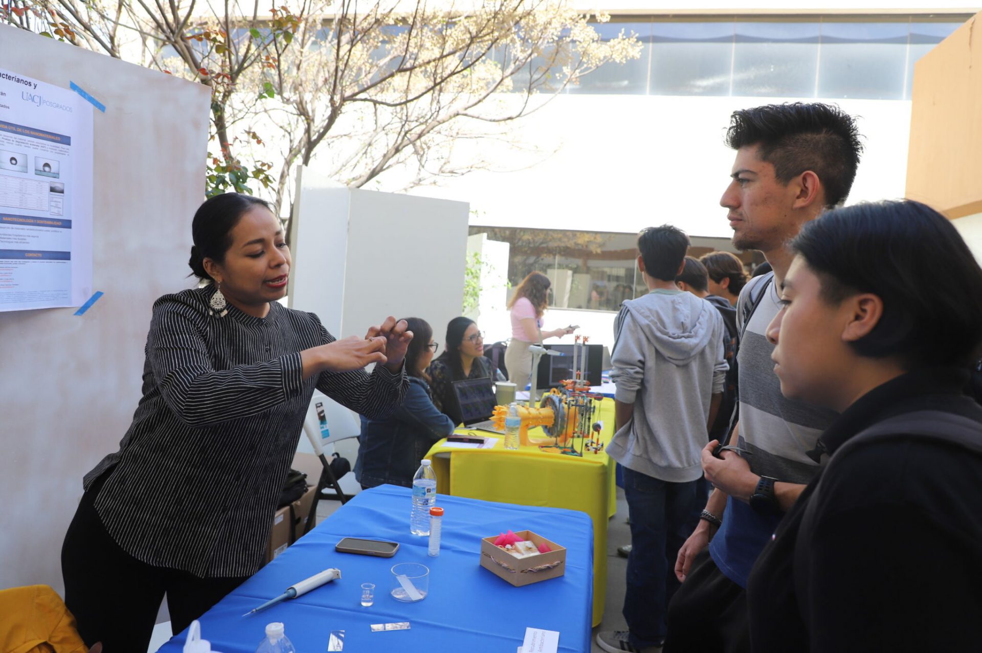 En un ejercicio de divulgación académica y reconocimiento al trabajo científico de las mujeres —a propósito de la semana conmemorativa por el Día Internacional de la Mujer—, investigadoras del Instituto de Ingeniería y Tecnología (IIT) de la Universidad Autónoma de Ciudad Juárez (UACJ) presentaron sus proyectos y resultados de investigación en una exhibición realizada este lunes 9 de marzo en la explanada del campus.