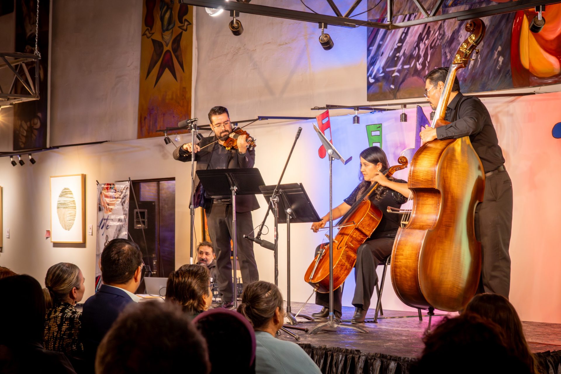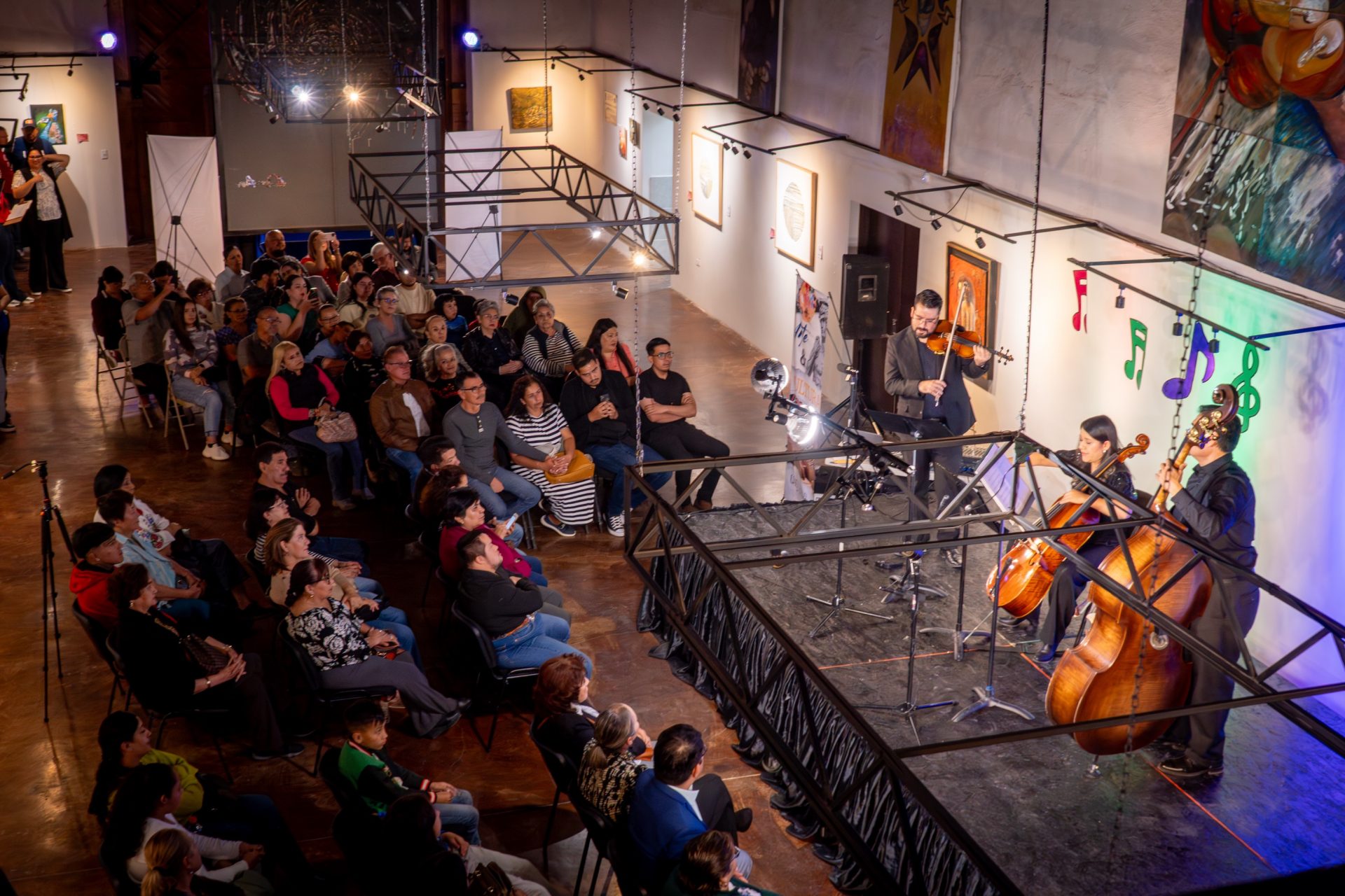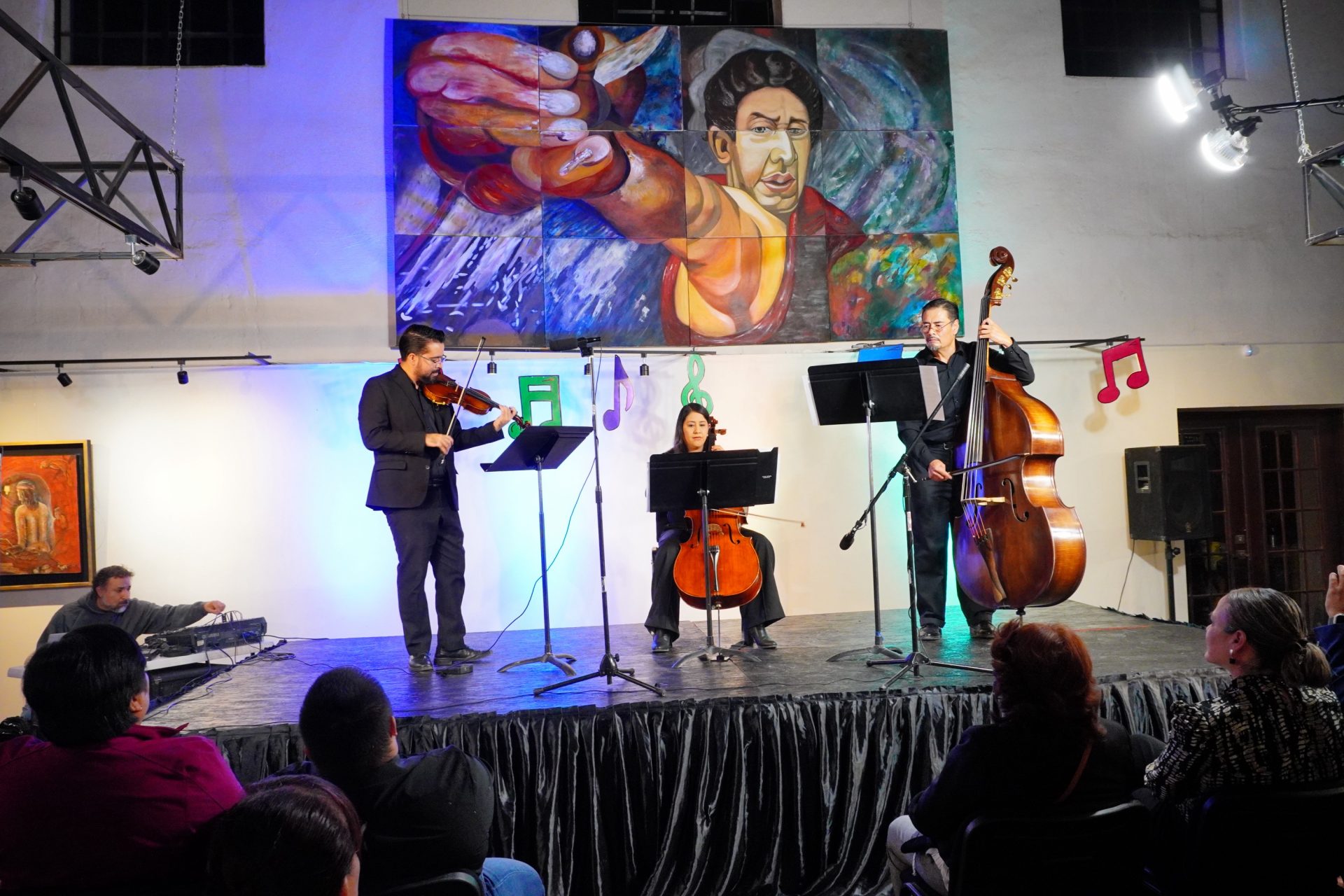 El público vibró con las extraordinarias notas interpretadas por Margarita Vargas Carrillo en el violonchelo, Roberto Jurado en el violín y José Ernesto Pérez a cargo del contrabajo. Con gran emoción, los asistentes brindaron una ovación de pie a los músicos cuando el concierto llegó a su fin.
