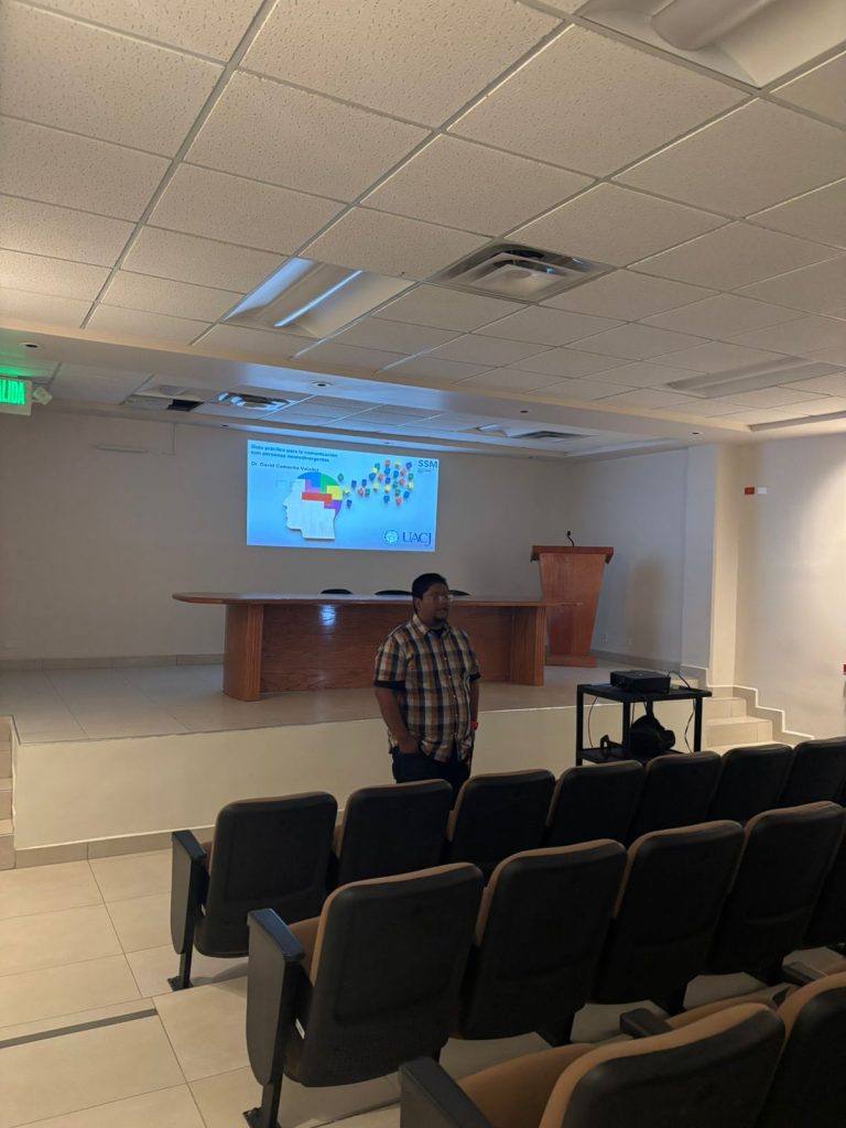 Como parte de las actividades de las Jornadas de Bienestar 2026, estudiantes de la Universidad Autónoma de Ciudad Juárez (UACJ) participaron en una charla sobre neurodivergencias impartida por el doctor David Camacho, docente del Departamento de Psicología y encargado de la Unidad de Estadística e Investigación en la Subdirección de Salud Mental de la Dirección General de Bienestar Universitario.