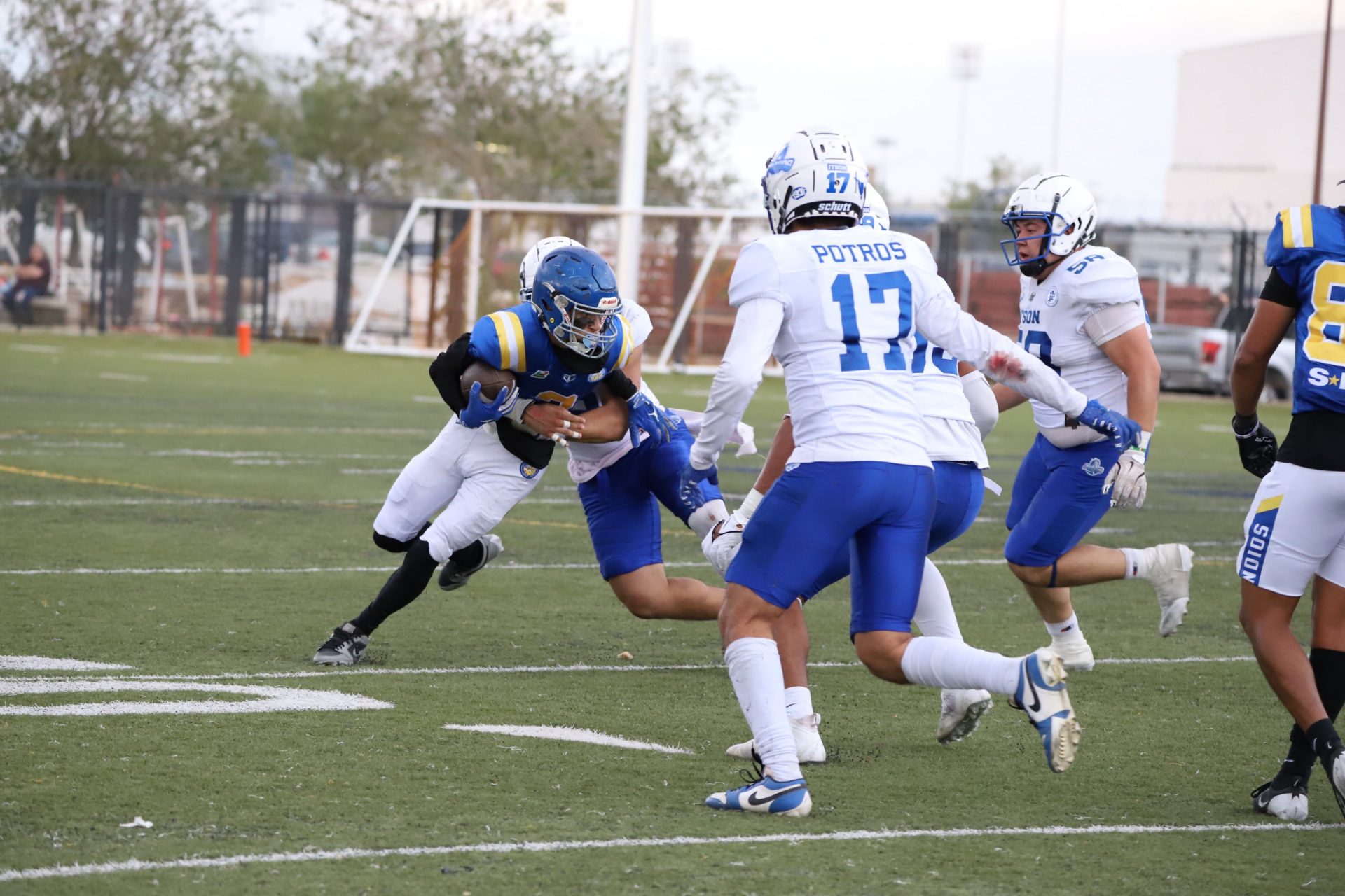 El último cuarto fue una demostración de madurez táctica y dominio físico por parte del conjunto fronterizo, que administró el reloj con inteligencia y mantuvo a raya cualquier intento de remontada visitante, ya que a los 5:21 el linebacker Diego Briceño Cuervo (#5) efectuó un safety en zona de anotación, dándoles a los de esta casa de estudios dos puntos a su favor.