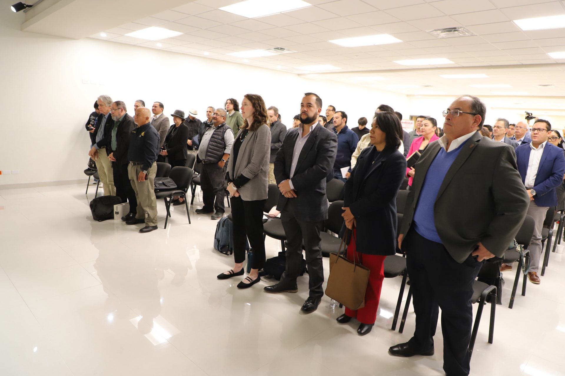 El presídium para la inauguración de este evento contó con la presencia de la maestra Guadalupe Gaytán Aguirre, secretaria Académica de la UACJ; la doctora Flor Rocío Ramírez Martínez, directora general de Investigación y Transferencia Tecnológica; la maestra Diana Páez, del Instituto William Davidson de la Universidad de Michigan; el licenciado Luciano Fernández Chávez, director de Vinculación de la Secretaría de Innovación y Desarrollo Económico de gobierno del estado; y el licenciado Orlando Daniel Aditya, director del Frente Norte.