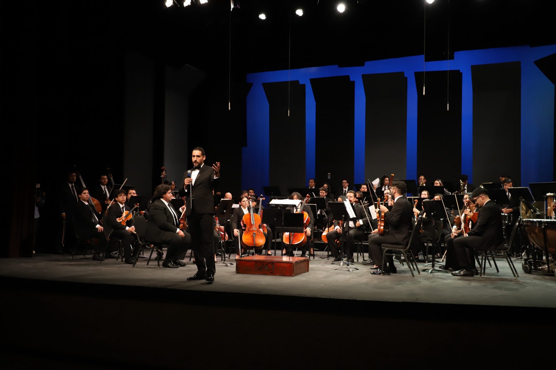 Previo al inicio, el rector de la UACJ, el doctor Daniel Alberto Constandse Cortez, dirigió unas palabras de agradecimiento: “Me da mucho gusto ver este recinto lleno para festejar nuestro 52 aniversario en una bonita tarde de octubre. Sean todos bienvenidos y disfruten de este bonito concierto”.