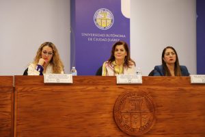 “Estamos en una actividad que forma parte de la Semana Conmemorativa por la Lucha Internacional de los Derechos de las Mujeres; para la UACJ es un espacio muy relevante porque también da cuenta de la vinculación interinstitucional que nuestra institución sostiene con diversas entidades, tanto de gobierno como de la sociedad civil, y es muy importante reconocer los lazos que hemos ido tejiendo”.