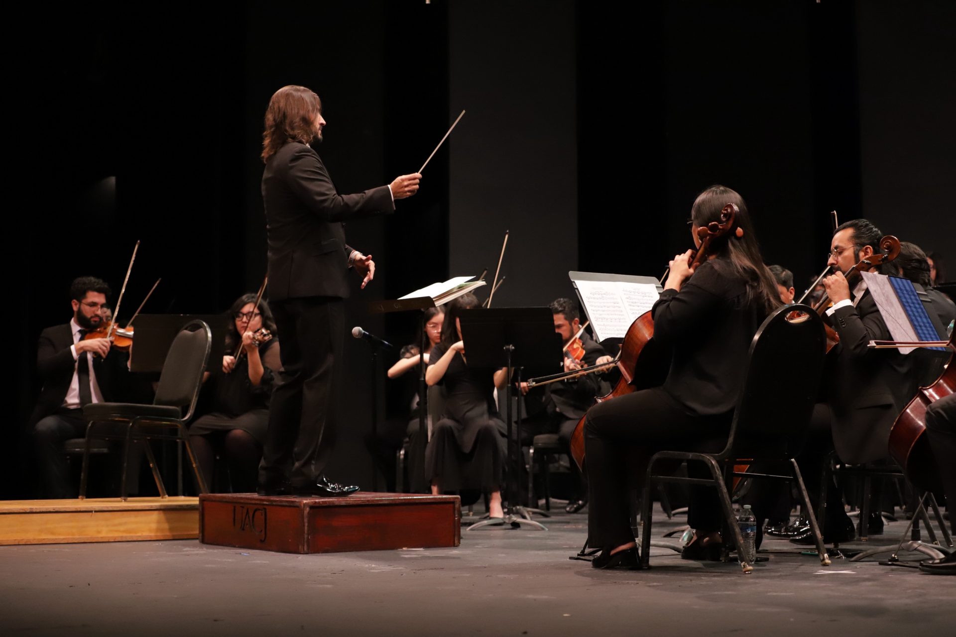 La agrupación orquestal juvenil de la UACJ está conformada por 62 músicos fronterizos, se encuentra vigente desde el 2005, esta presentación y la de mañana 16 de noviembre a las 12:00 horas, representan la culminación de los festejos de “20 años sembrando en el desierto”.
