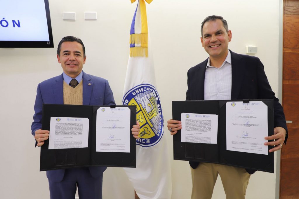 La Universidad Autónoma de Ciudad Juárez (UACJ) y la Secretaría de Seguridad Pública del Estado de Chihuahua (SSPE) formalizaron este viernes 16 de enero una serie de convenios de colaboración orientados a fortalecer la educación como herramienta de prevención, reinserción social y justicia, mediante el otorgamiento de becas a policías, sus familias y adolescentes egresados del Centro de Reinserción Social para Adolescentes Infractores (CERSAI).