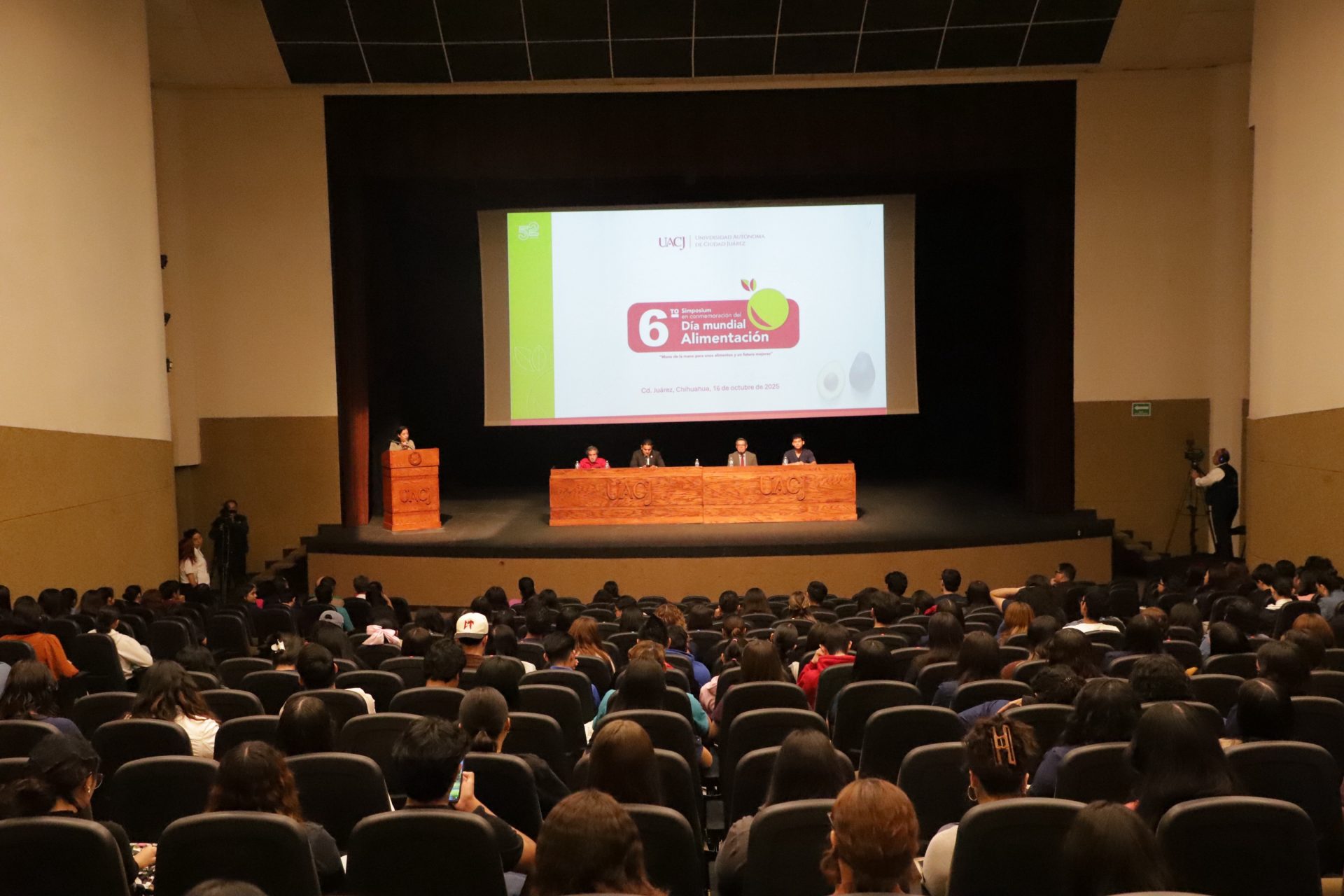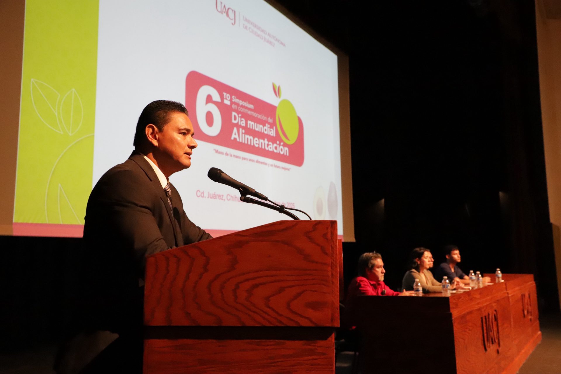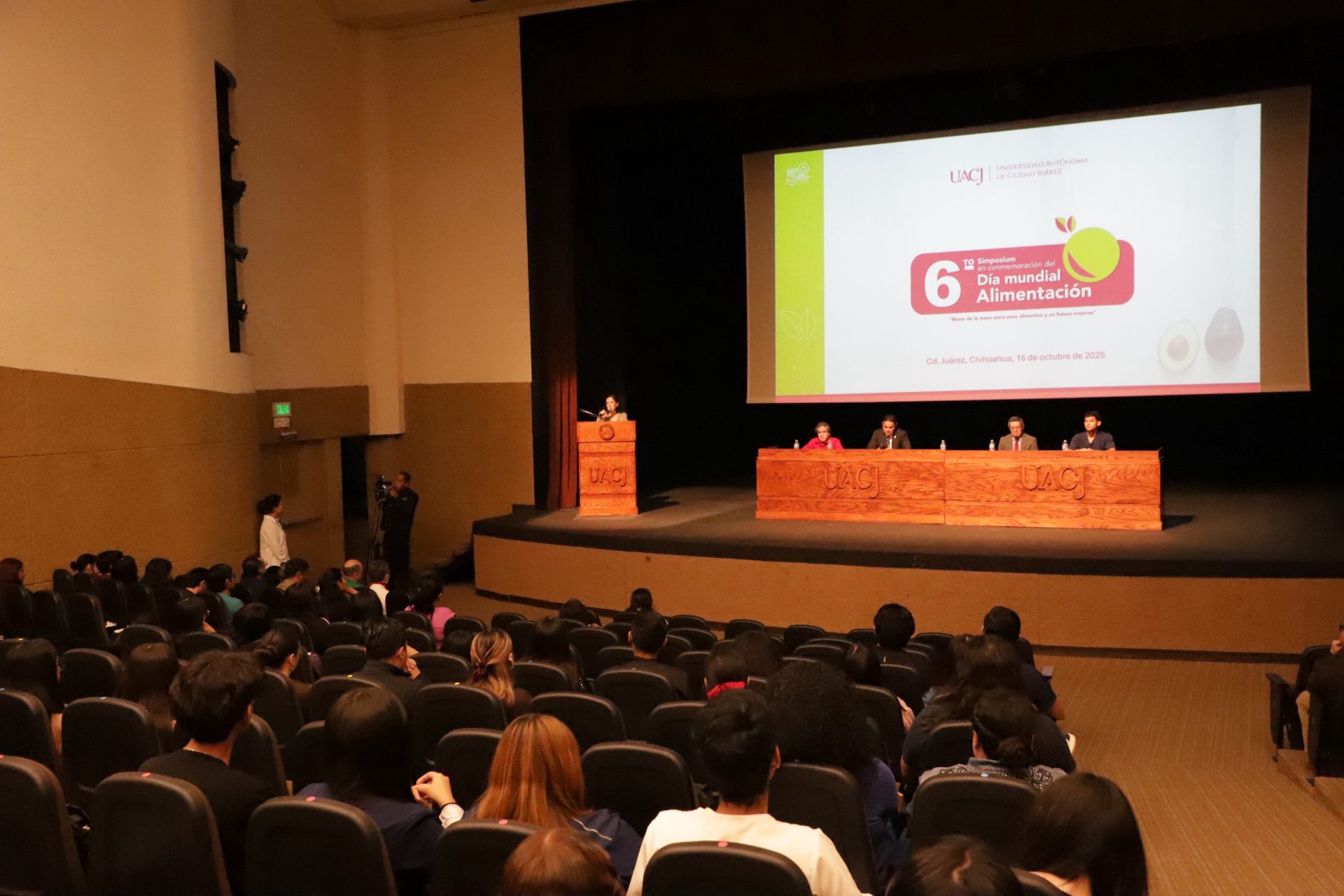 Fomentando una cultura alimentaria responsable y fortaleciendo la formación profesional en el ámbito de la nutrición, la Universidad Autónoma de Ciudad Juárez (UACJ), a través del Instituto de Ciencias Biomédicas (ICB), llevó a cabo este 16 de octubre la inauguración del 6º Simposium en conmemoración del Día Mundial de la Alimentación, en el teatro Gracia Pasquel del Centro Cultural Universitario (CCU).