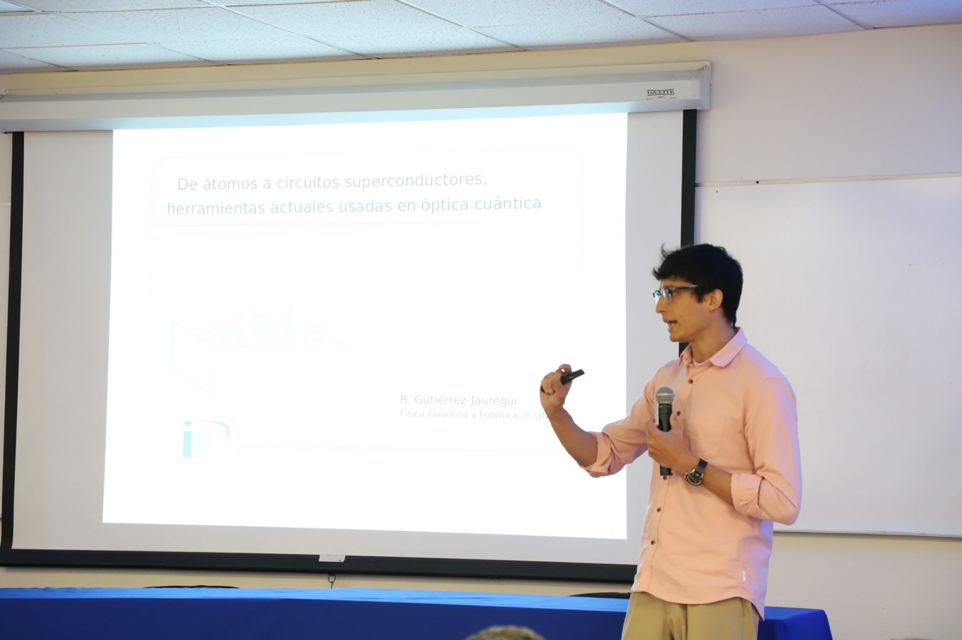 En este encuentro se abordaron diversos conceptos, tales como luz y energía, saltos cuánticos, teoría cuántica, fiebre del oro cuántica, entre otros. Sin embargo, la idea central fue compartir que “las tecnologías modernas nos permiten atrapar, medir y manipular sistemas cuánticos individuales. ¿Y qué nos pueden decir las herramientas de este mundo cuántico?, sobre circuitos superconductores, perspectivas y circuitos superconductores acopiados a cantidades”, expresó el Gutiérrez Jáuregui.