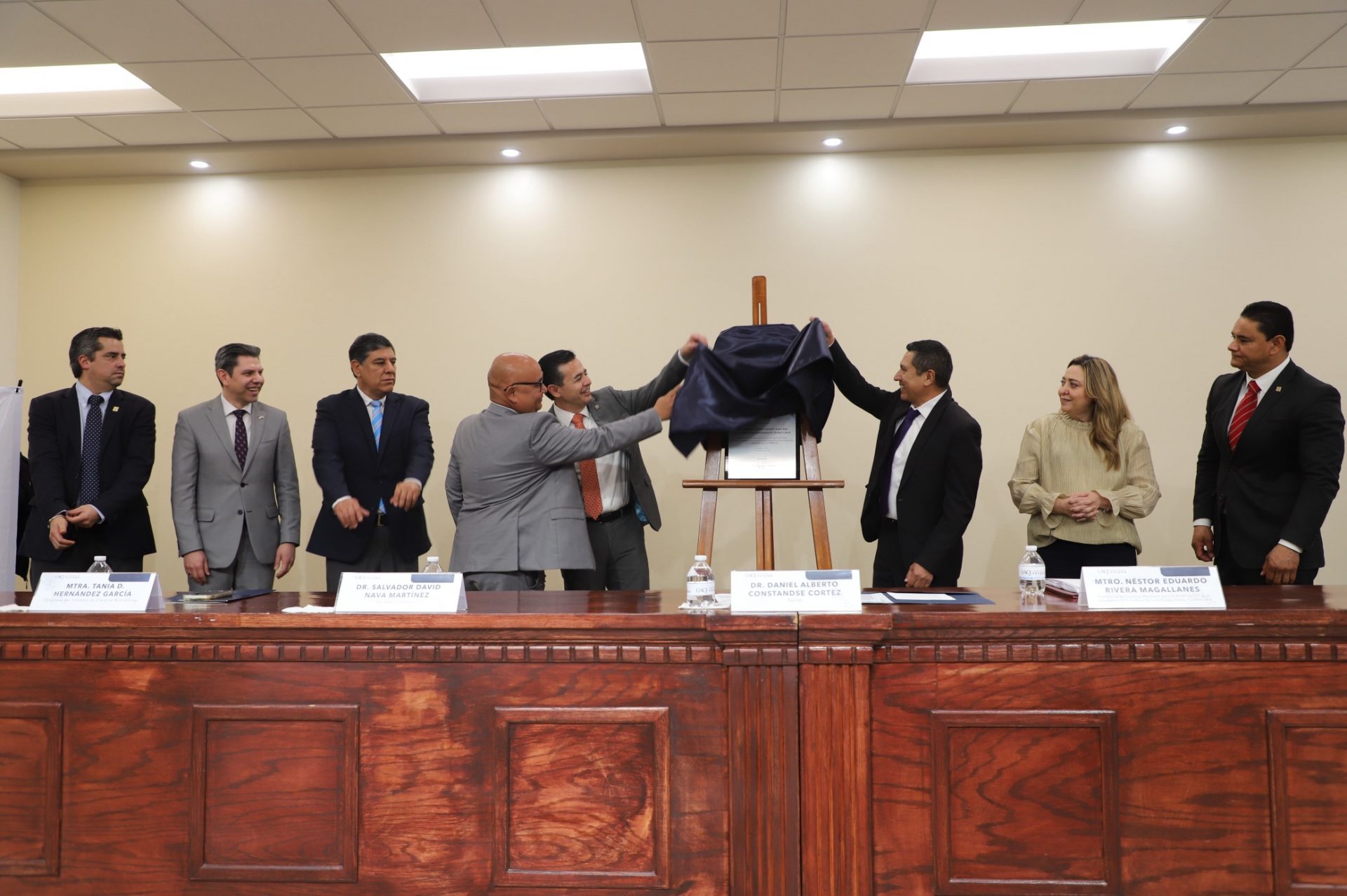 Subsiguientemente, se dio paso al momento cumbre de la jornada: la develación de la placa, realizada por el rector acompañado de las autoridades presentes y los coordinadores del programa, doctor José Trinidad Quezada Chacón (ICB) y el doctor Jaime Guereca Arvizu (Campus Ciudad Universitaria).