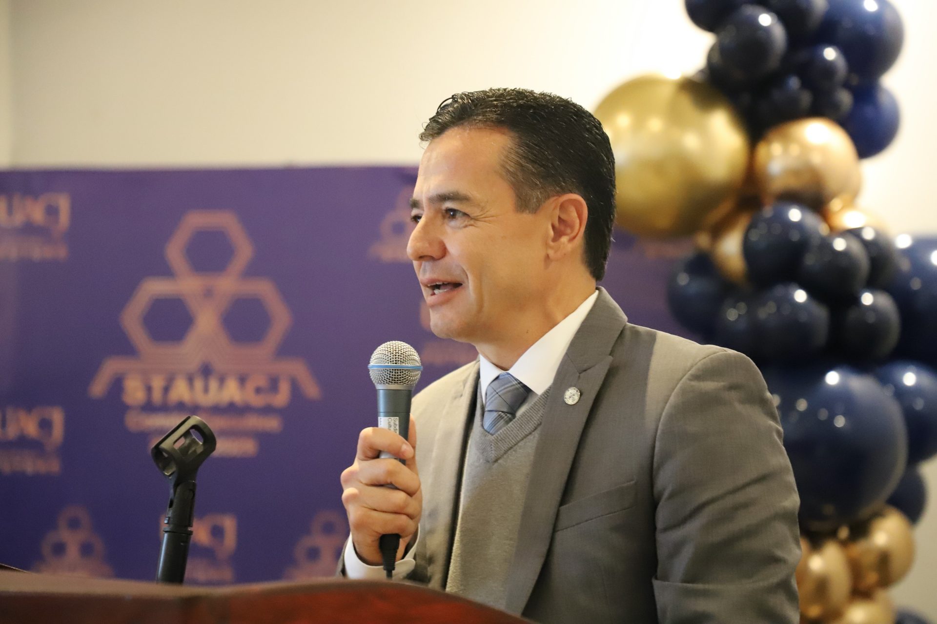 Como parte de los discursos de felicitación, el licenciado Gilberto Esparza Ambriz, secretario general del STAUACJ, expresó la importancia de la dedicación del personal de esta casa de estudios: