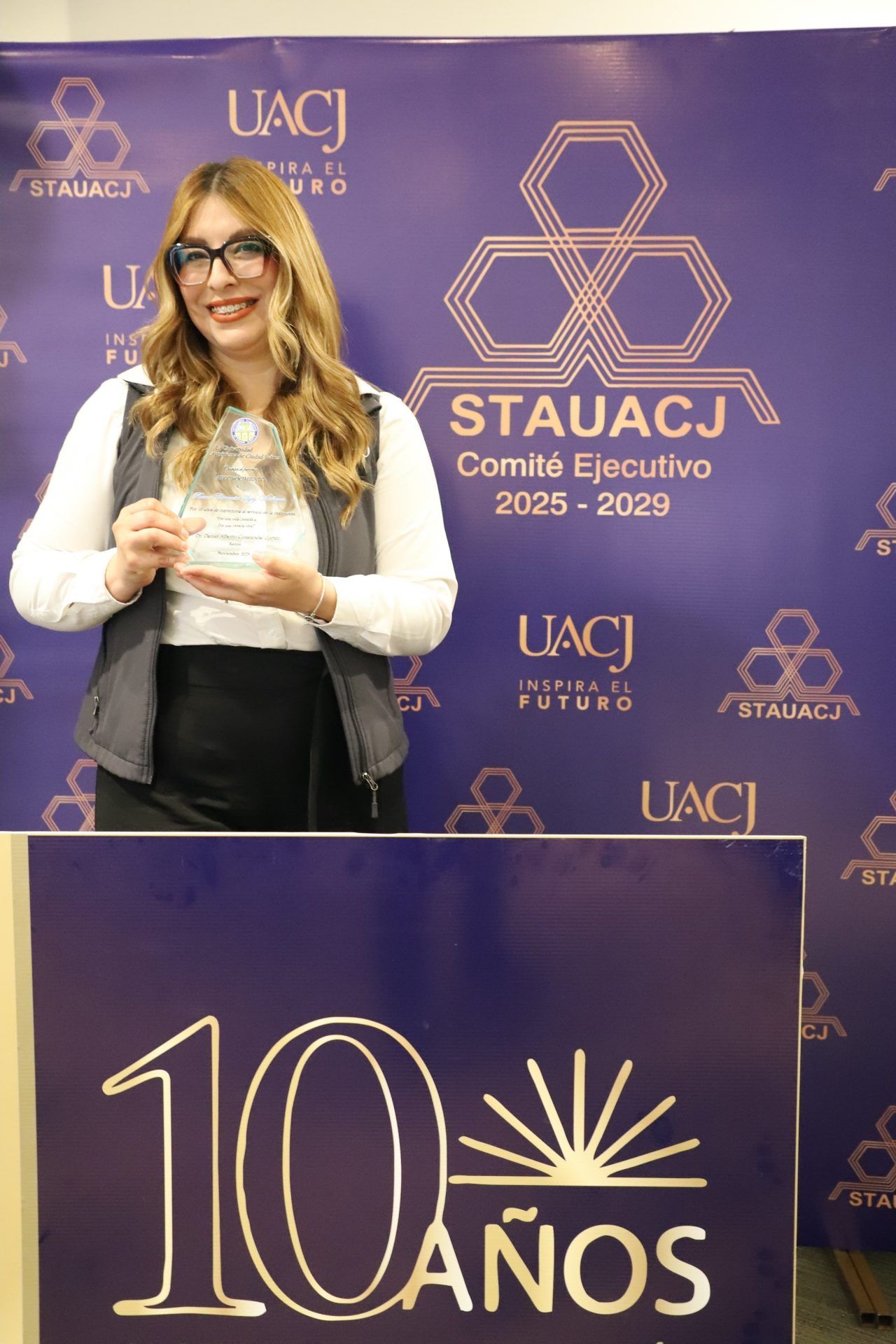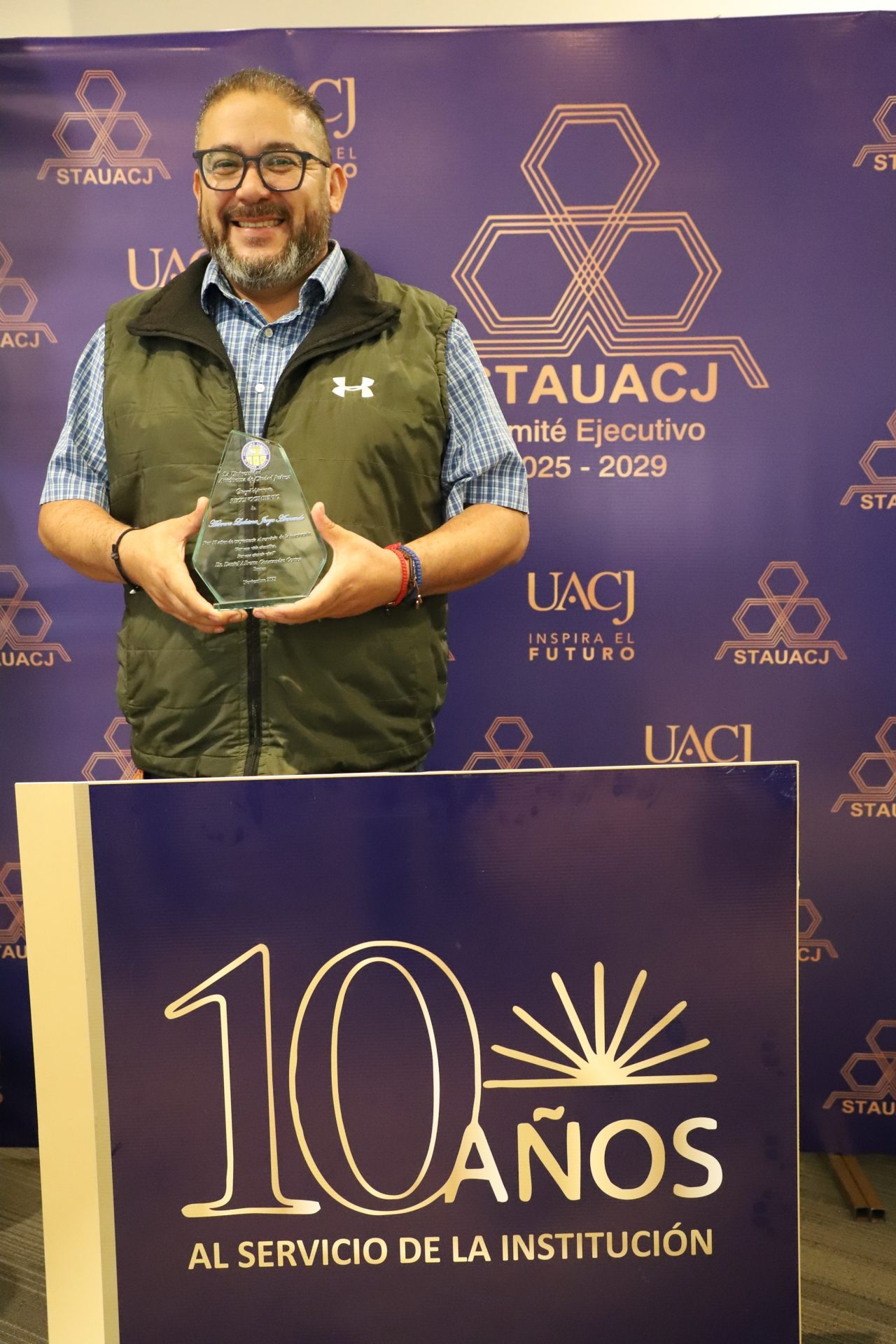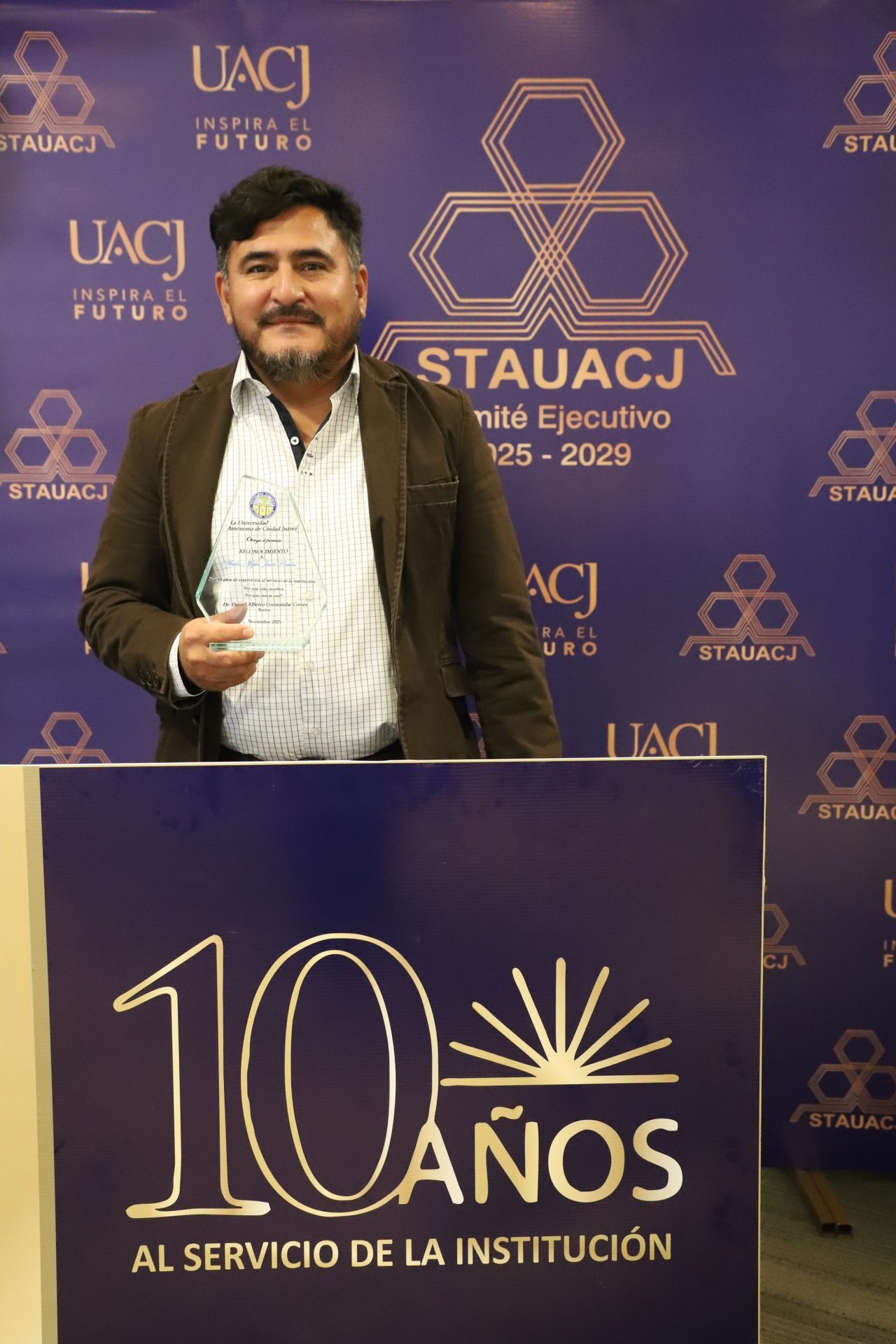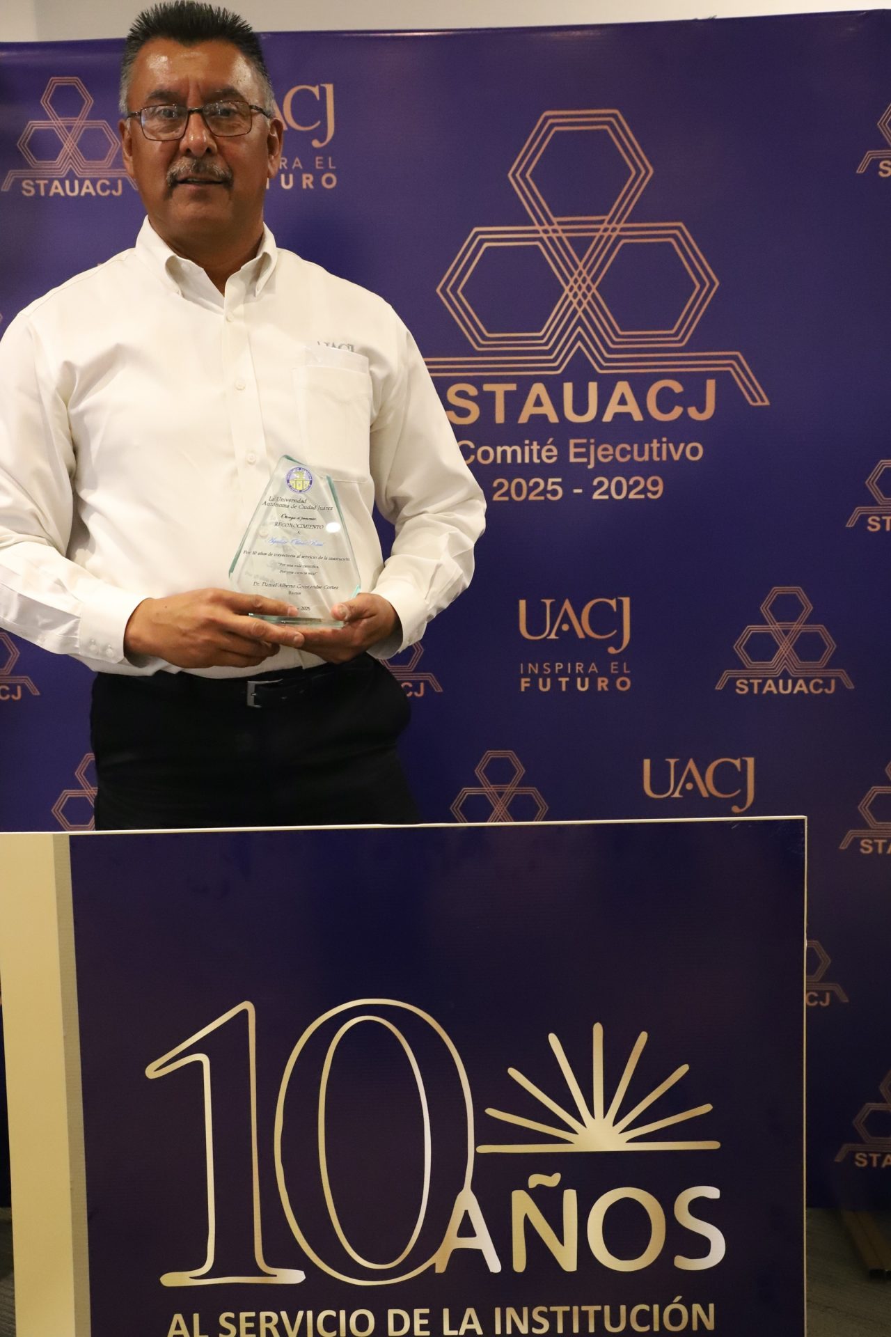 “A todos nuestro sincero agradecimiento. Se celebran 10 años de trayectoria laboral de los trabajadores. No solo se reconoce la entrega, sino también la disciplina y la vocación al servicio. Han sido parte de la construcción para que la universidad avance y crezca. Su labor es discreta, pero tiene un impacto duradero”.