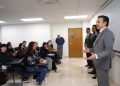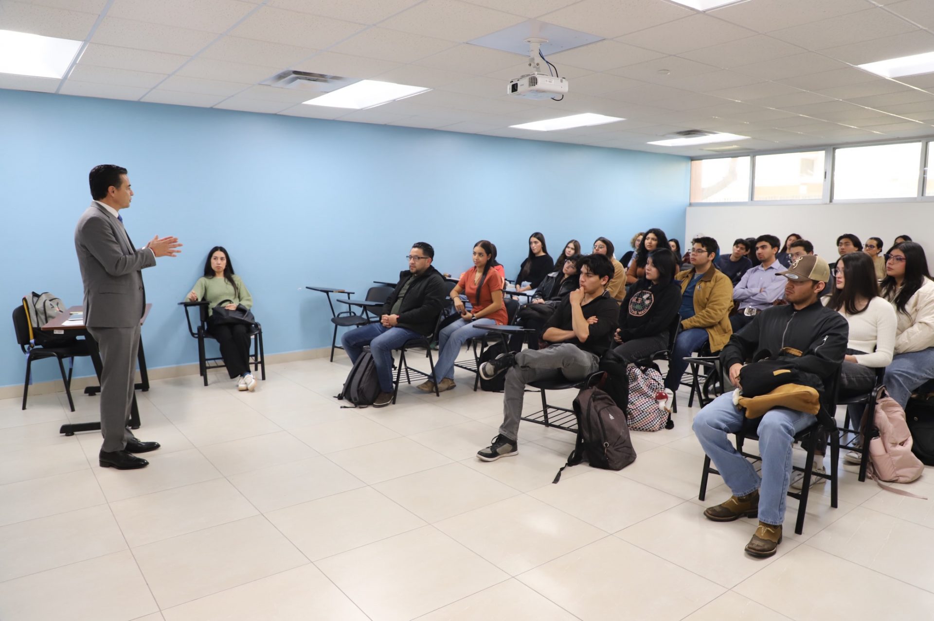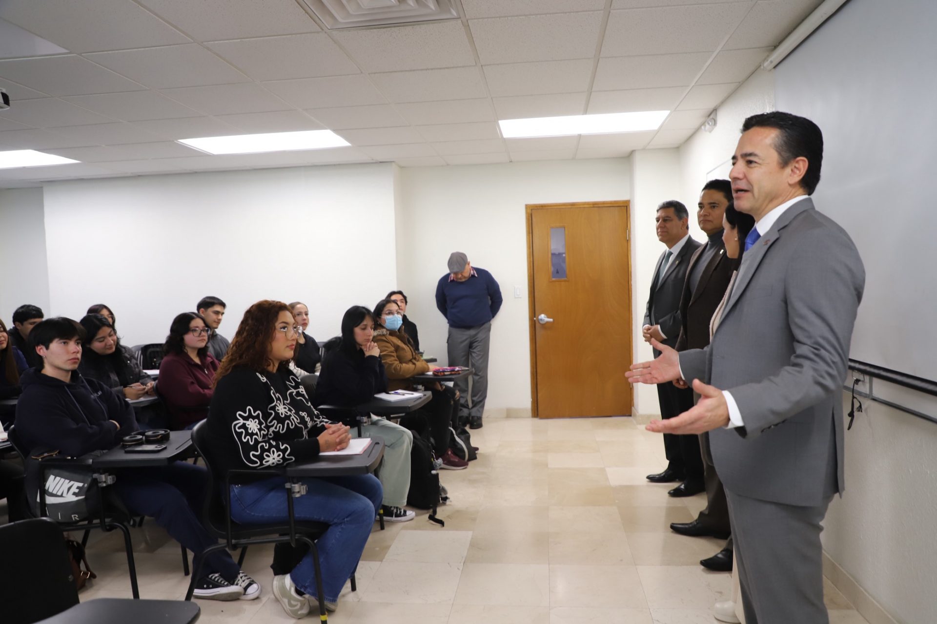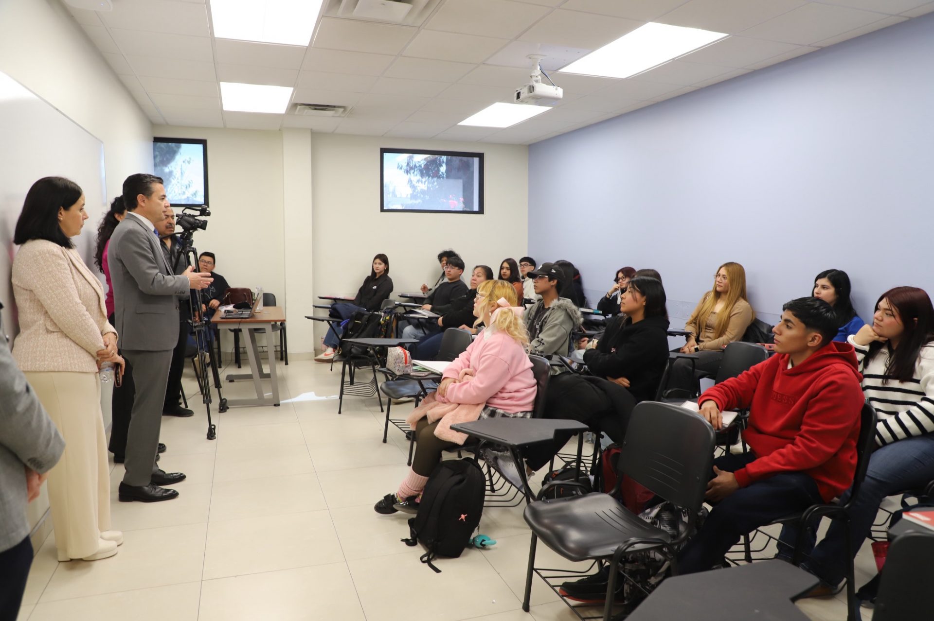 La apertura de la visita fue un encuentro frente a un grupo de estudiantes de primer semestre de la Licenciatura en Médico Veterinario Zootecnista, situados en un aula del edificio D, cuyos rostros reflejaban el nerviosismo de una nueva etapa en su vida. Allí, en un auditorio improvisado, entre bancos y un pizarrón, el tono del rector se volvió más íntimo.