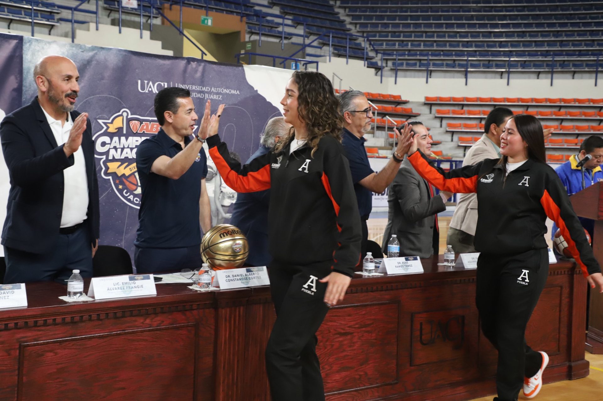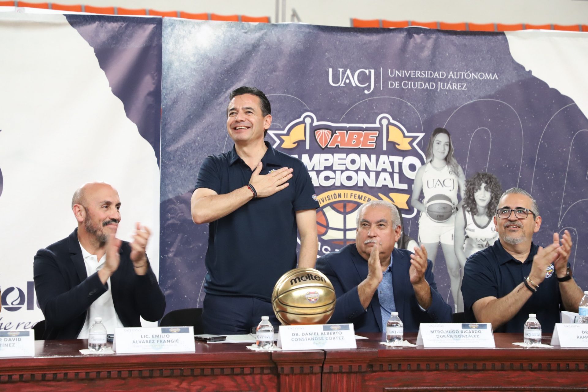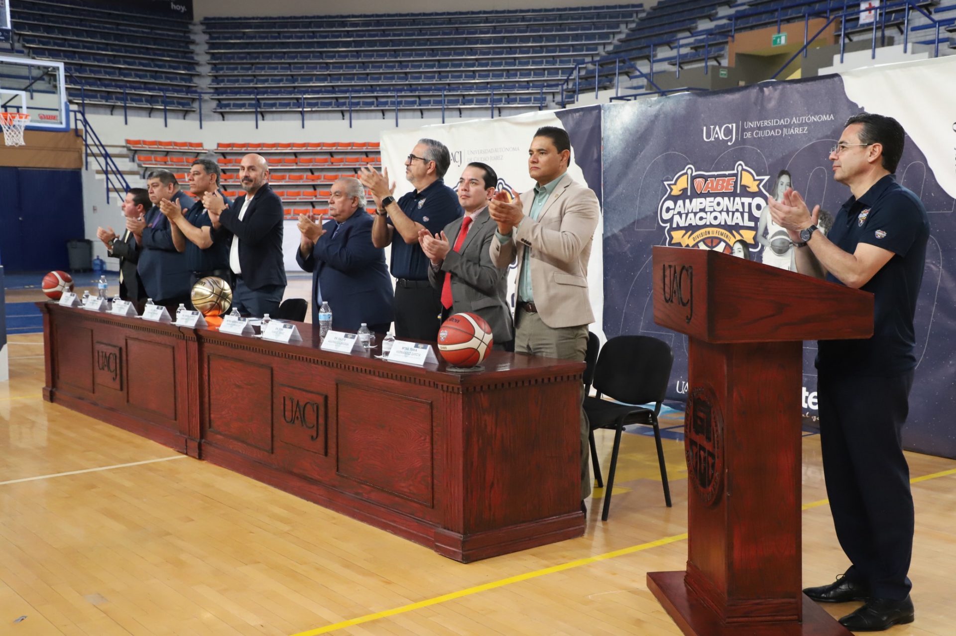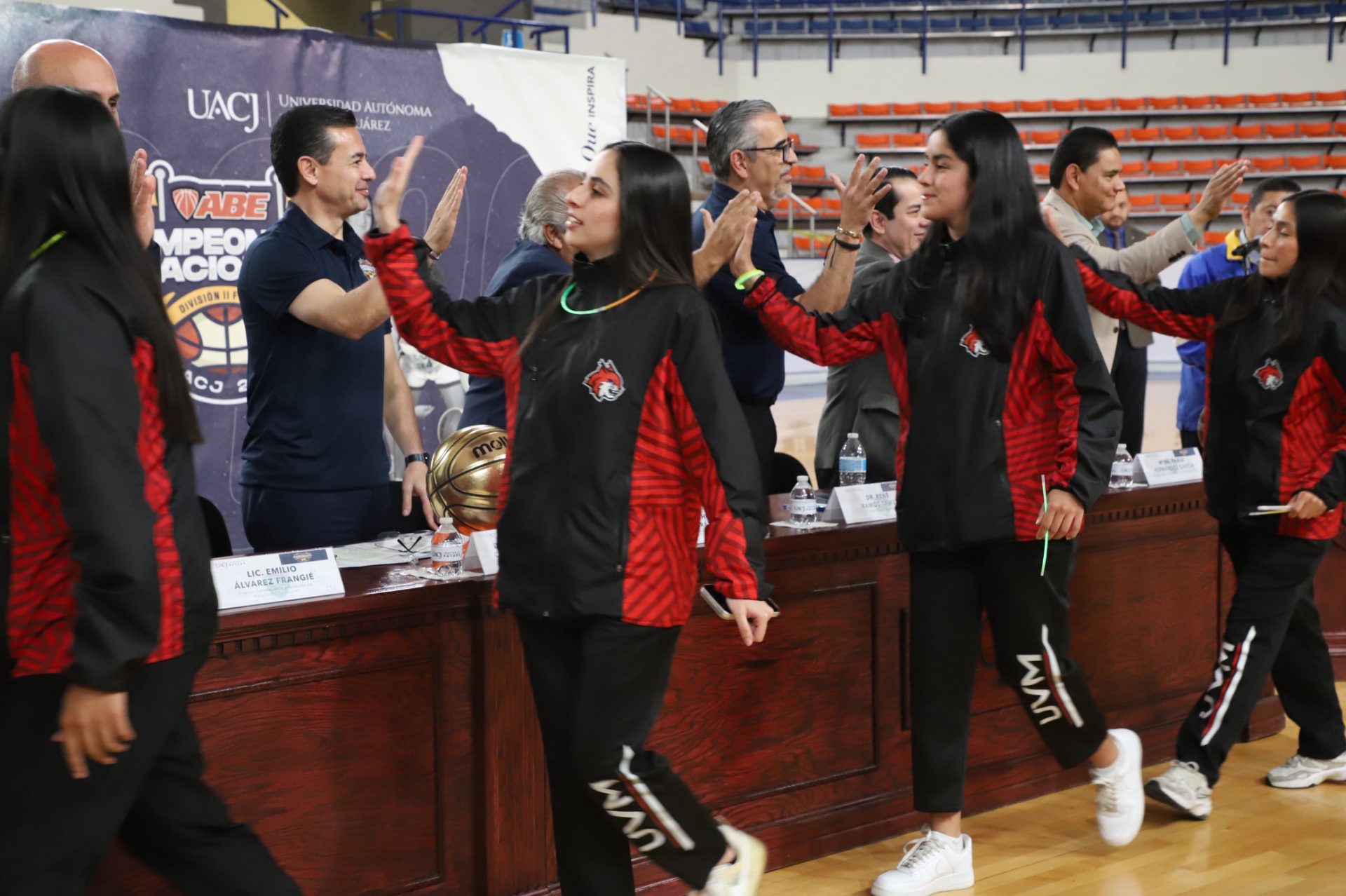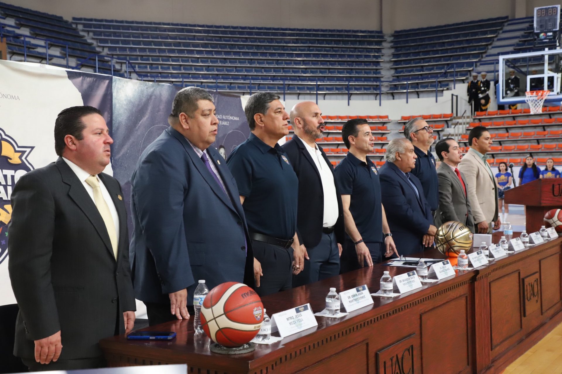 Al evento se dieron cita Daniel Alberto Constandse Cortez, rector de la UACJ; el doctor Salvador David Nava Martínez, secretario general; el maestro Hugo Ricardo Durán González, presidente de la Comisión Nacional Deportiva Estudiantil de Instituciones Privadas (CONADEIP); el licenciado Emilio Álvarez Frangié, director general de la Liga ABE; el doctor Fausto Enrique Aguirre Escárcega, director del Instituto de Arquitectura, Diseño y Arte (IADA); el maestro Gabriel Medrano Donlucas, jefe del Departamento de Ciencias de la Salud, en representación de la maestra Tania Dolores Hernández García, directora del Instituto de Ciencias Biomédicas (ICB); el doctor Alberto Urrutia de la Garza, jefe del Departamento de Ciencias Administrativas, e representación del doctor Jesús Meza Vega, director del Instituto de Ciencias Sociales y Administración (ICSA); el doctor Erwin Adán Martínez Gómez, Director del Instituto de Ingeniería y Tecnología (IIT) y el doctor René Ramos Tamez, director del Deporte.
