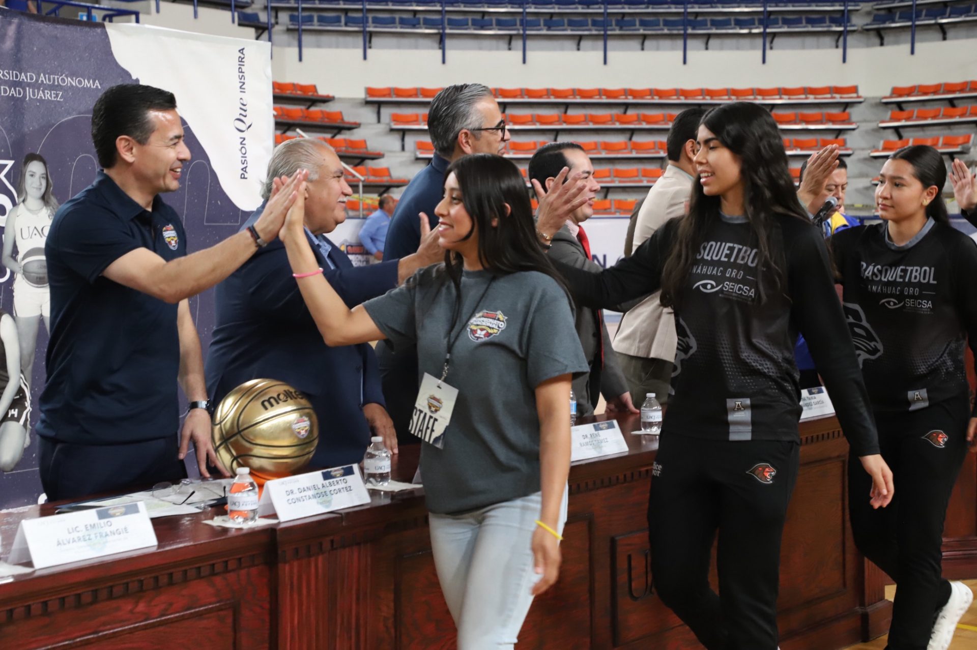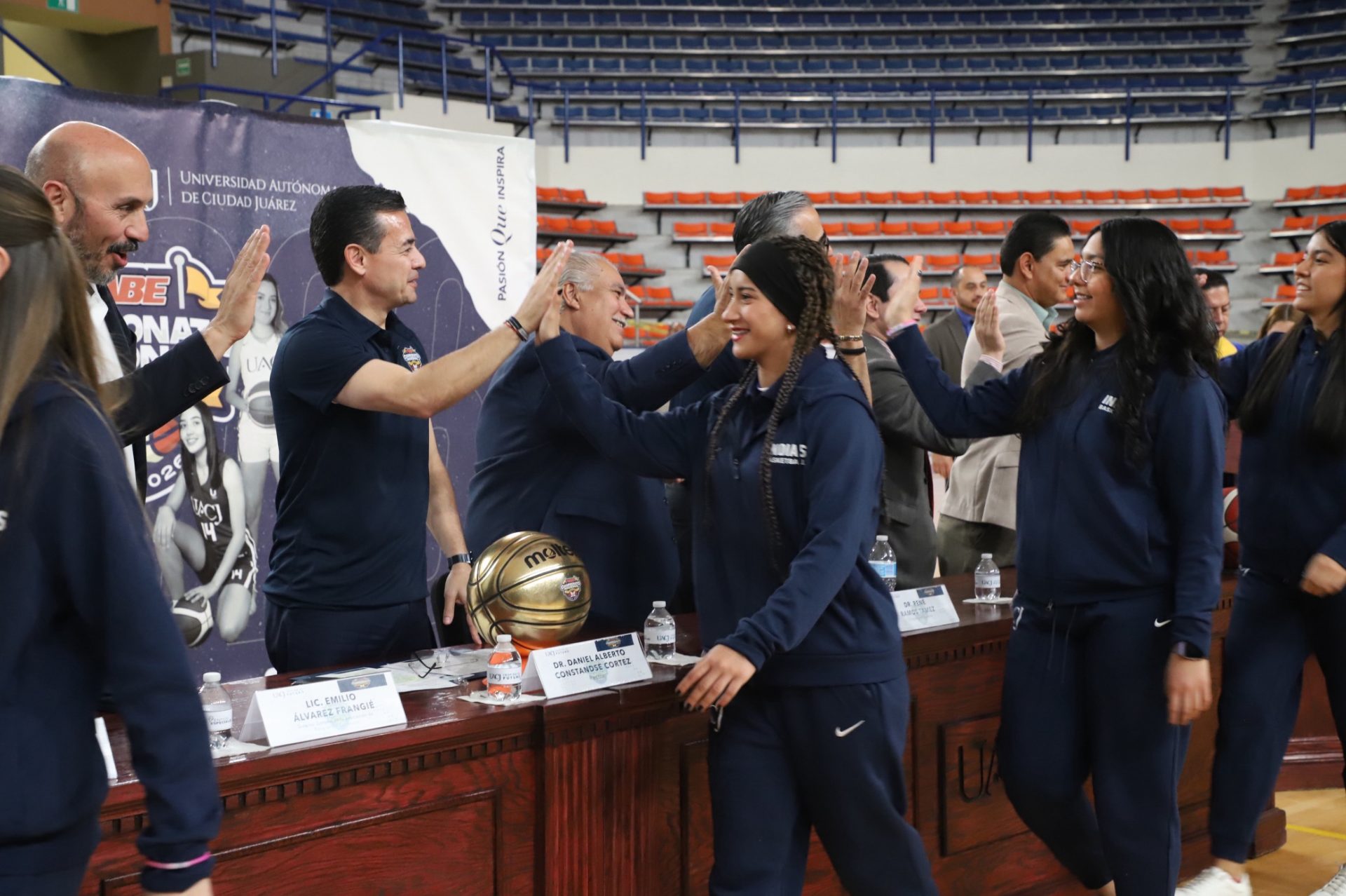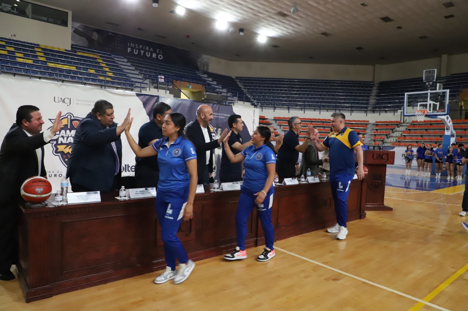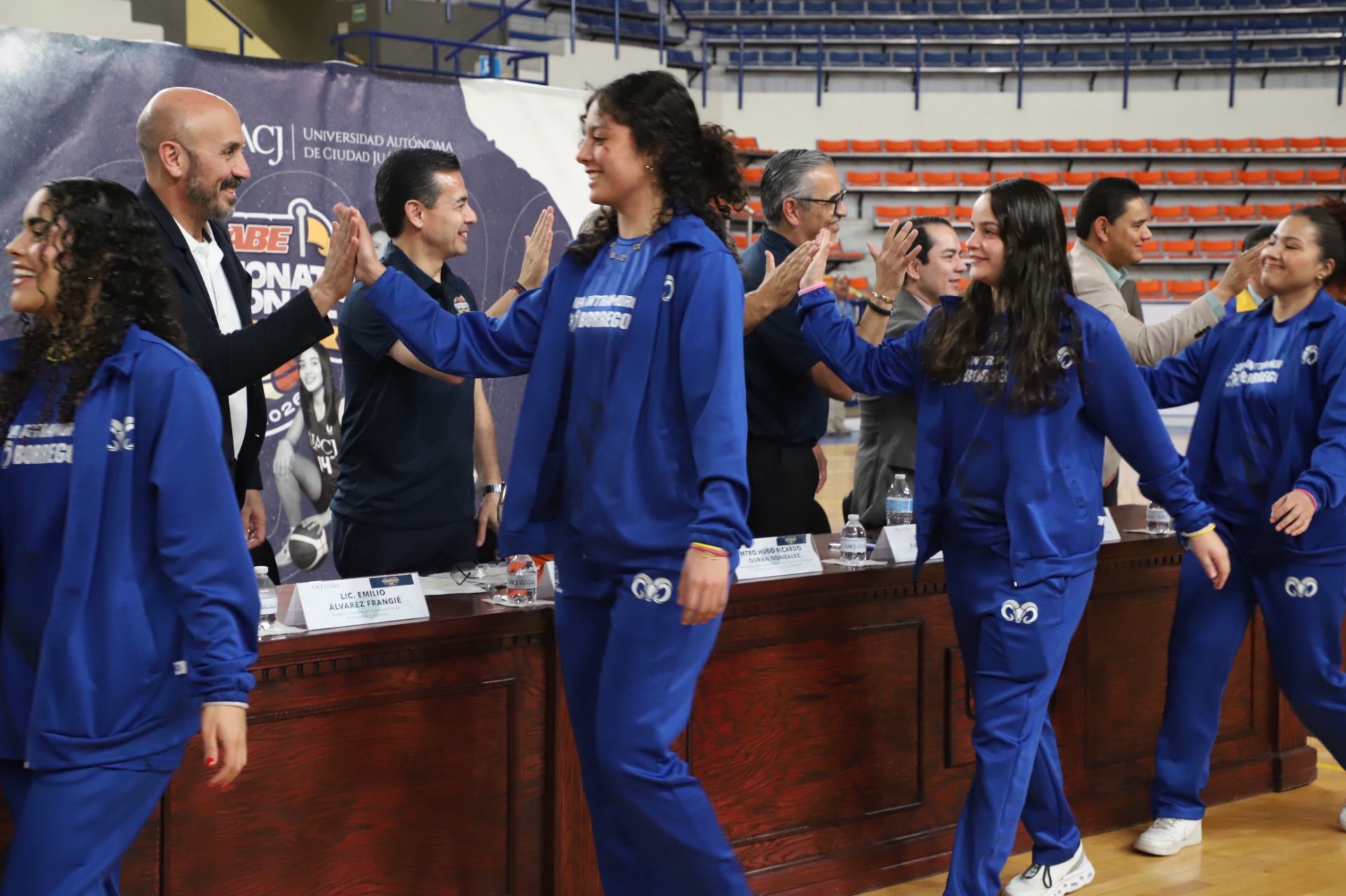 Al evento se dieron cita Daniel Alberto Constandse Cortez, rector de la UACJ; el doctor Salvador David Nava Martínez, secretario general; el maestro Hugo Ricardo Durán González, presidente de la Comisión Nacional Deportiva Estudiantil de Instituciones Privadas (CONADEIP); el licenciado Emilio Álvarez Frangié, director general de la Liga ABE; el doctor Fausto Enrique Aguirre Escárcega, director del Instituto de Arquitectura, Diseño y Arte (IADA); el maestro Gabriel Medrano Donlucas, jefe del Departamento de Ciencias de la Salud, en representación de la maestra Tania Dolores Hernández García, directora del Instituto de Ciencias Biomédicas (ICB); el doctor Alberto Urrutia de la Garza, jefe del Departamento de Ciencias Administrativas, e representación del doctor Jesús Meza Vega, director del Instituto de Ciencias Sociales y Administración (ICSA); el doctor Erwin Adán Martínez Gómez, Director del Instituto de Ingeniería y Tecnología (IIT) y el doctor René Ramos Tamez, director del Deporte.