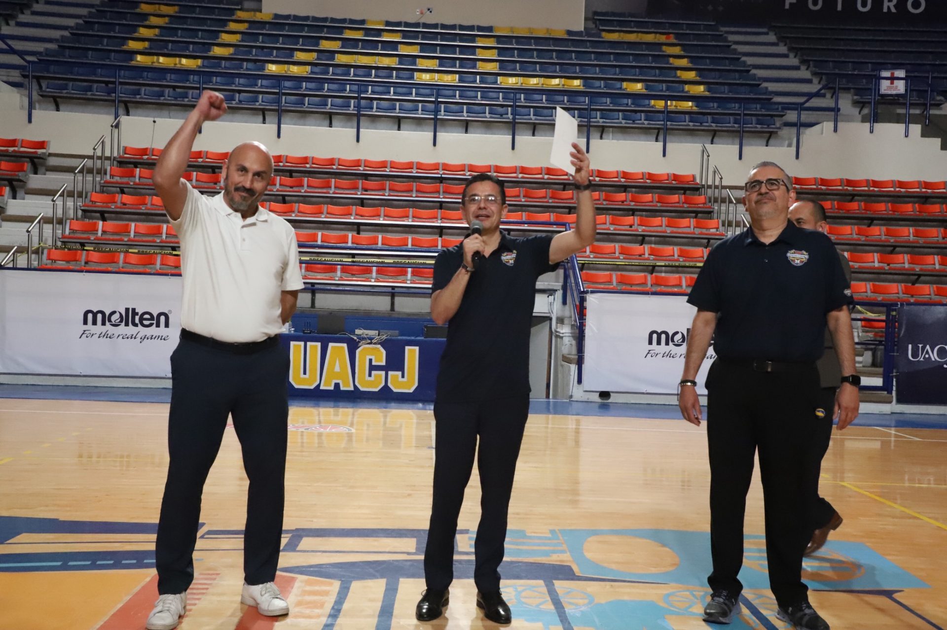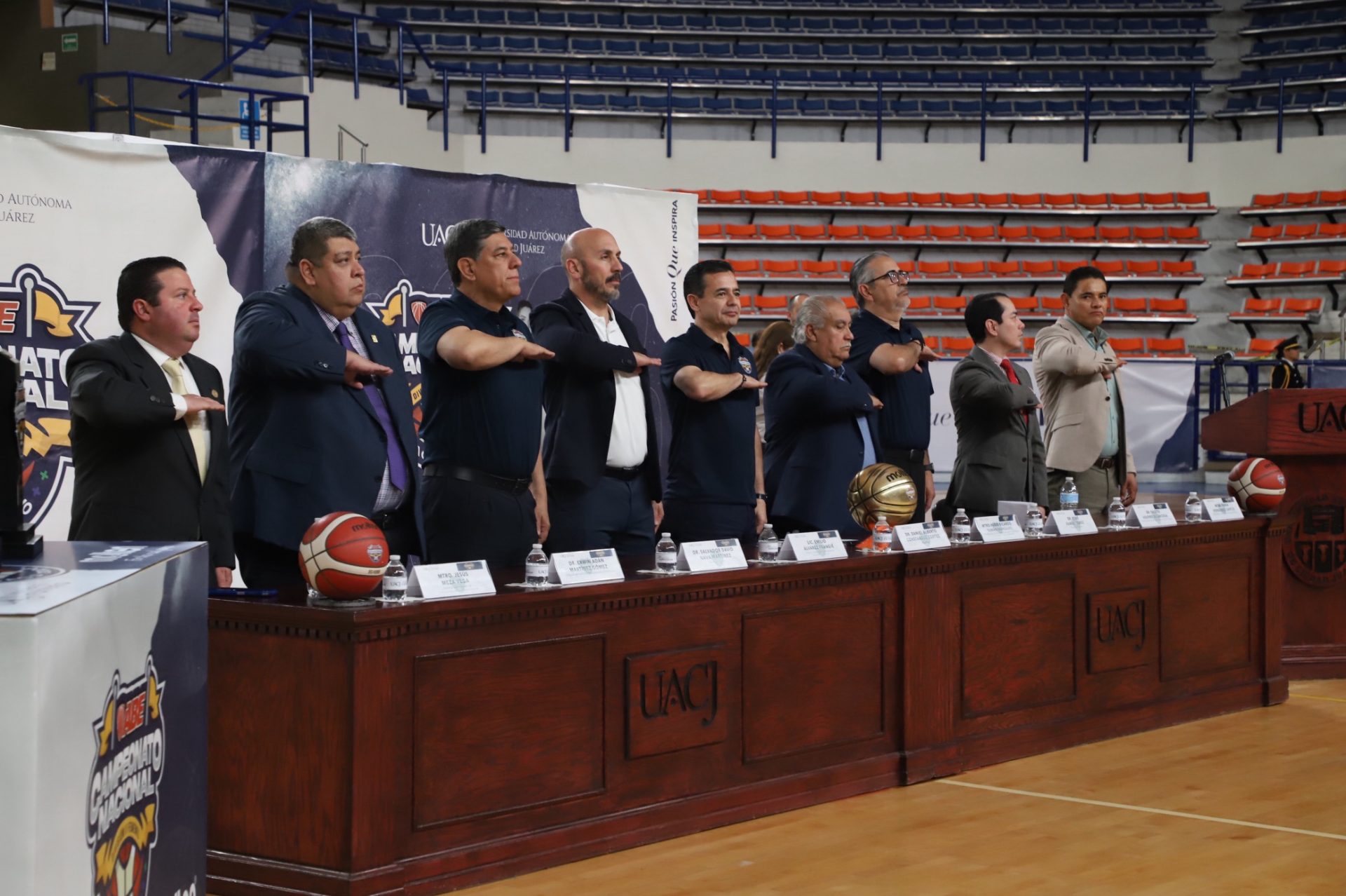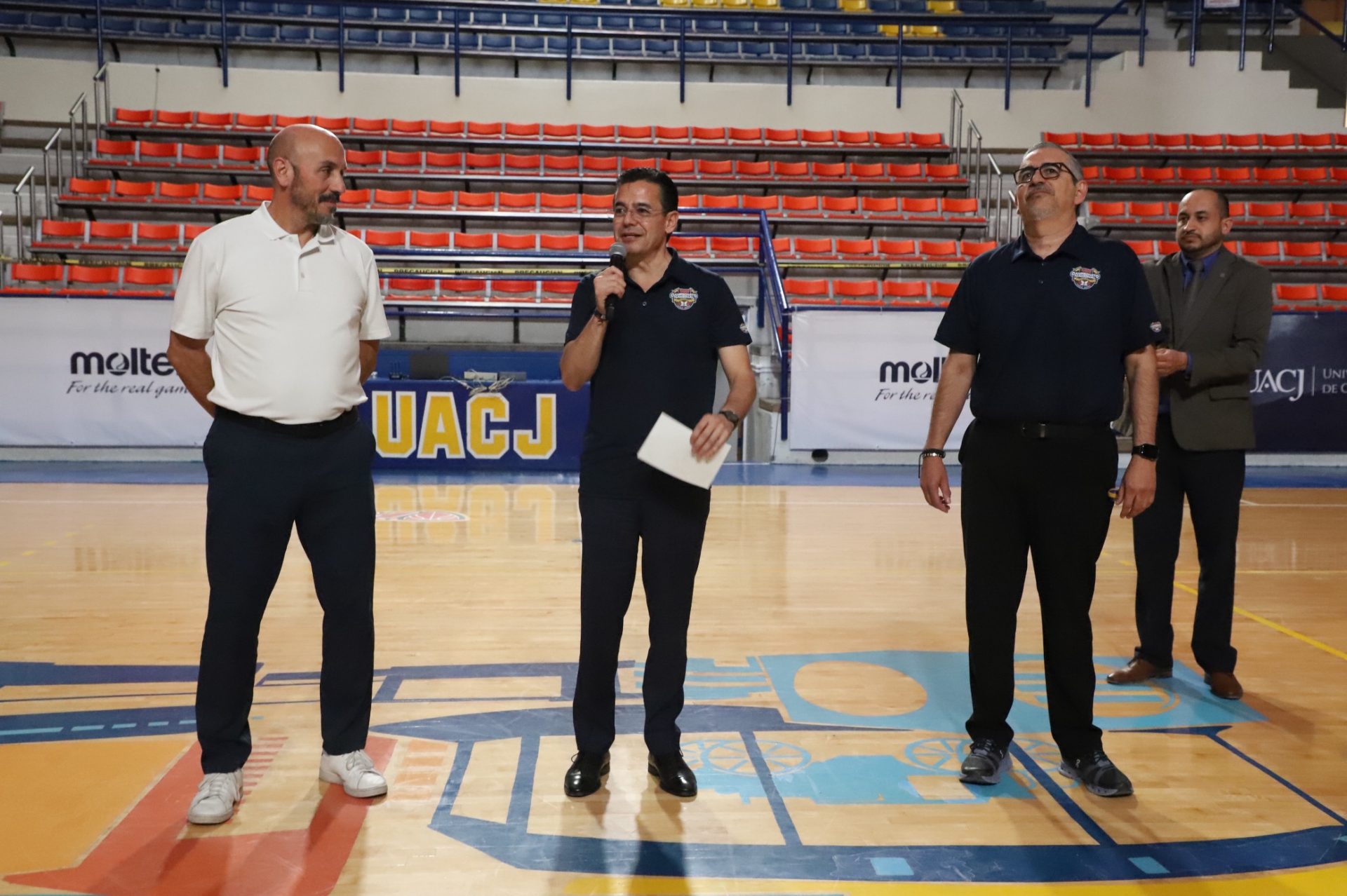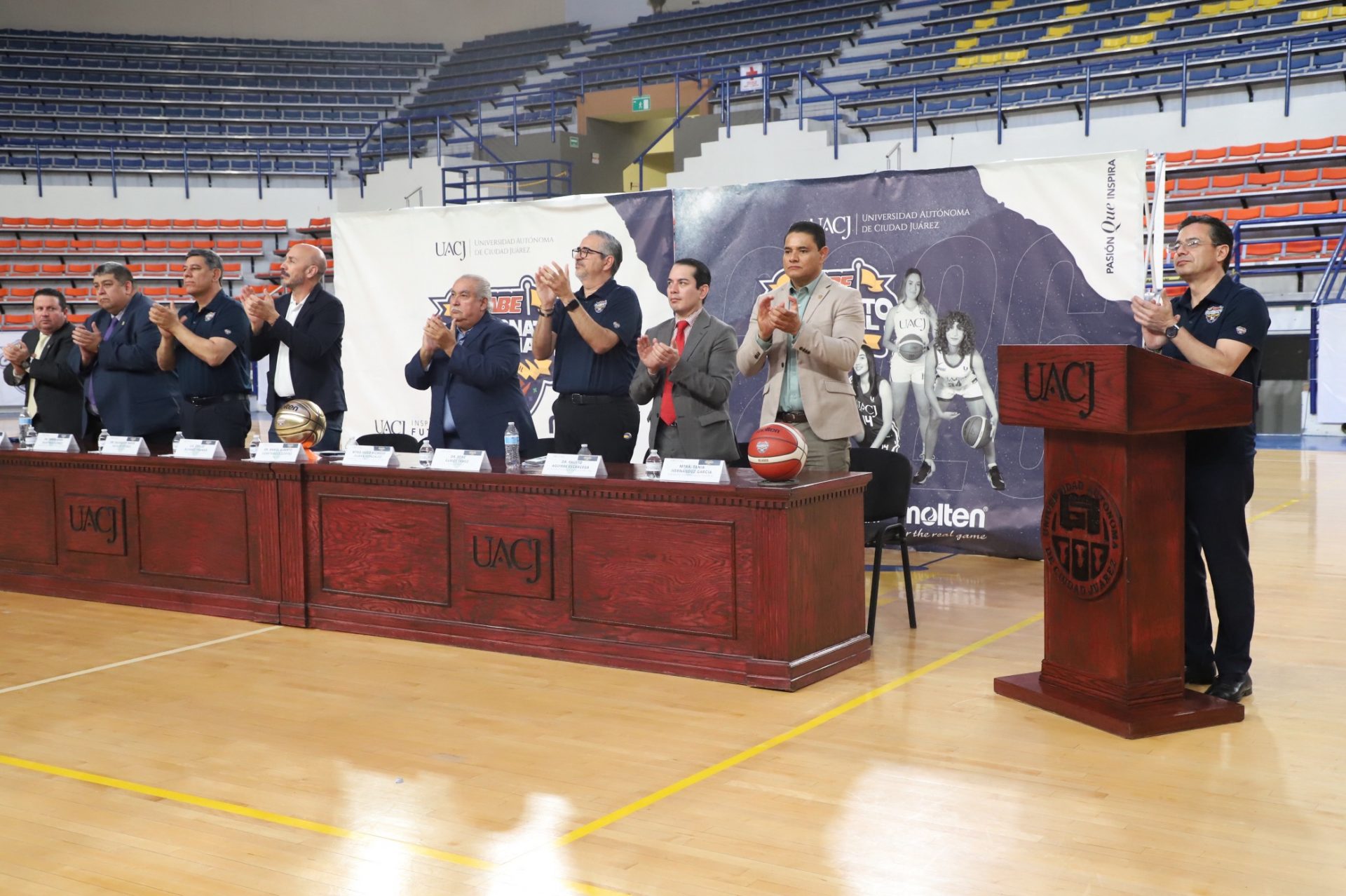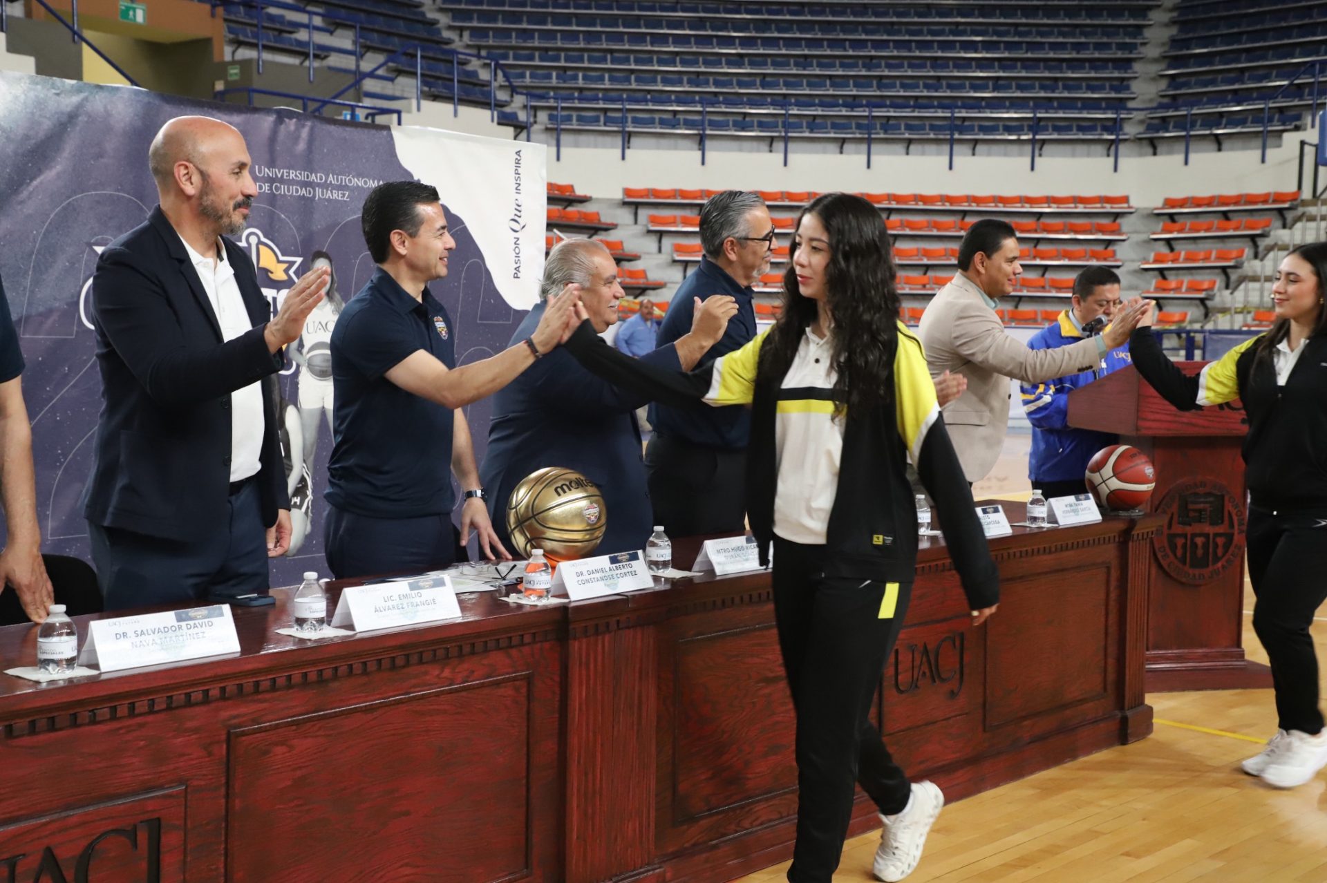 Al evento se dieron cita Daniel Alberto Constandse Cortez, rector de la UACJ; el doctor Salvador David Nava Martínez, secretario general; el maestro Hugo Ricardo Durán González, presidente de la Comisión Nacional Deportiva Estudiantil de Instituciones Privadas (CONADEIP); el licenciado Emilio Álvarez Frangié, director general de la Liga ABE; el doctor Fausto Enrique Aguirre Escárcega, director del Instituto de Arquitectura, Diseño y Arte (IADA); el maestro Gabriel Medrano Donlucas, jefe del Departamento de Ciencias de la Salud, en representación de la maestra Tania Dolores Hernández García, directora del Instituto de Ciencias Biomédicas (ICB); el doctor Alberto Urrutia de la Garza, jefe del Departamento de Ciencias Administrativas, e representación del doctor Jesús Meza Vega, director del Instituto de Ciencias Sociales y Administración (ICSA); el doctor Erwin Adán Martínez Gómez, Director del Instituto de Ingeniería y Tecnología (IIT) y el doctor René Ramos Tamez, director del Deporte.