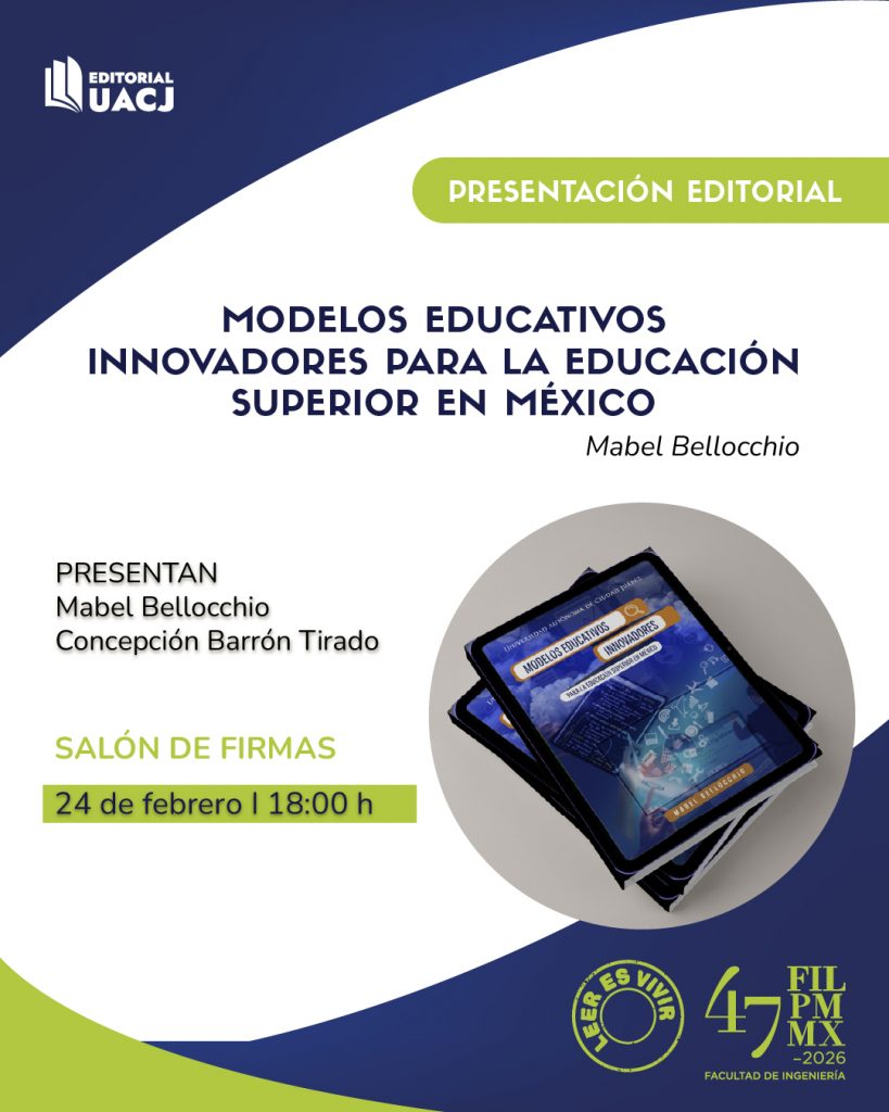 El 24 de febrero, a las 18:00 horas, en el Salón de Firmas, se realizará la presentación de Modelos educativos innovadores para la educación superior de México, de Mabel Bellocchio. La obra reúne ejemplos de modelos educativos vigentes en diversas instituciones de educación superior nacionales y extranjeras. A través de un análisis comparativo de casos ejemplares, el texto contribuye a sentar bases teóricas para la elaboración de modelos educativos innovadores en las IES mexicanas. En la presentación acompañará a la autora Concepción Barrón Tirado, académica especializada en el tema educativo.