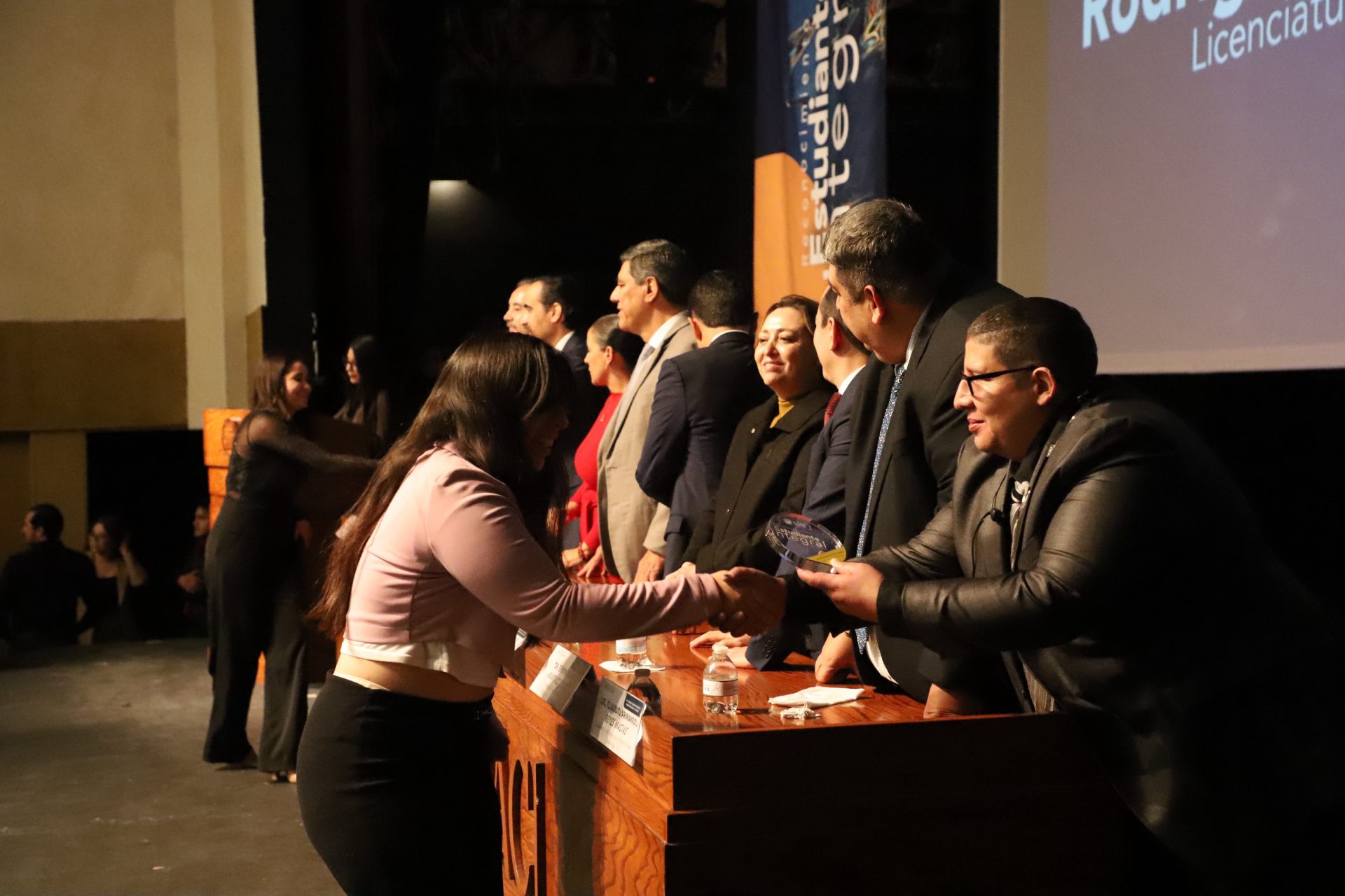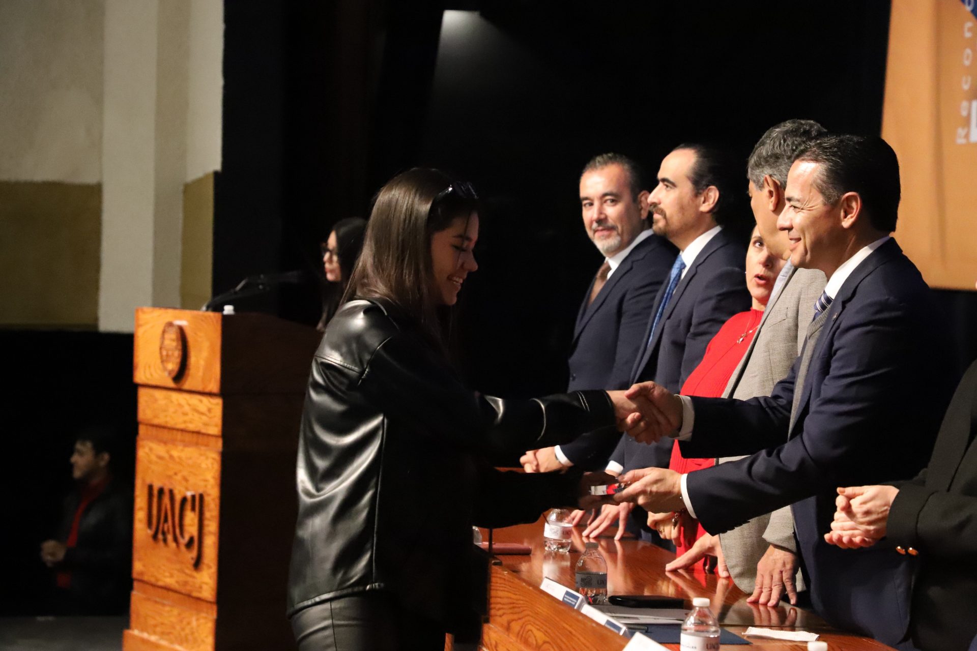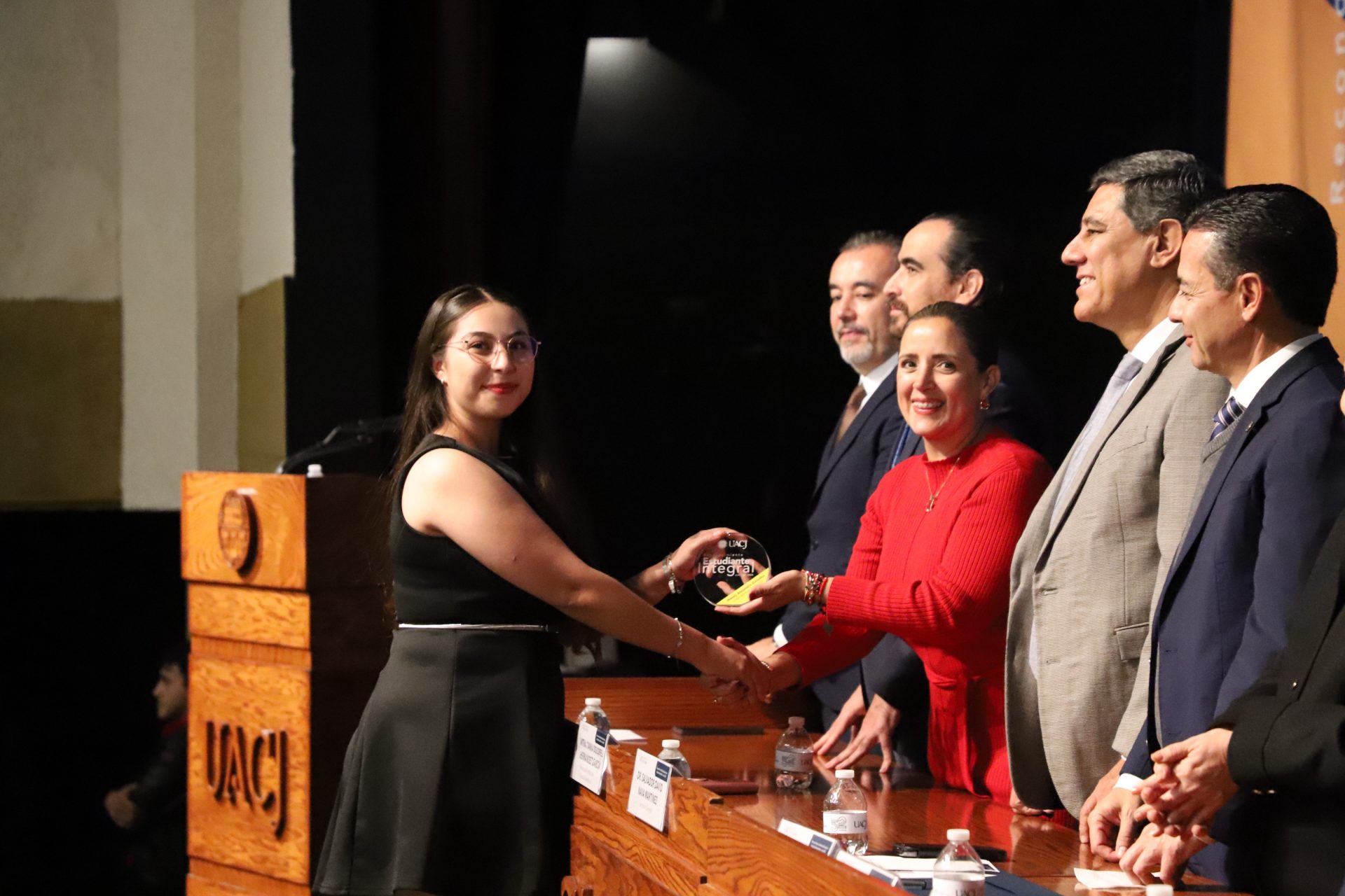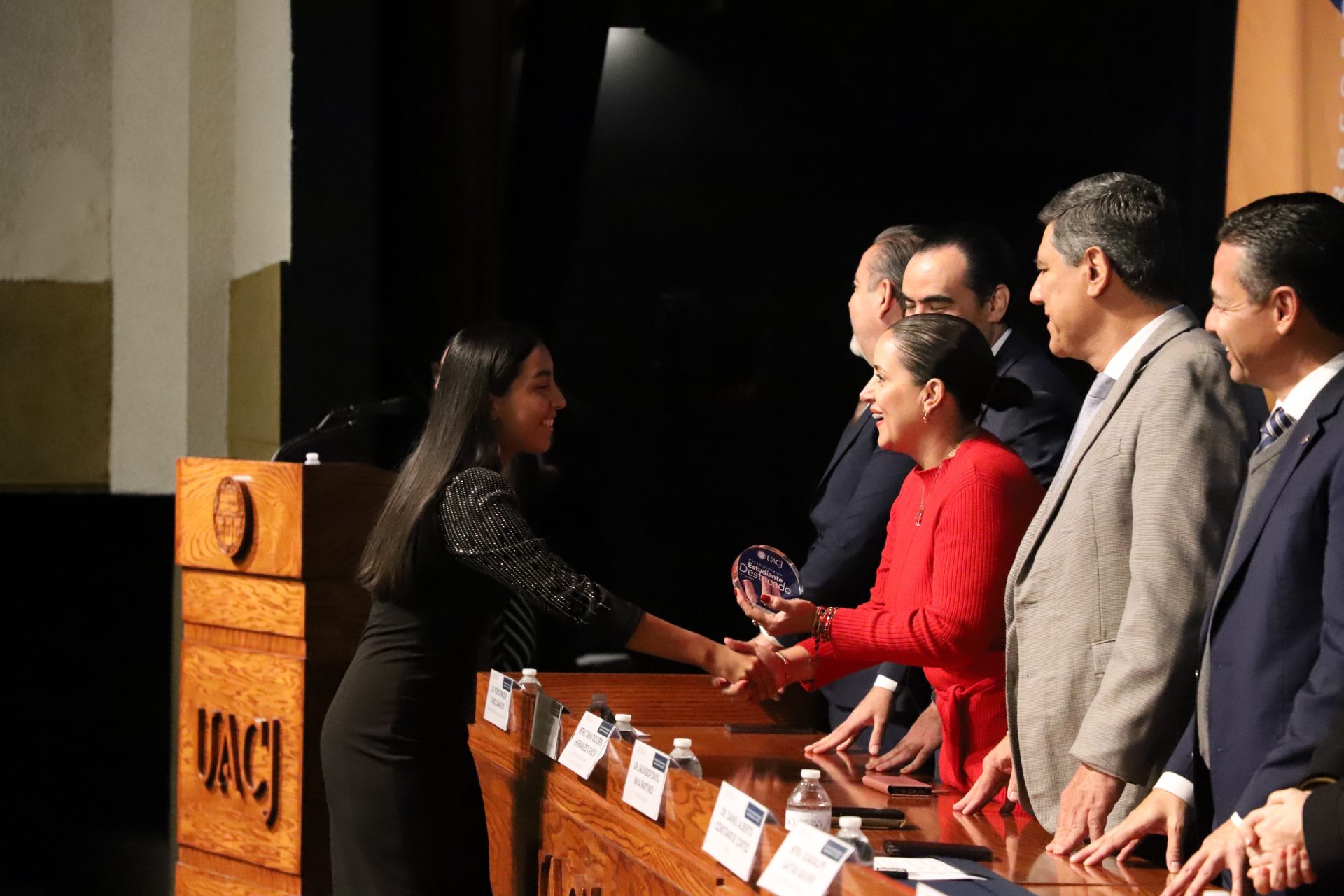 Pero la noche guardaba una sorpresa más. En un gesto que refleja la dualidad que la UACJ premia, tres estudiantes recibieron un doble reconocimiento: fueron ovacionados tanto por su desempeño académico sobresaliente como por su vibrante participación extracurricular.