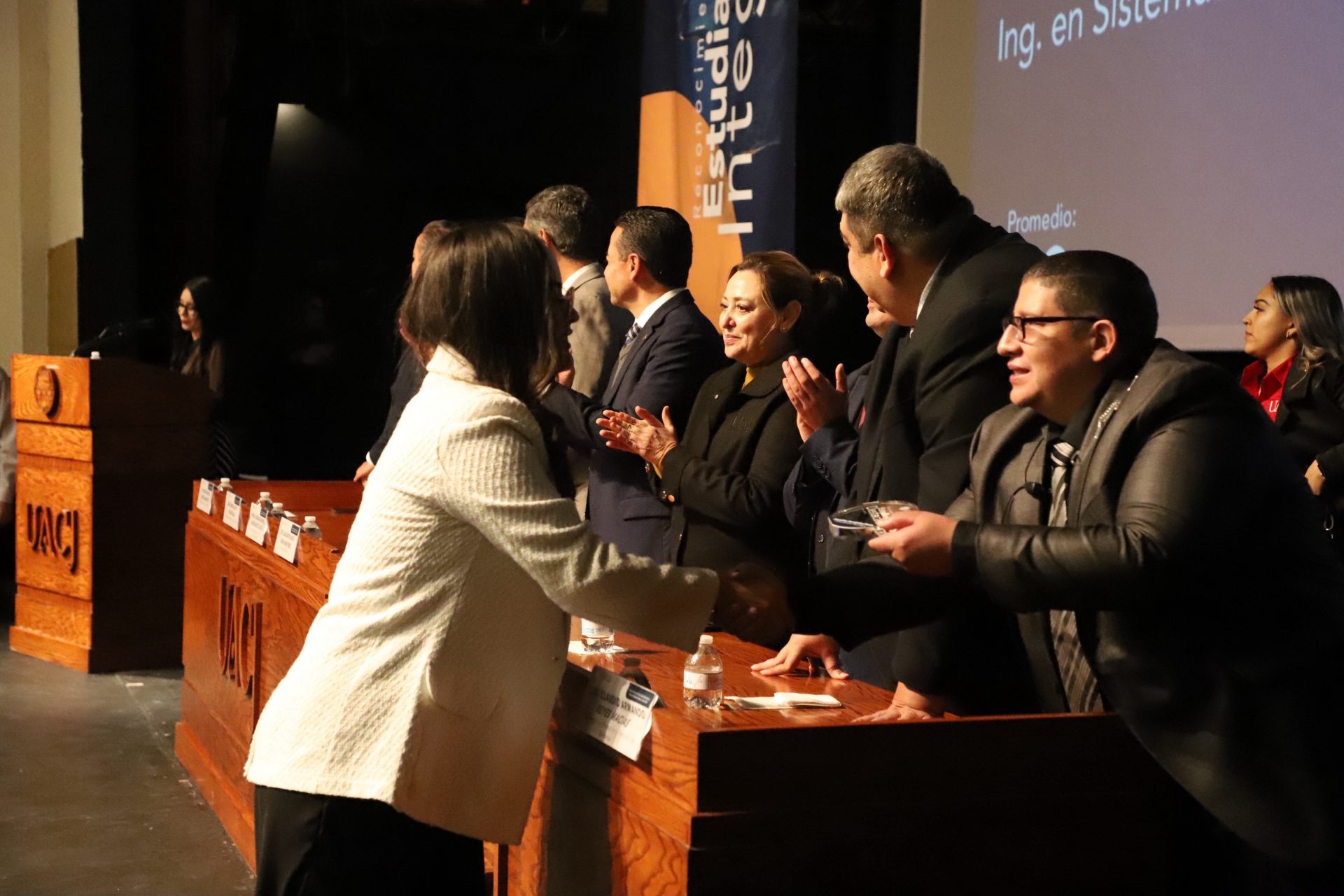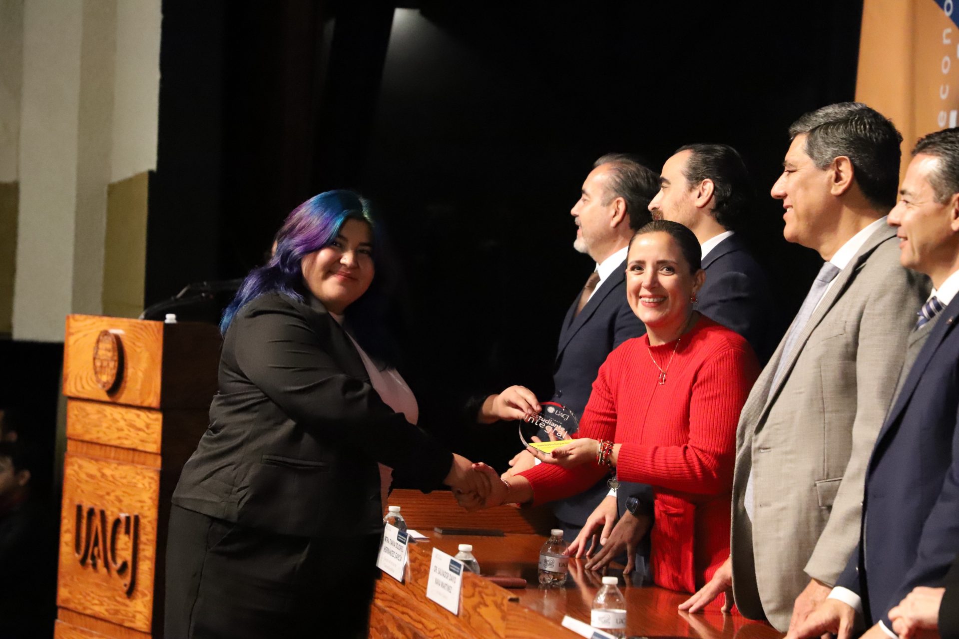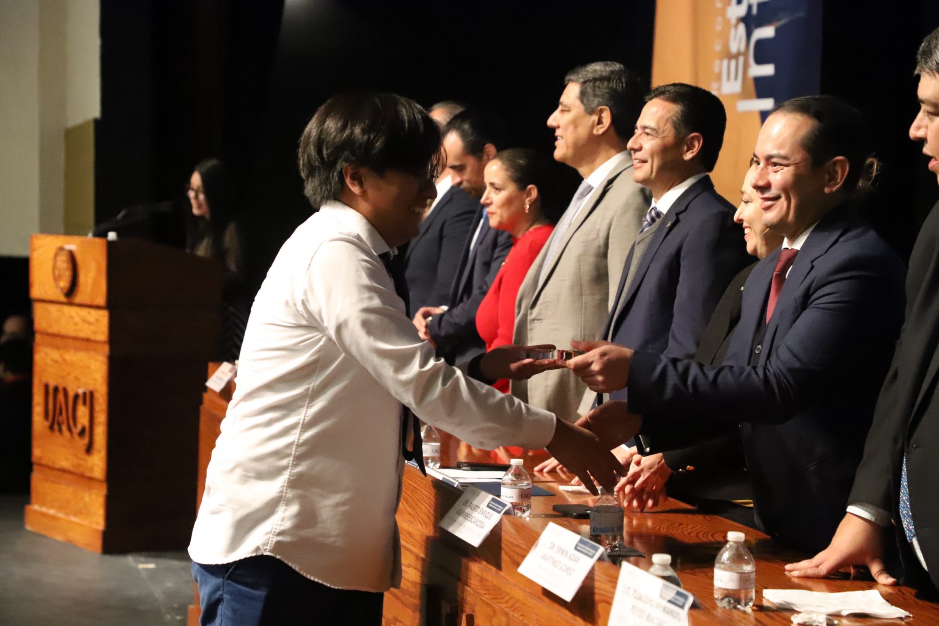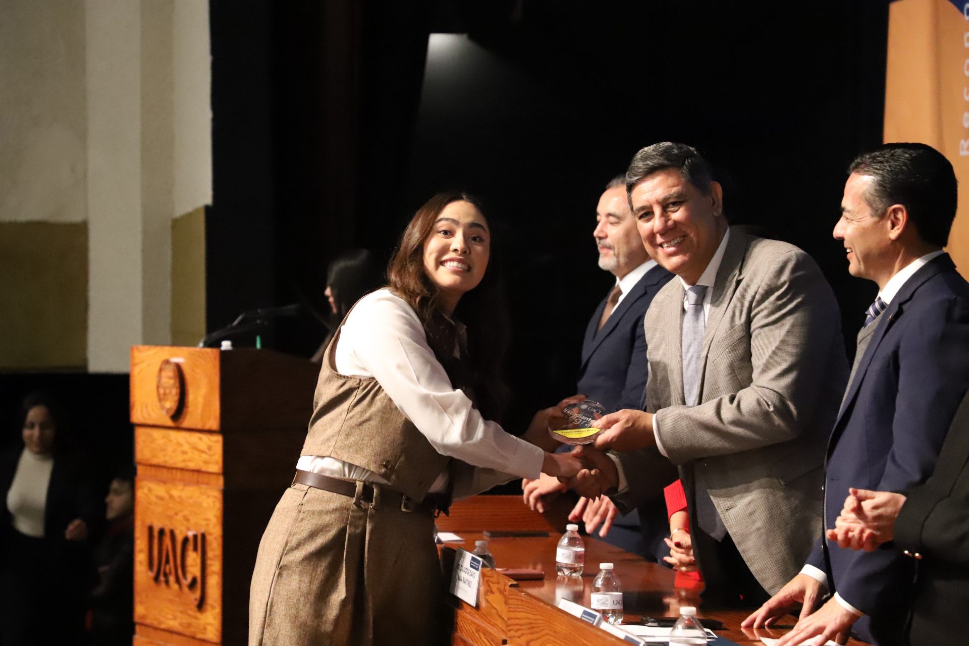 Pero la noche guardaba una sorpresa más. En un gesto que refleja la dualidad que la UACJ premia, tres estudiantes recibieron un doble reconocimiento: fueron ovacionados tanto por su desempeño académico sobresaliente como por su vibrante participación extracurricular.