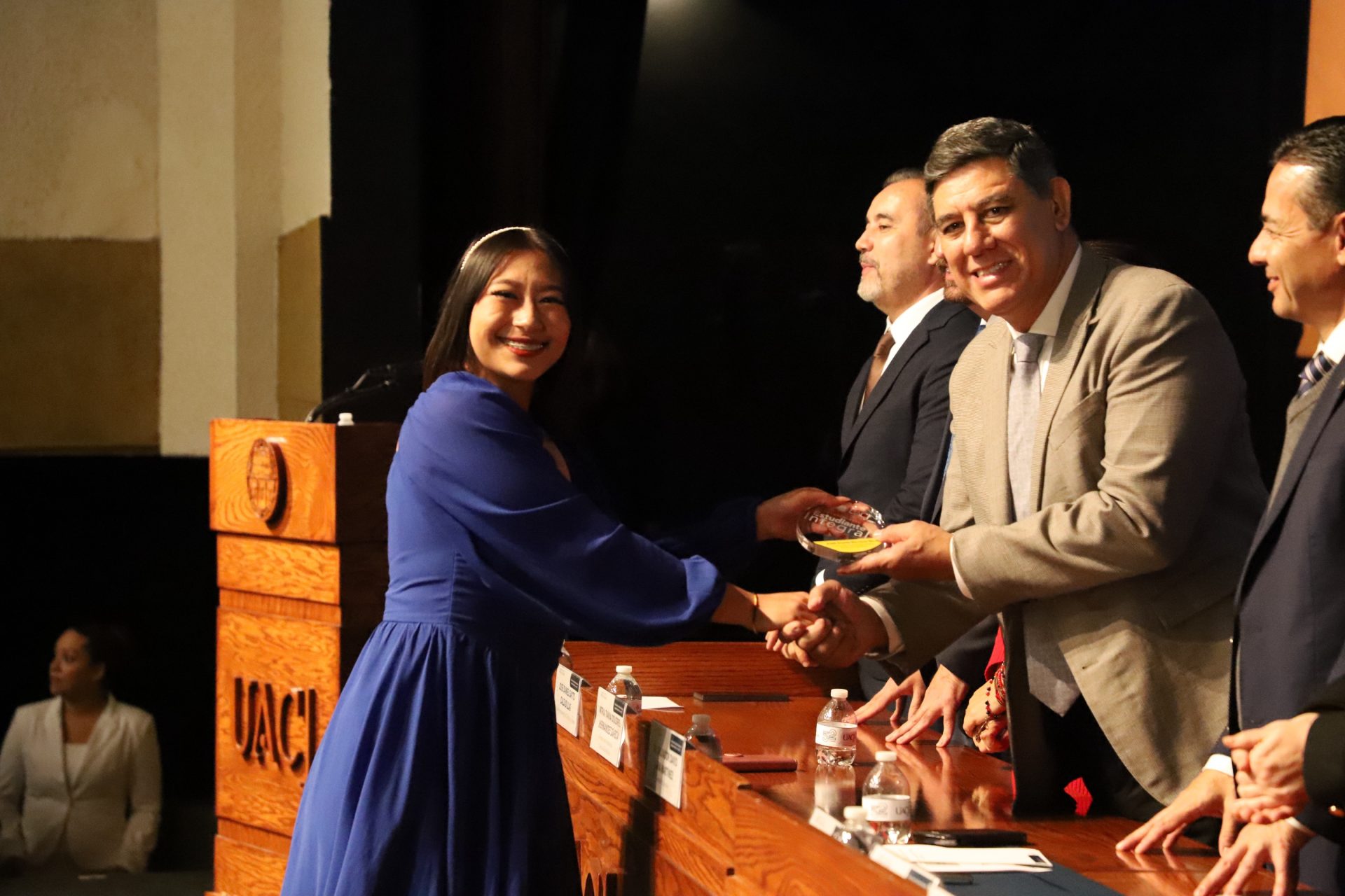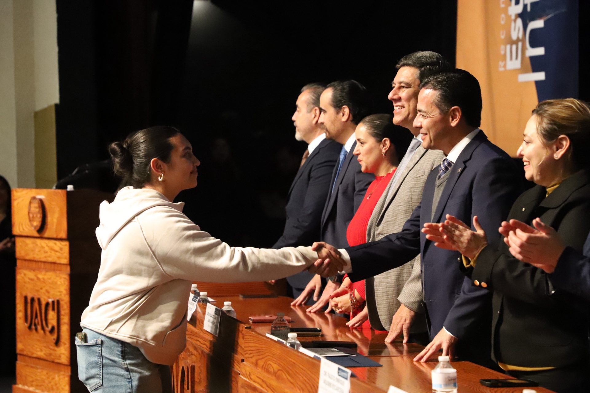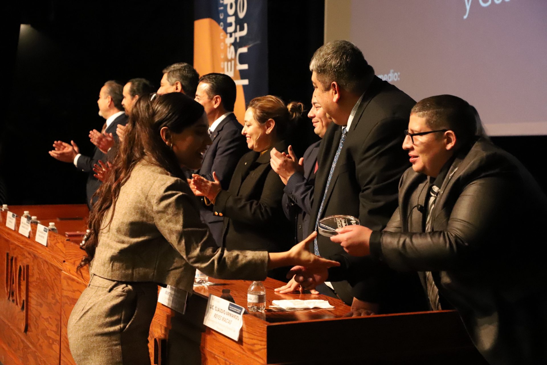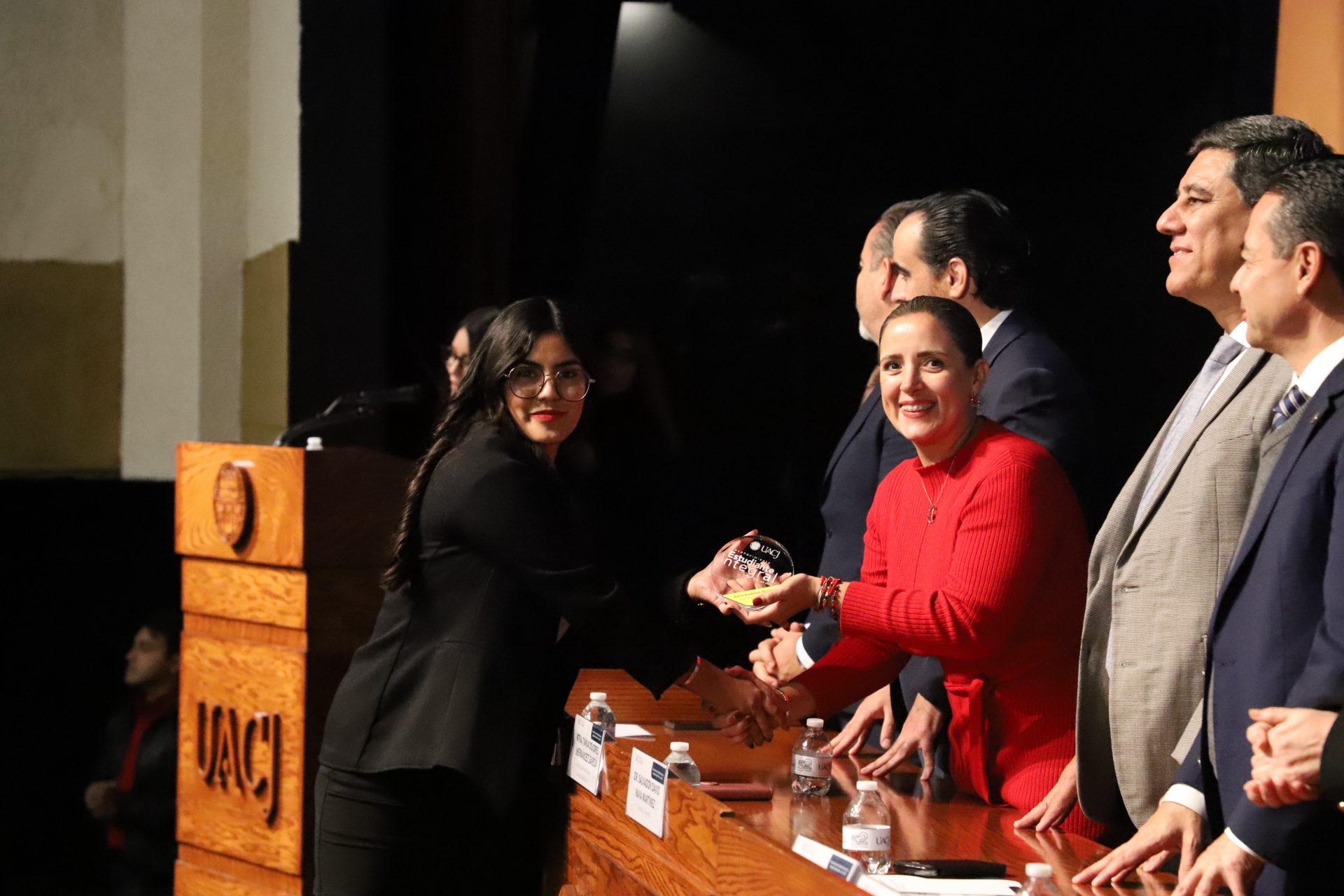 Pero la noche guardaba una sorpresa más. En un gesto que refleja la dualidad que la UACJ premia, tres estudiantes recibieron un doble reconocimiento: fueron ovacionados tanto por su desempeño académico sobresaliente como por su vibrante participación extracurricular.