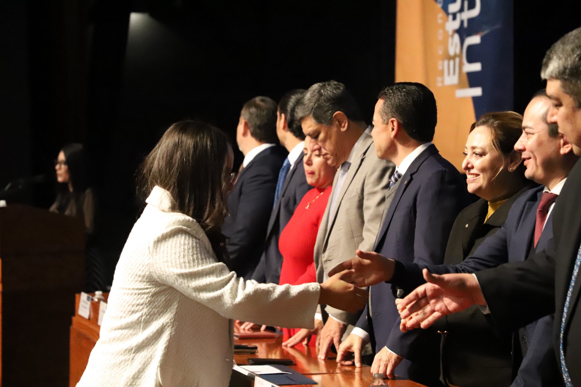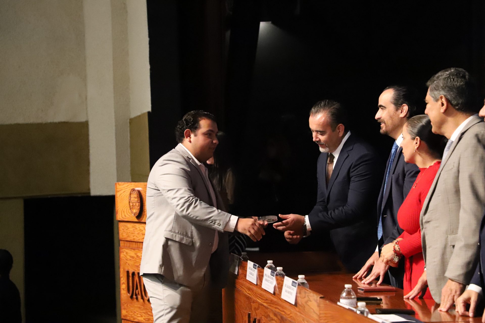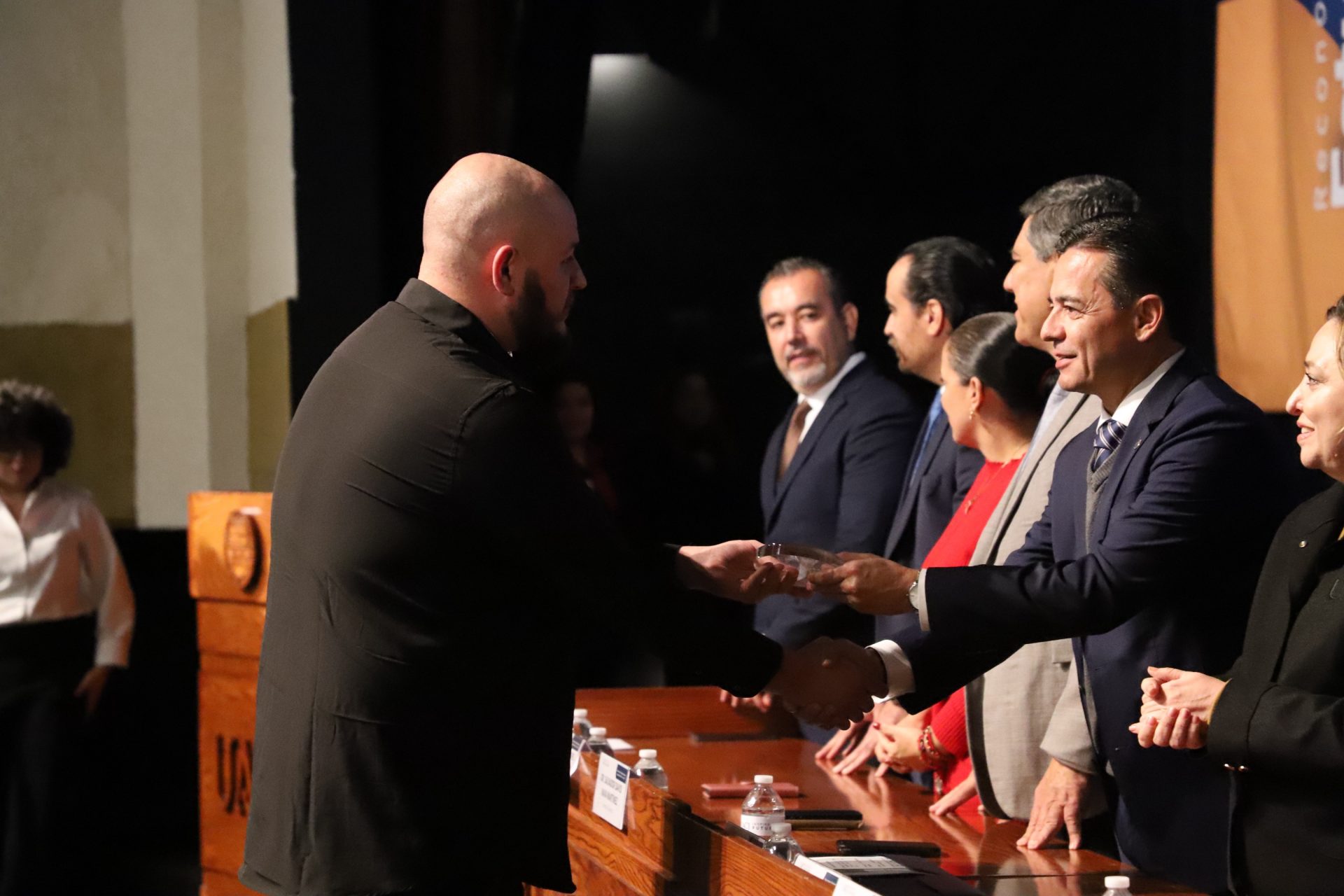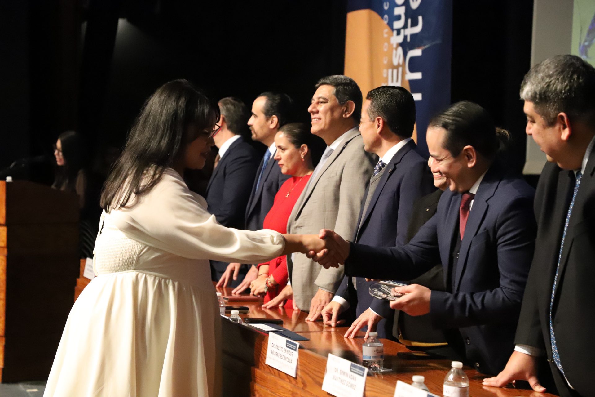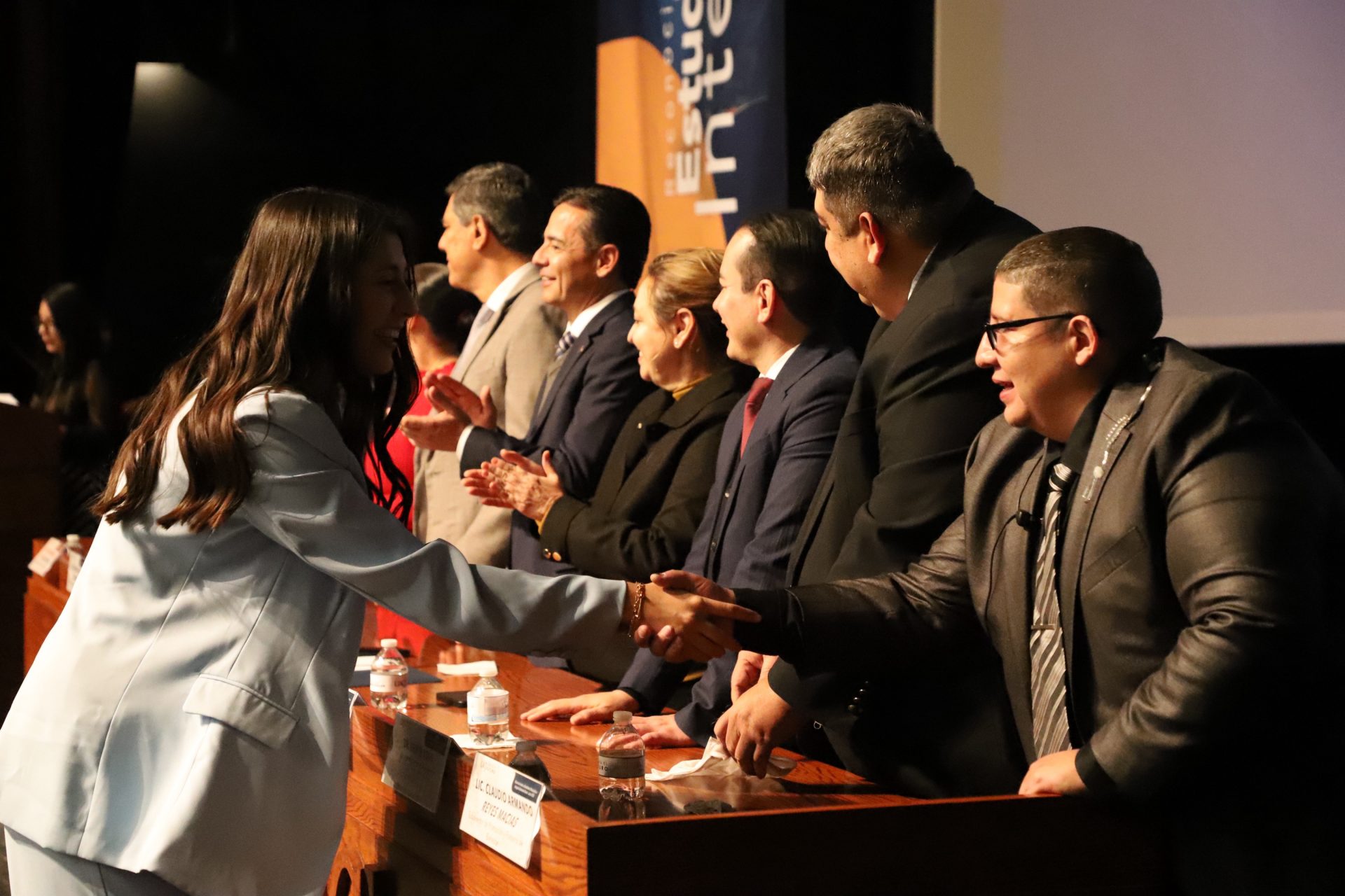 El presídium estuvo integrado por el doctor Daniel Constandse Cortez, rector de la Universidad Autónoma de Ciudad Juárez; la maestra Guadalupe Gaytán Aguirre, secretaria académica; el doctor Salvador Nava Martínez, secretario general; el doctor Pedro Enrique Yánez Camacho, director general de Bienestar Universitario; la doctora Gabriela Ortega Estrada, jefa del Campus Ciudad Universitaria; el doctor Fausto Enrique Aguirre Escárcega, director del Instituto de Arquitectura, Diseño y Arte; la maestra Tania Dolores Hernández García, directora del Instituto de Ciencias Biomédicas; el maestro José Daniel Sayto Calzadillas, jefe del Departamento de Ciencias Jurídicas, en representación del doctor Jesús Meza Vega, director del Instituto de Ciencias Sociales y Administración; el doctor Erwin Adán Martínez Gómez, director del Instituto de Ingeniería y Tecnología y el licenciado Claudio Armando Reyes Macías, subdirector de Promoción y Fomento de Bienestar.